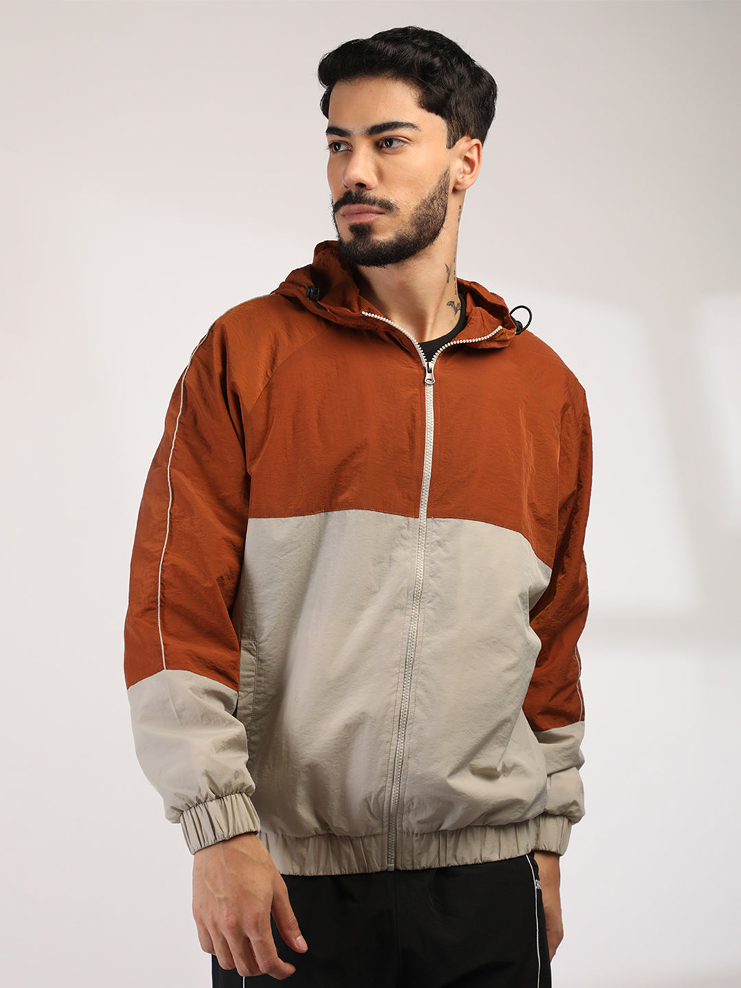 Men Rust Beige Olive Hooded Windcheater Oversized Sports Jacket