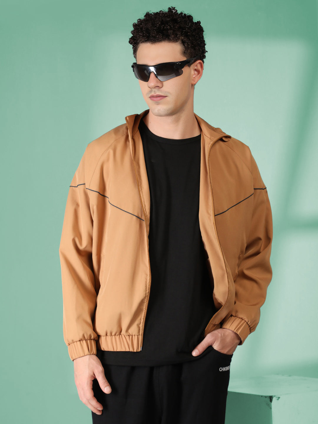 Men Winter Sports Regular Fit Windcheater Jacket Camel