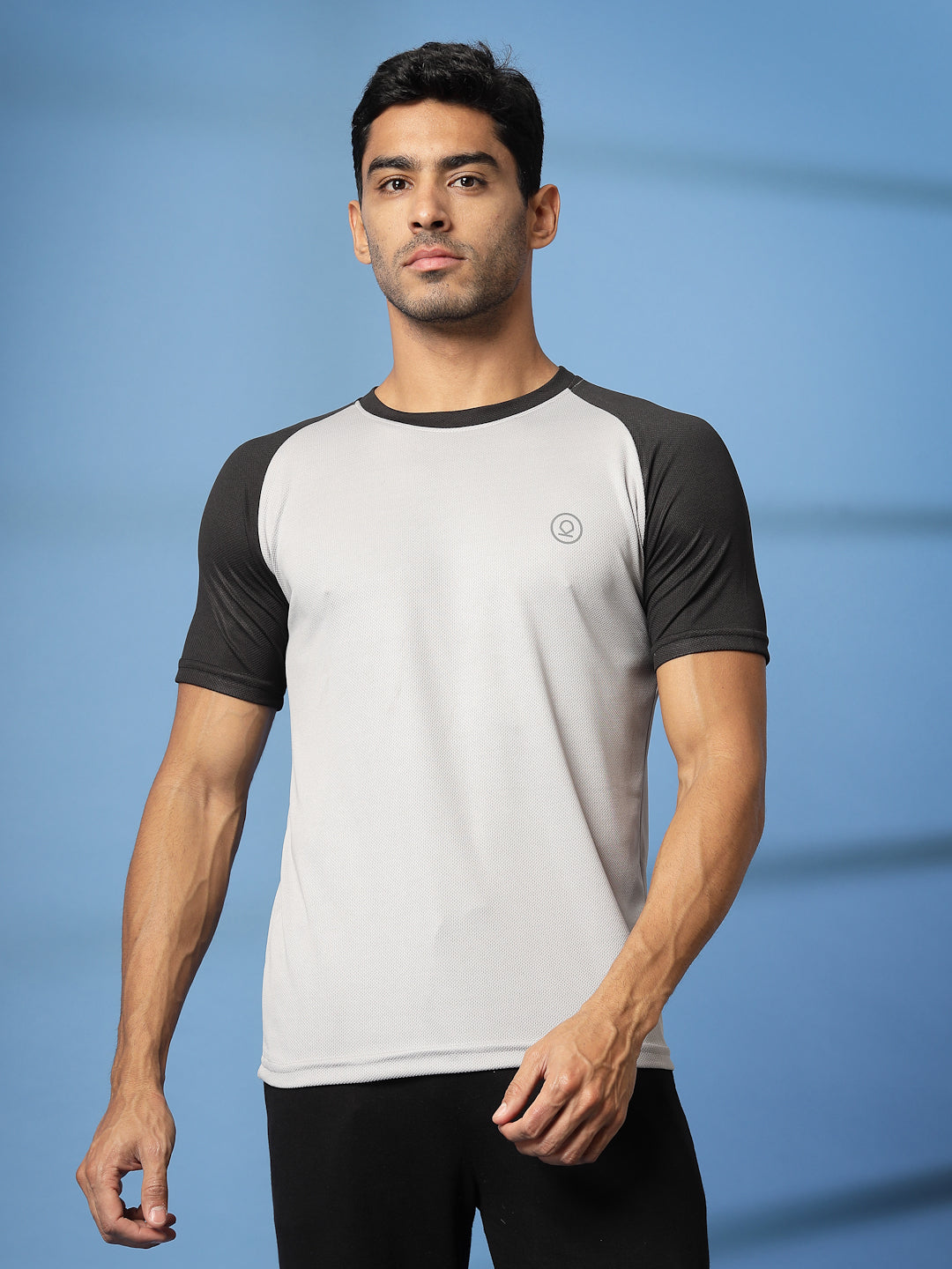 Men's Solid Raglan Dry Fit Gym T-Shirt Sand Black