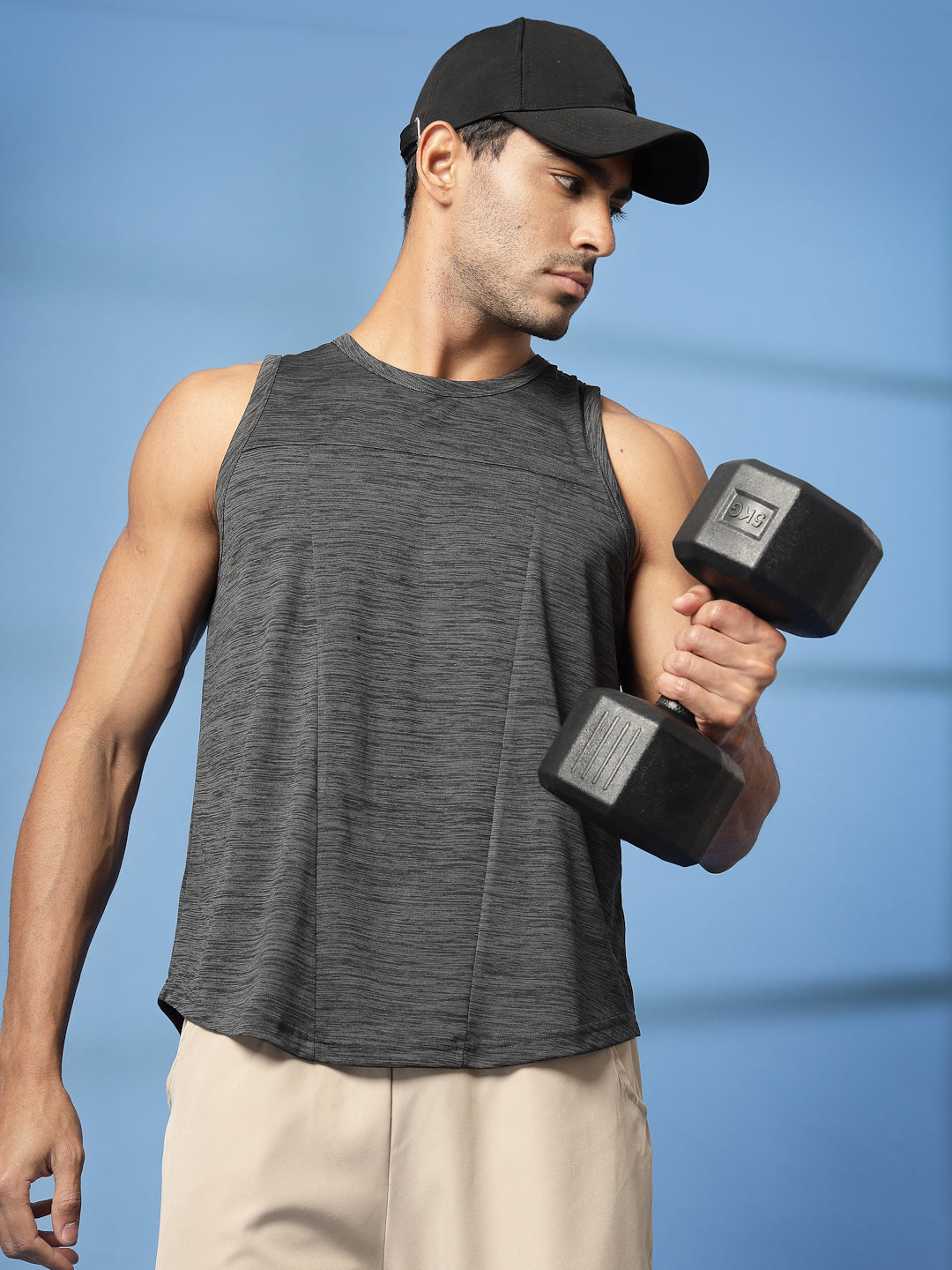 Men Dark Grey Gym Sleeveless Sports Tanktop