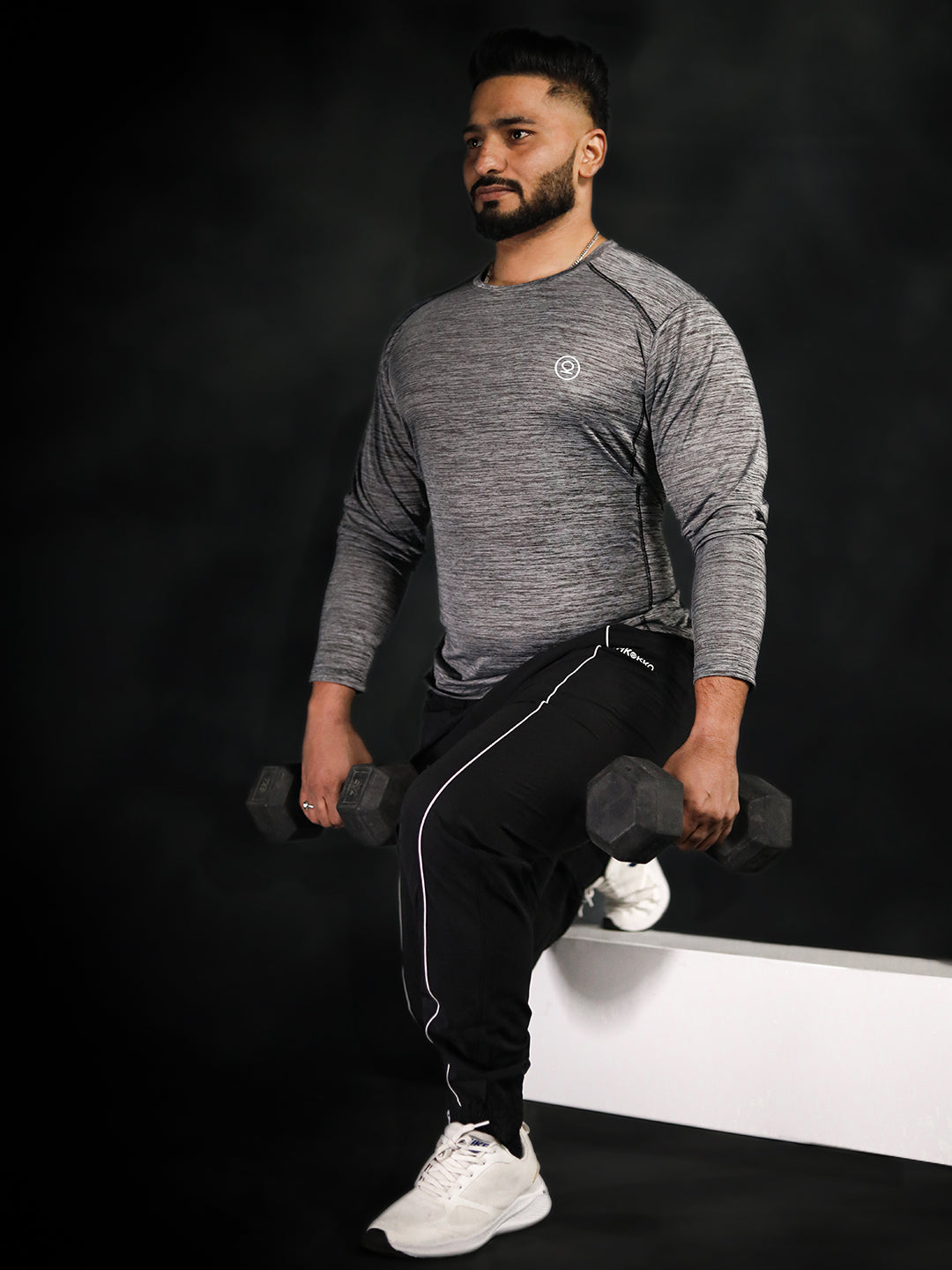 Men's Regular Dry Fit Full Sleeves Gym T-Shirt Grey