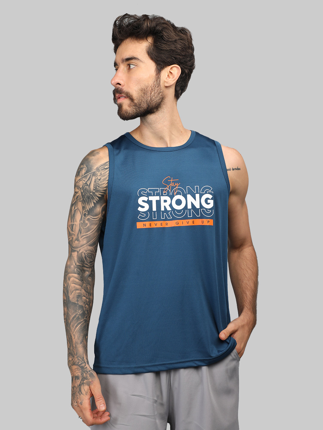 Men Blue Gym Sleeveless Sports Tanktop