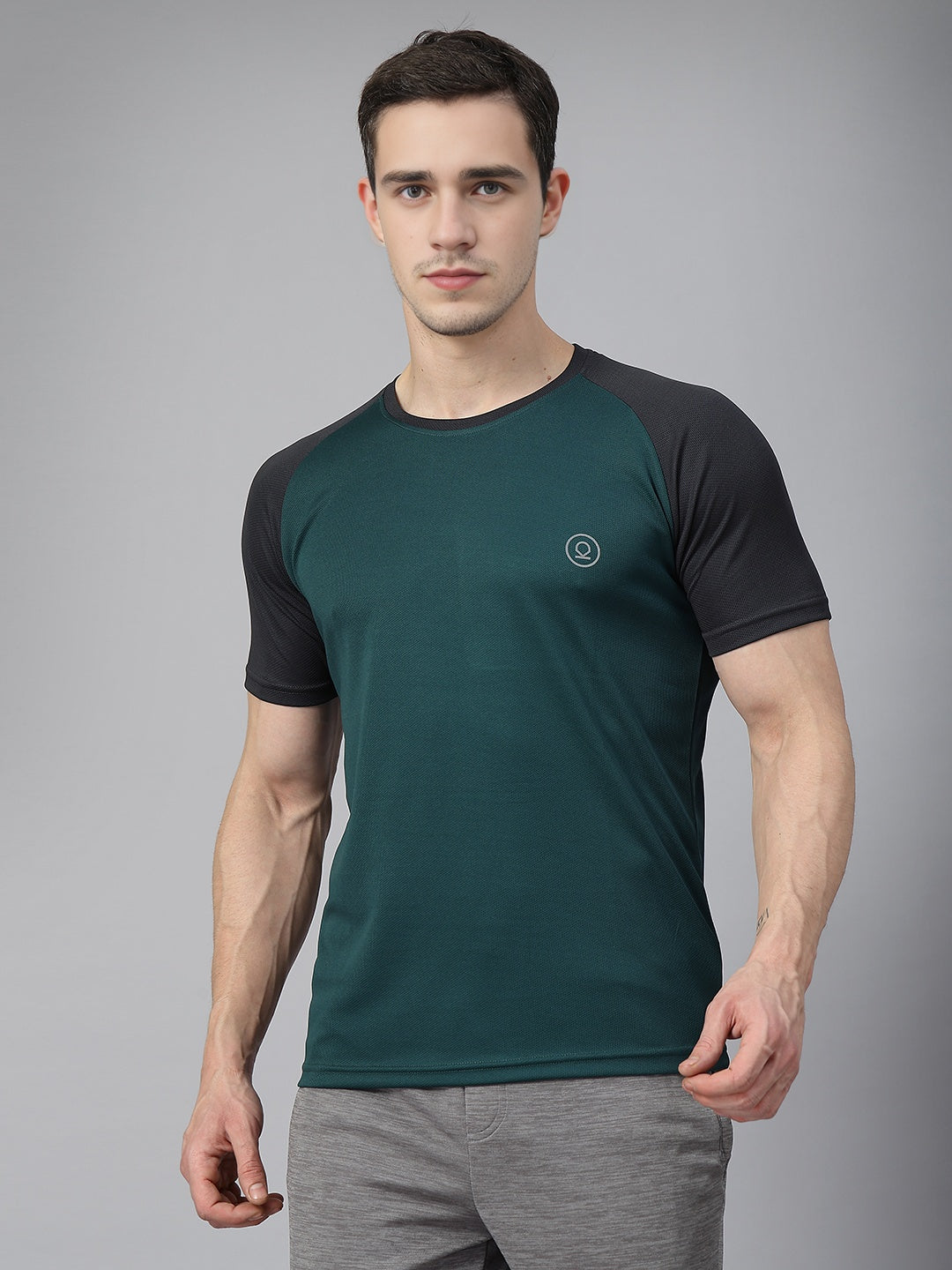 Men's Solid Raglan Dry Fit Gym T-Shirt Dark Green