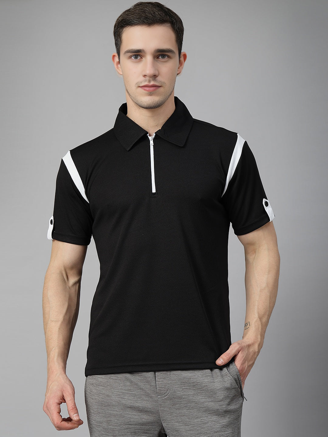 Men's Polo Neck Regular Fit Gym Sports Zipper T-Shirt