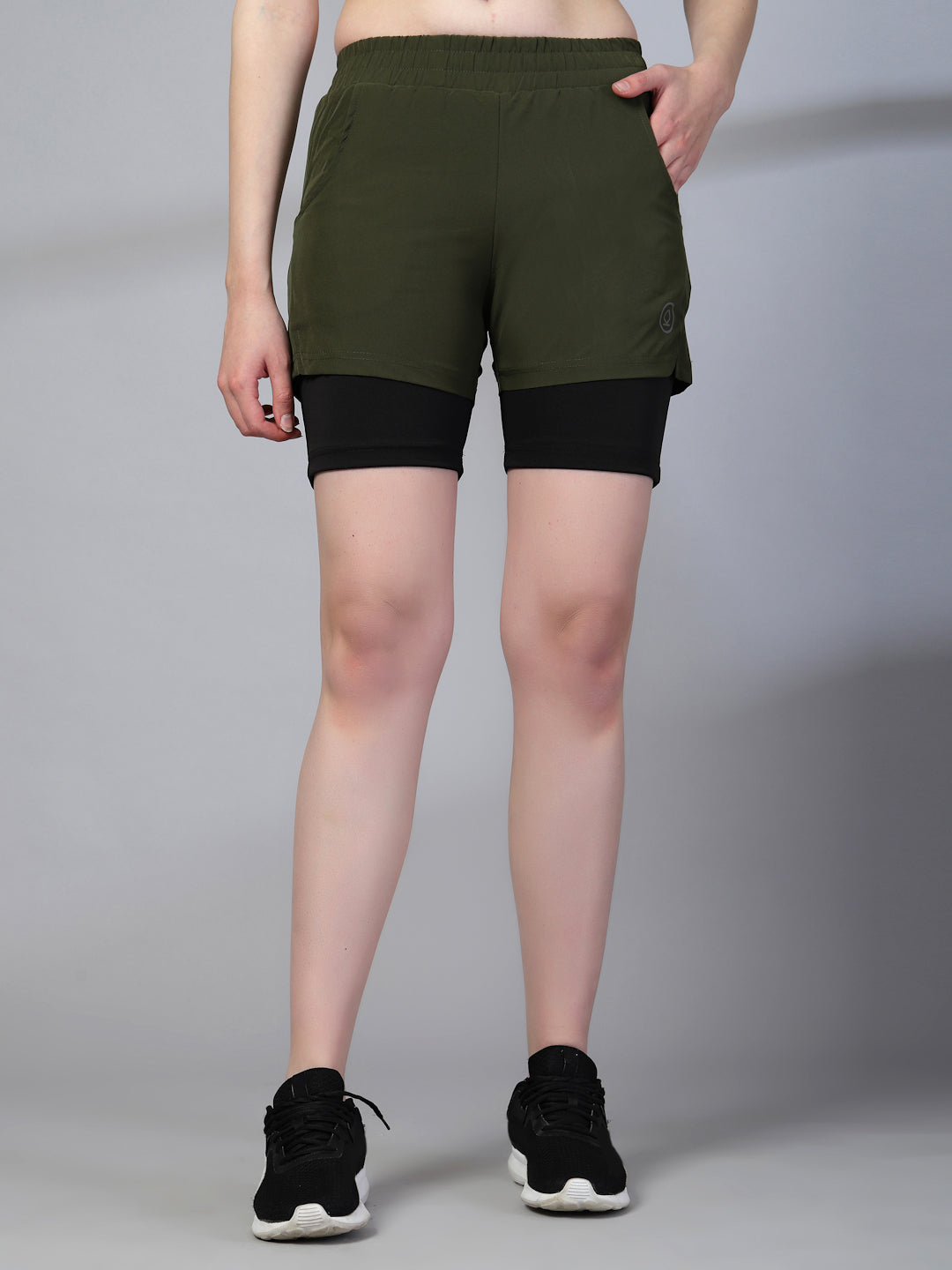 Women's Double Layered Dry Fit Sports Running Shorts Black