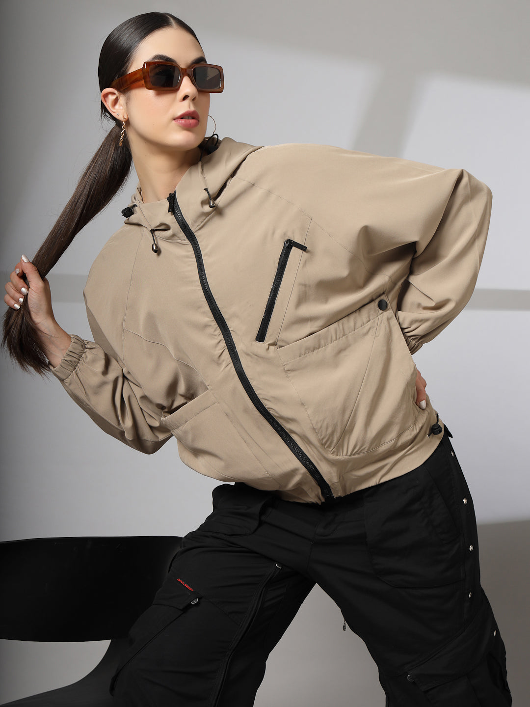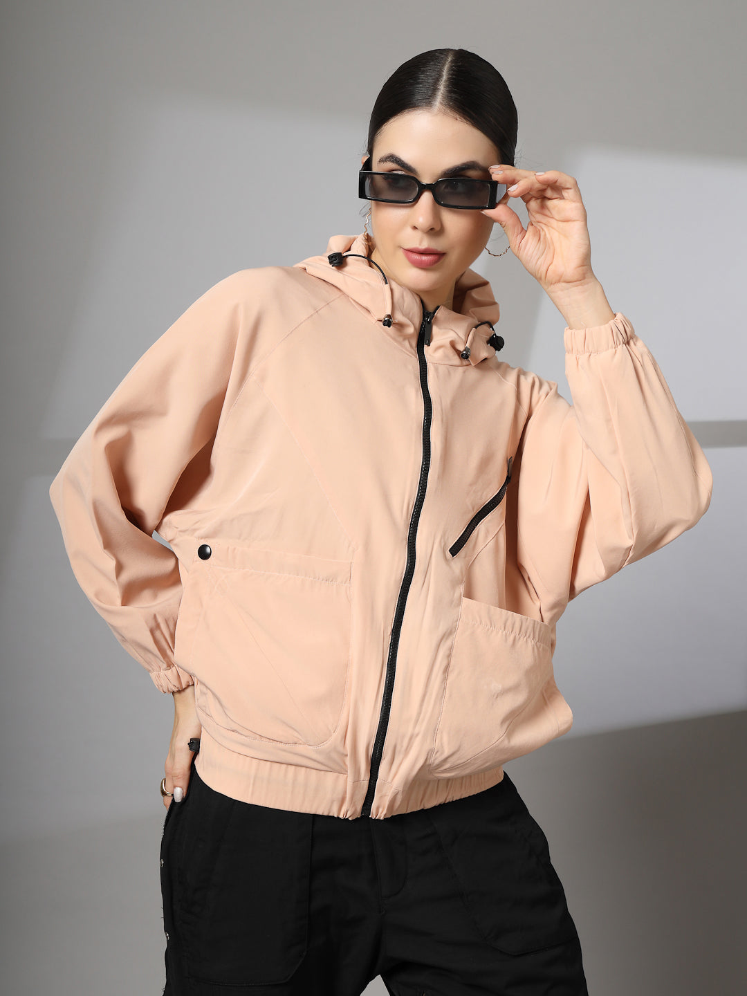 Women Winter Sports Oversized Windcheater Hooded Jacket