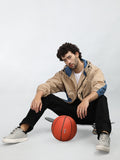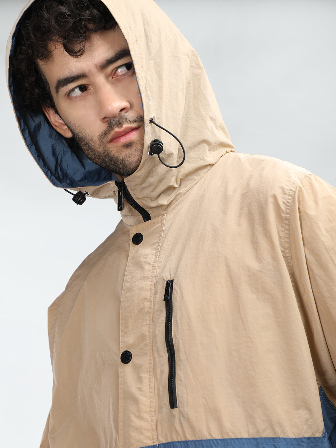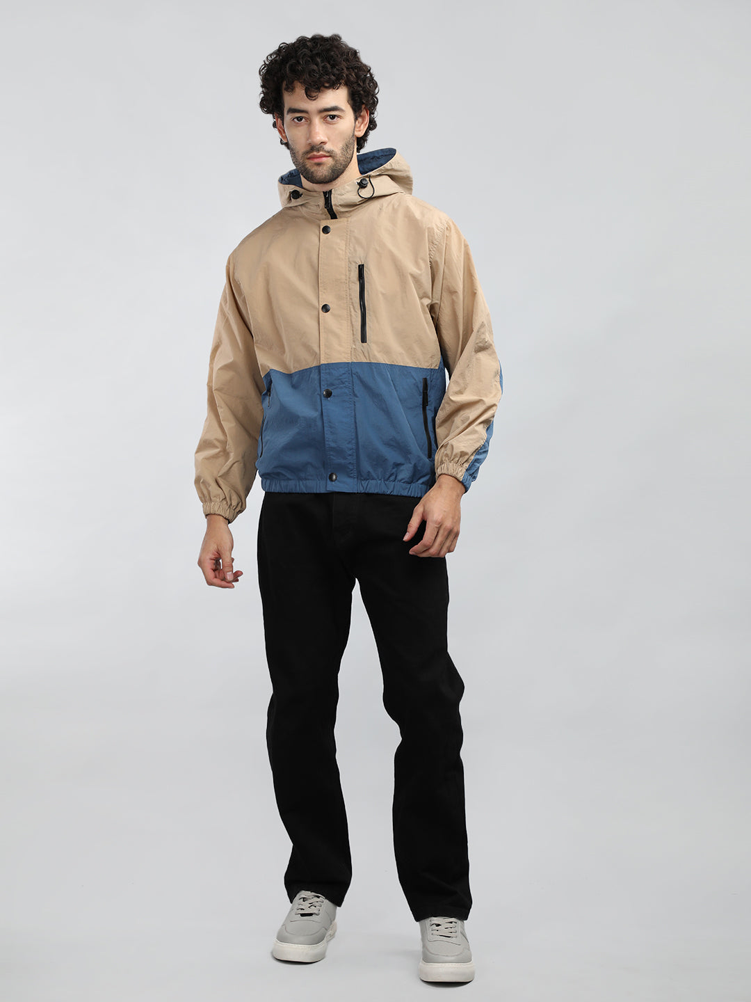 Men Colourblocked Hooded Windcheater Oversized Sports Jacket