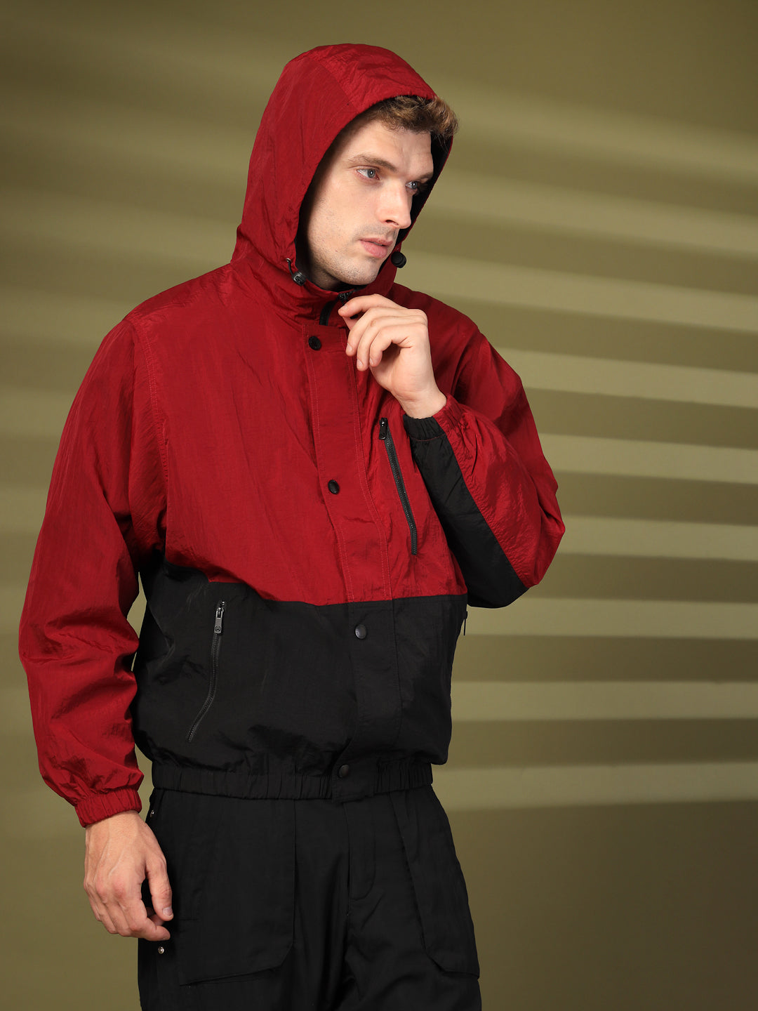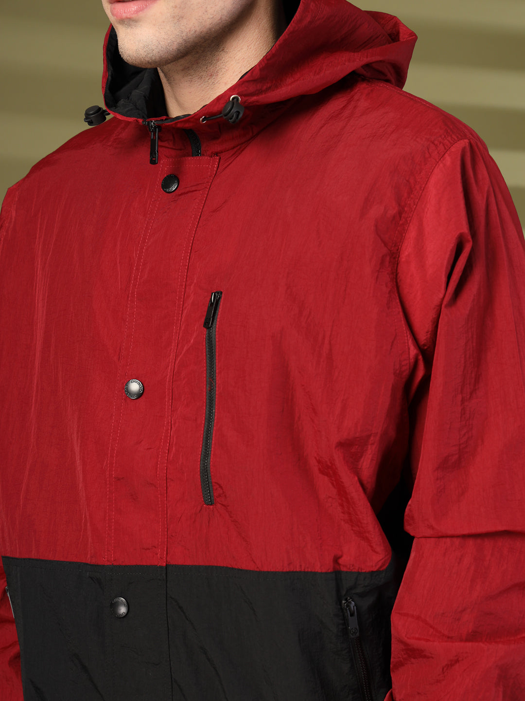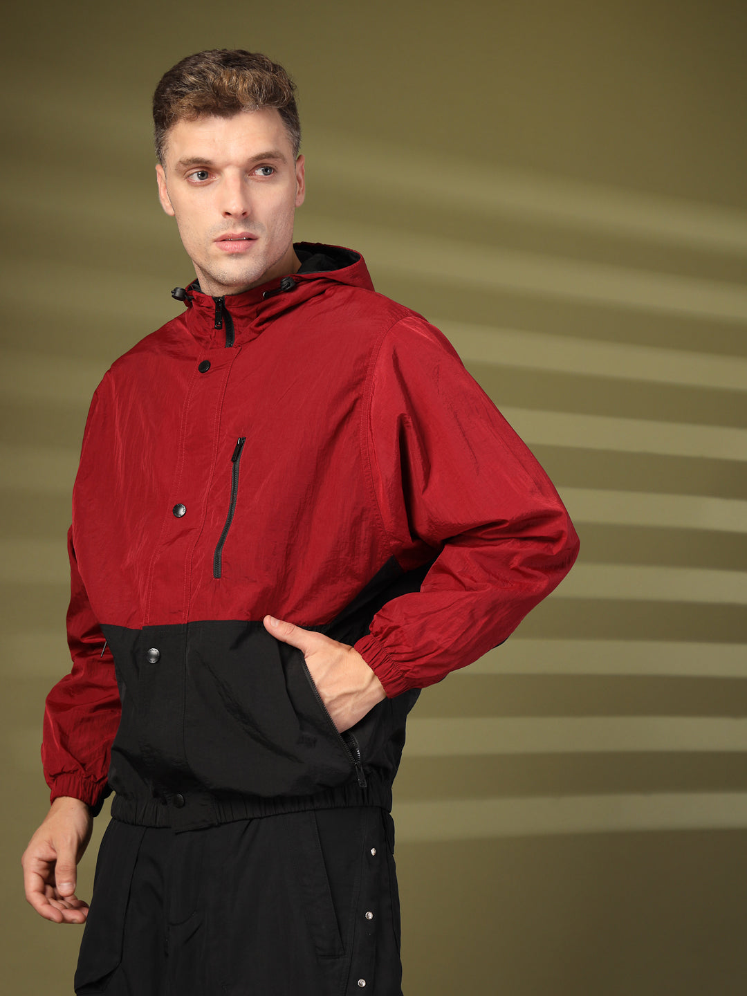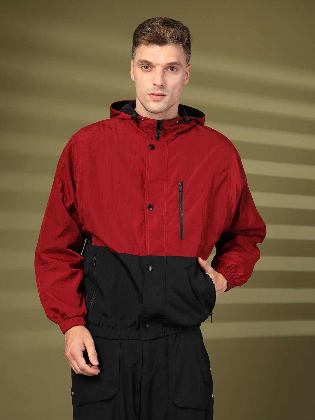 Men Colourblocked Hooded Windcheater Oversized Sports Jacket