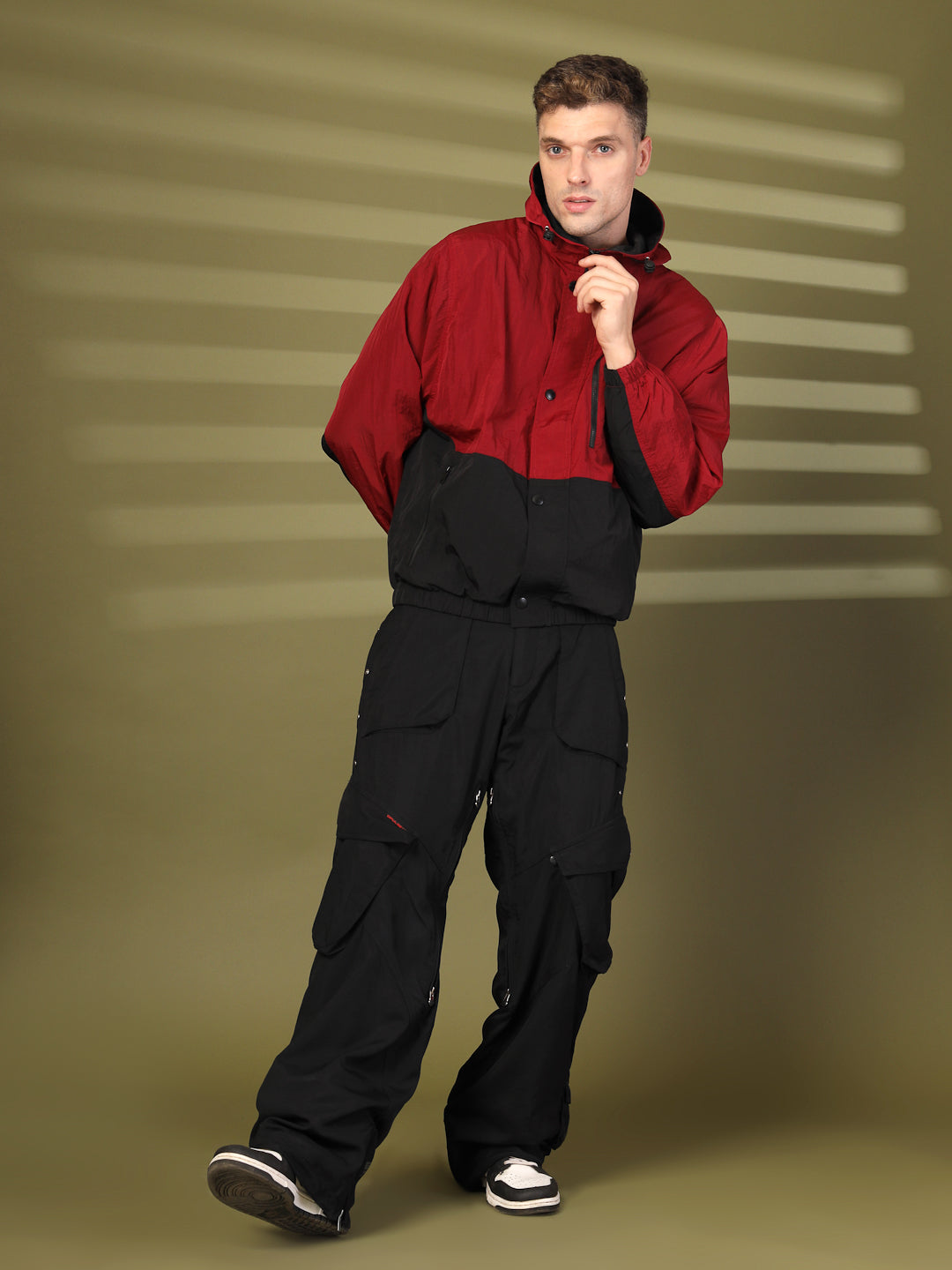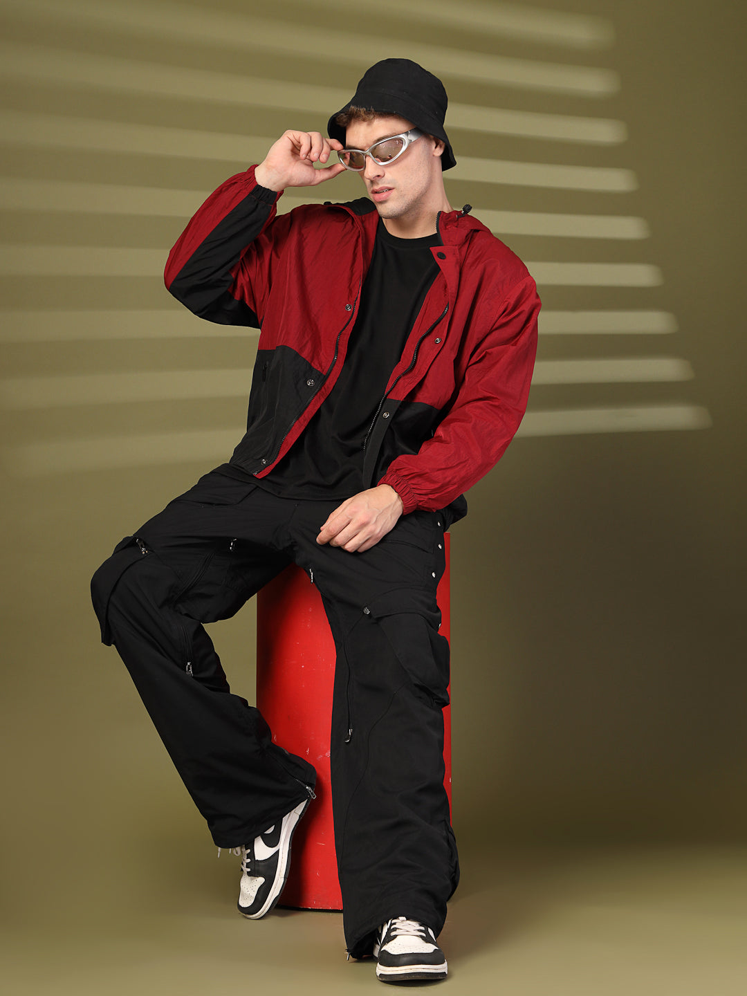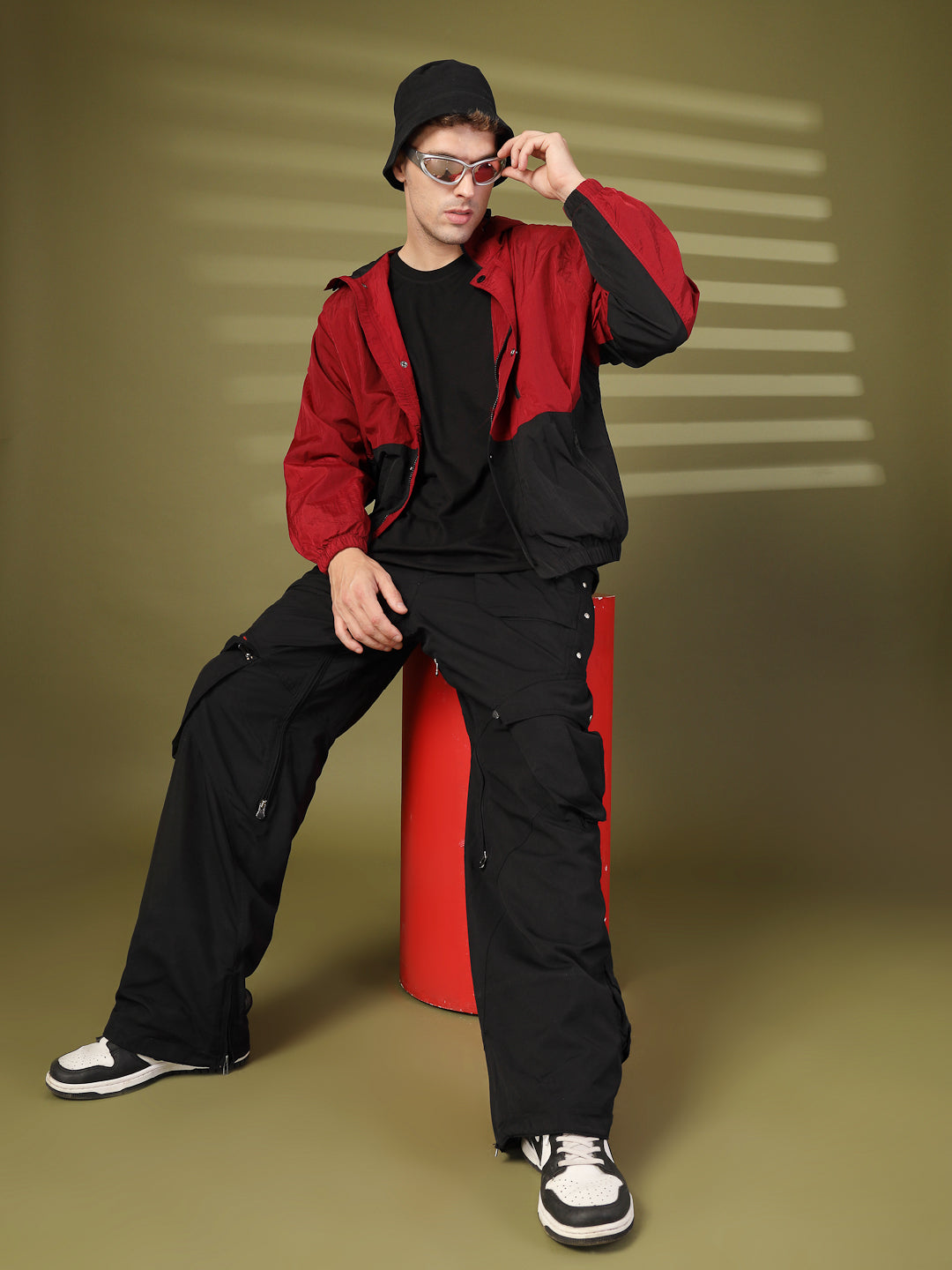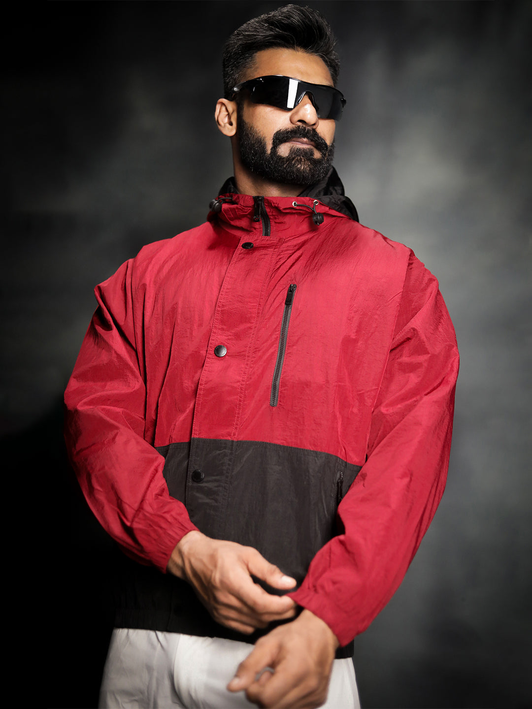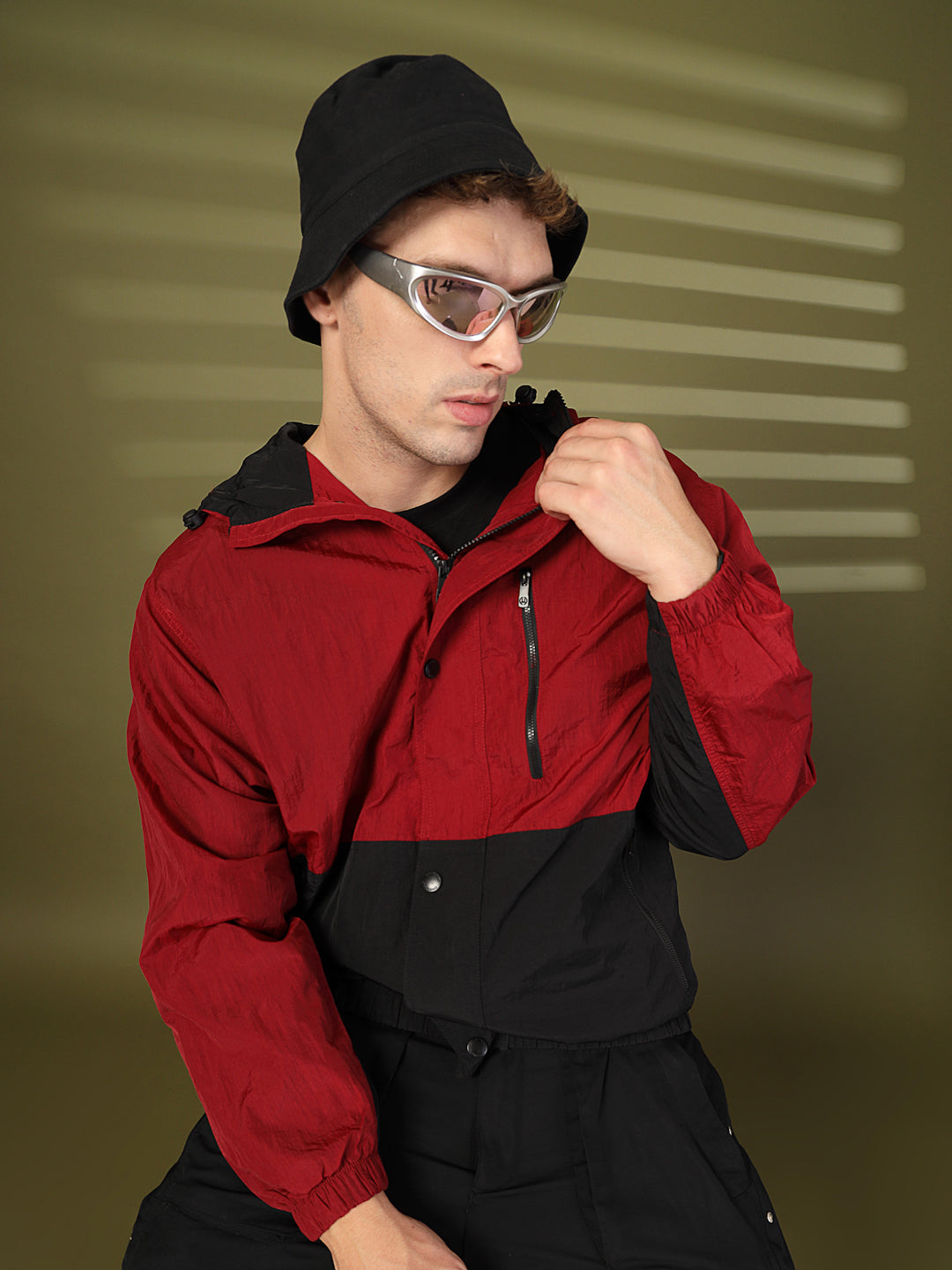 Men Colourblocked Hooded Windcheater Oversized Sports Jacket