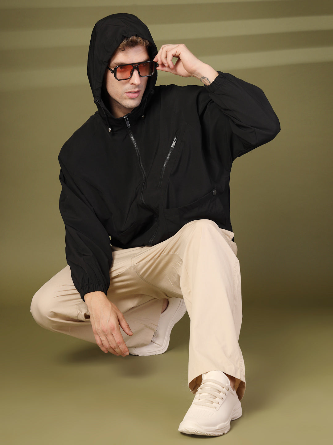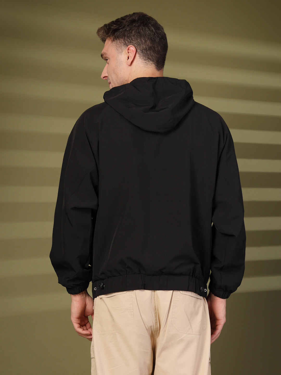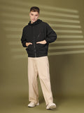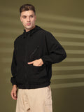 Men Winter Sports Oversized Windcheater Hooded Jacket Black