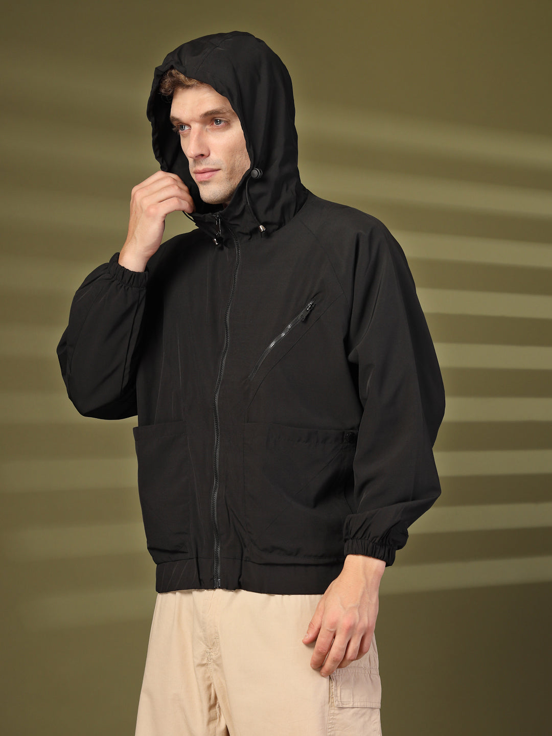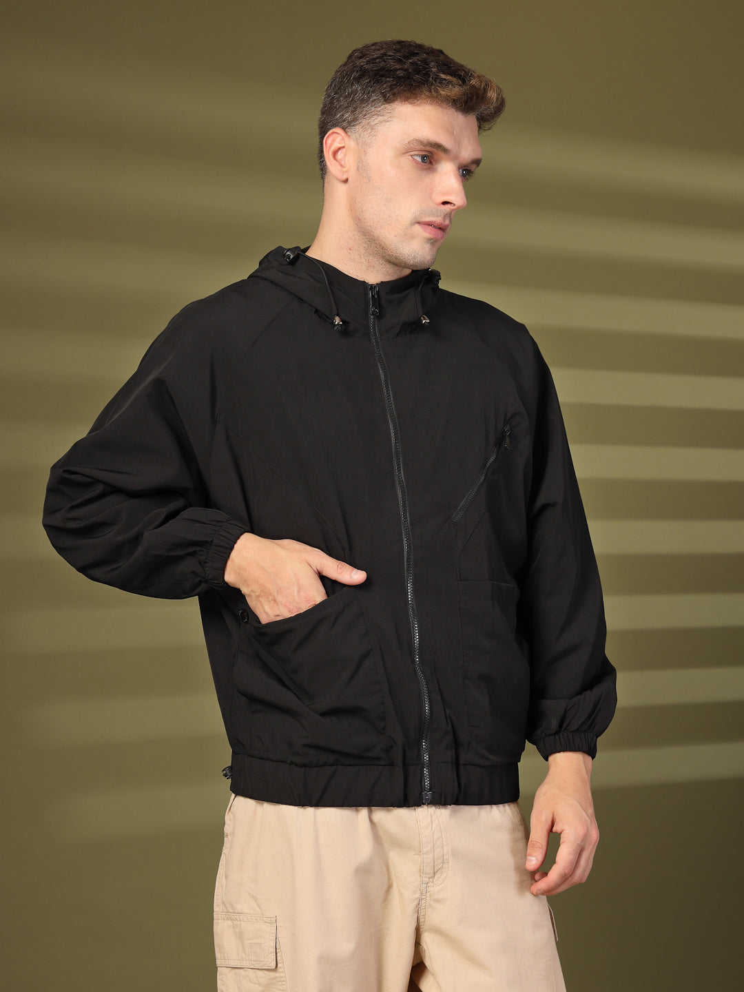 - Description: Stop the harsh winters from interfering with your daily style with this stylish Windcheater from CHKOKKO. The Windcheater features a Self design pattern, long sleeves with two pockets & zipper closure. The Windcheater is designed to keep your clothes dry and dust-free. The Windcheater is completely water resistant and comes with an external shell to stop water from getting inside.