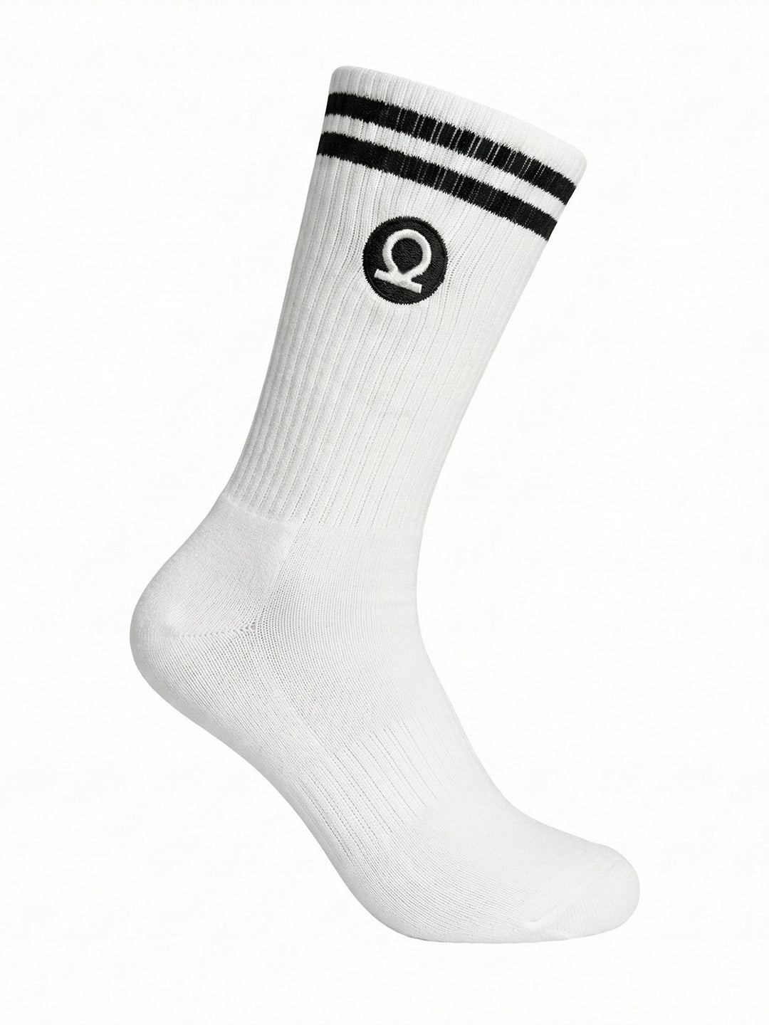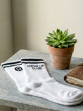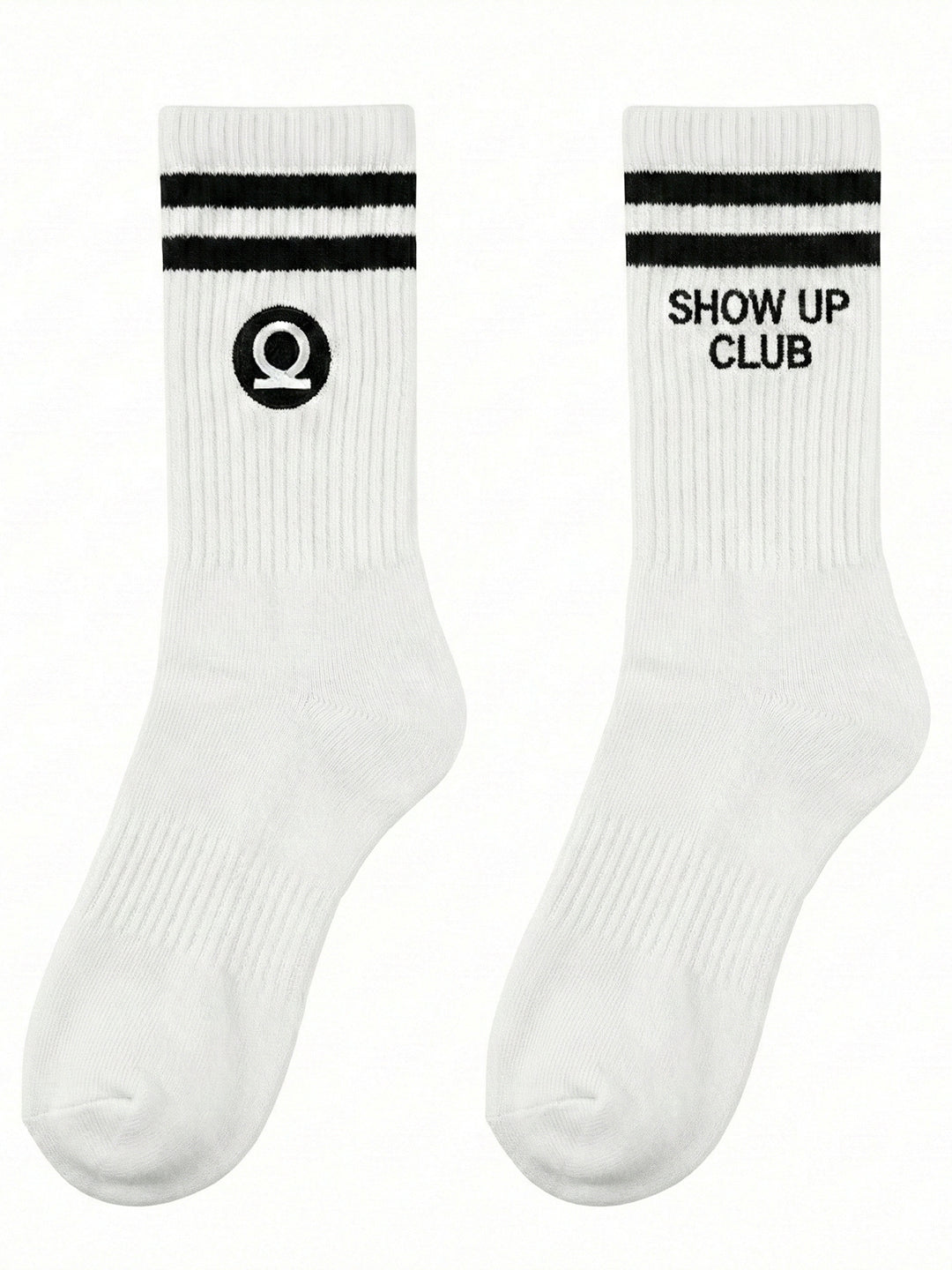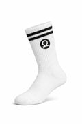 CHKOKKO Show Up Club Crew Socks – White with Black Stripes