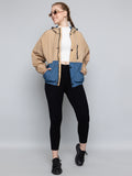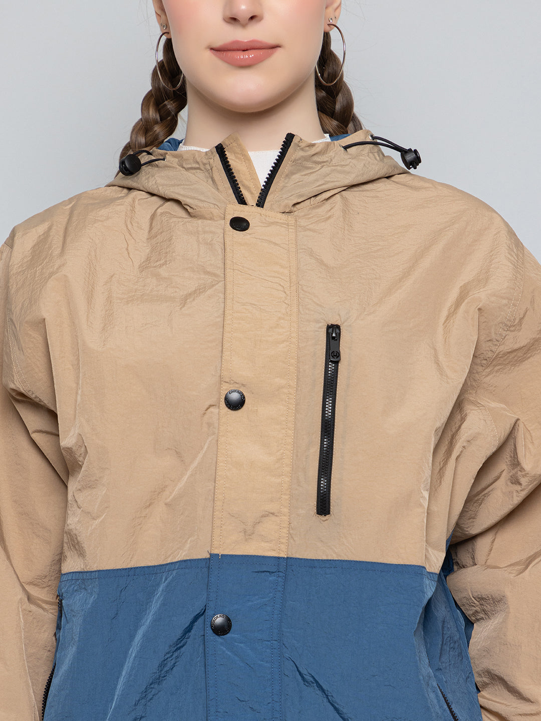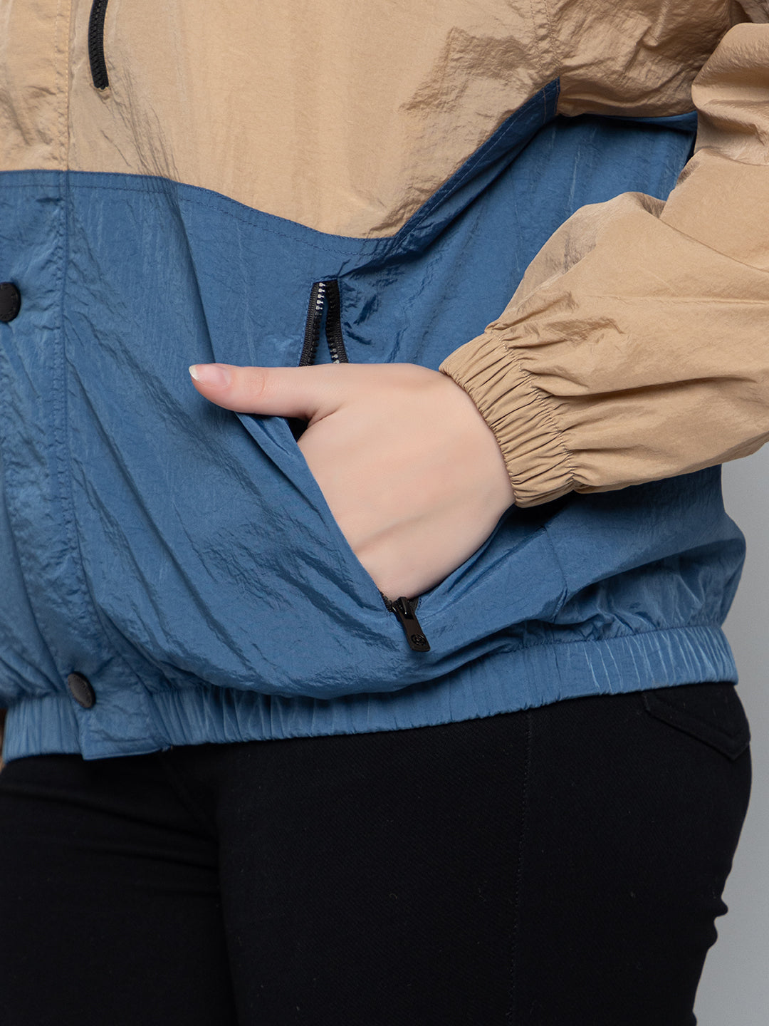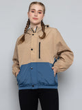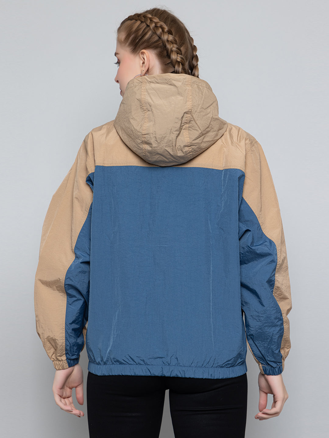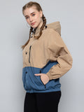 Women Colourblocked Hooded Windcheater Oversized Sports Jacket