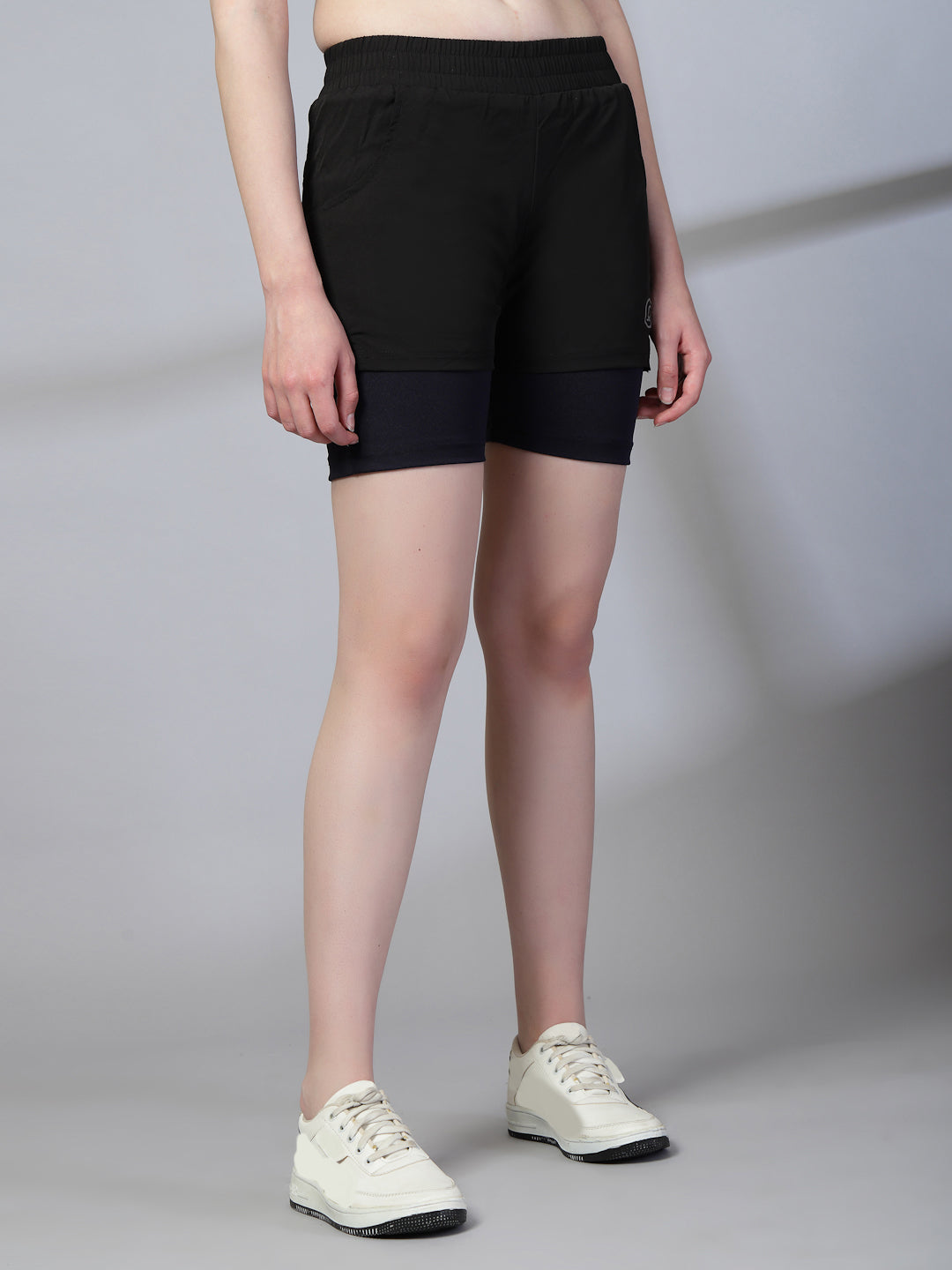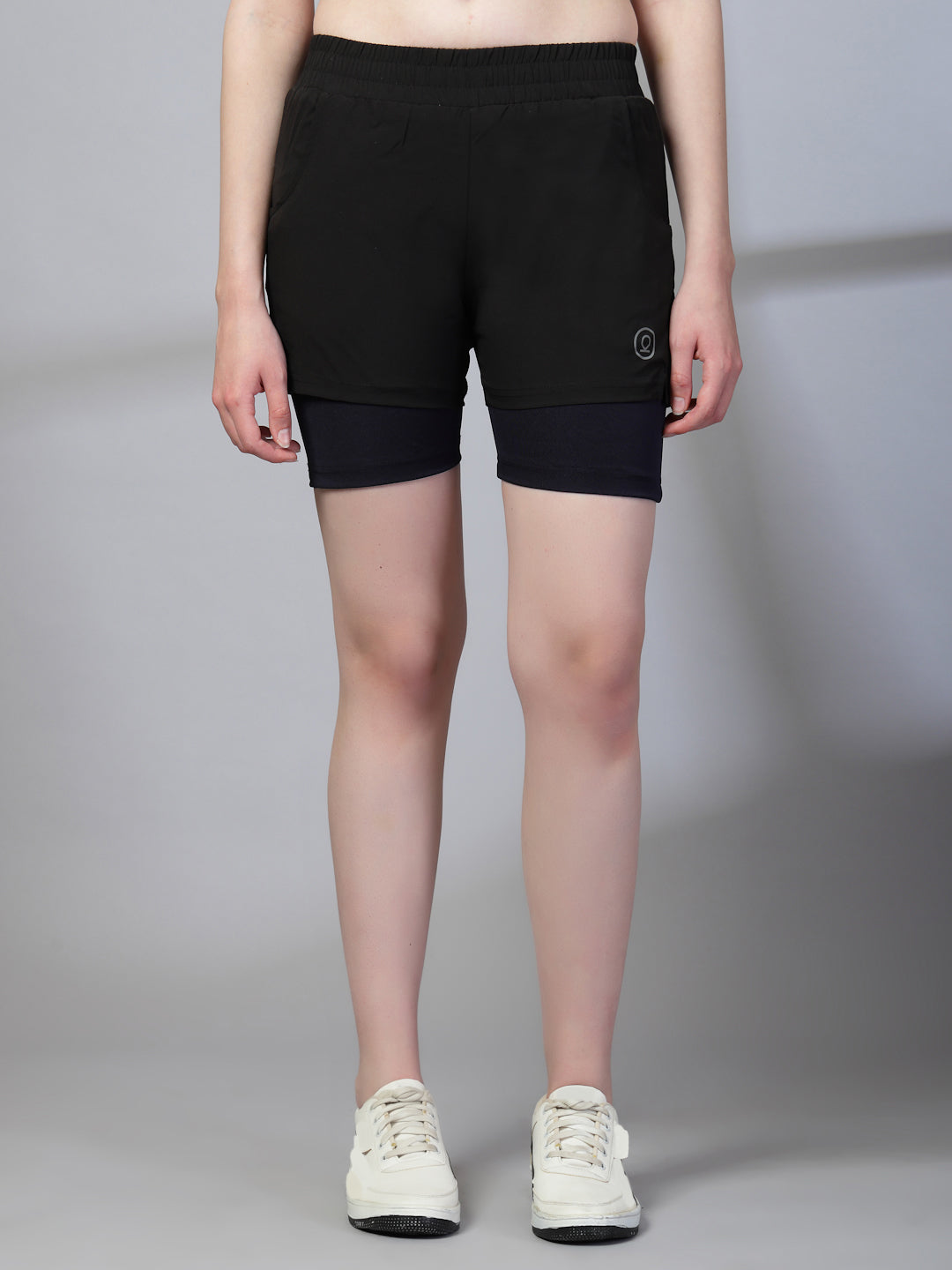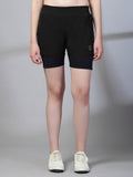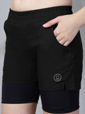 Women's Double Layered Dry Fit Sports Running Shorts Black Purple