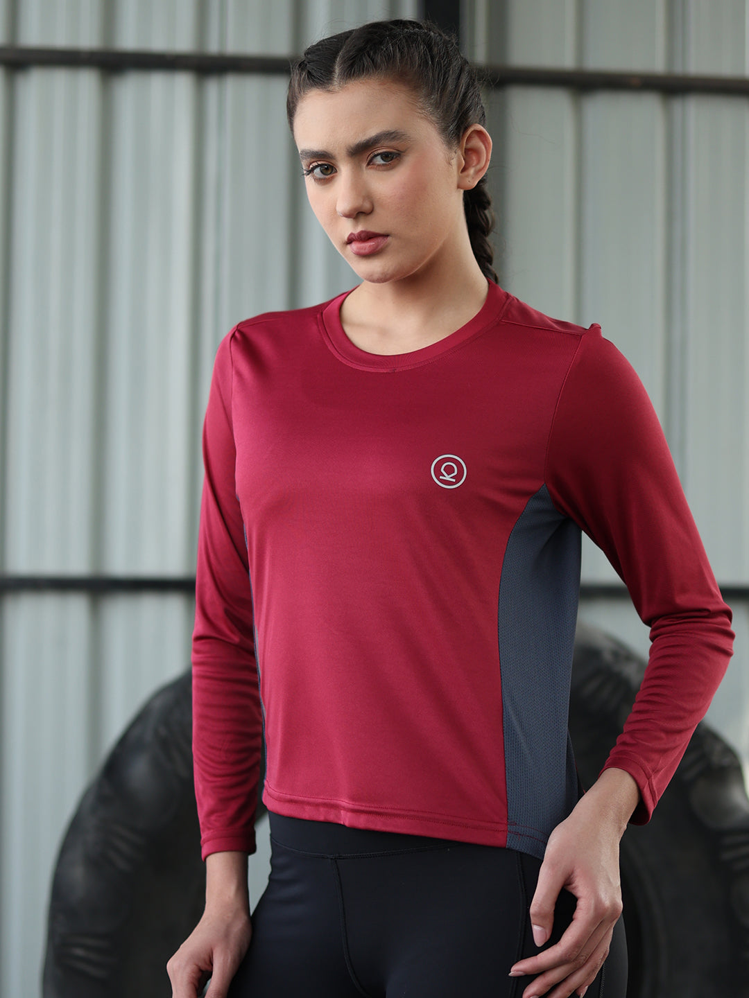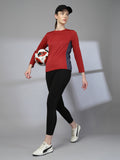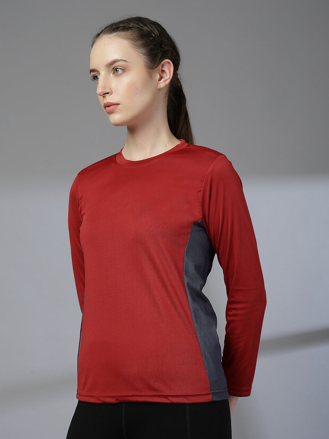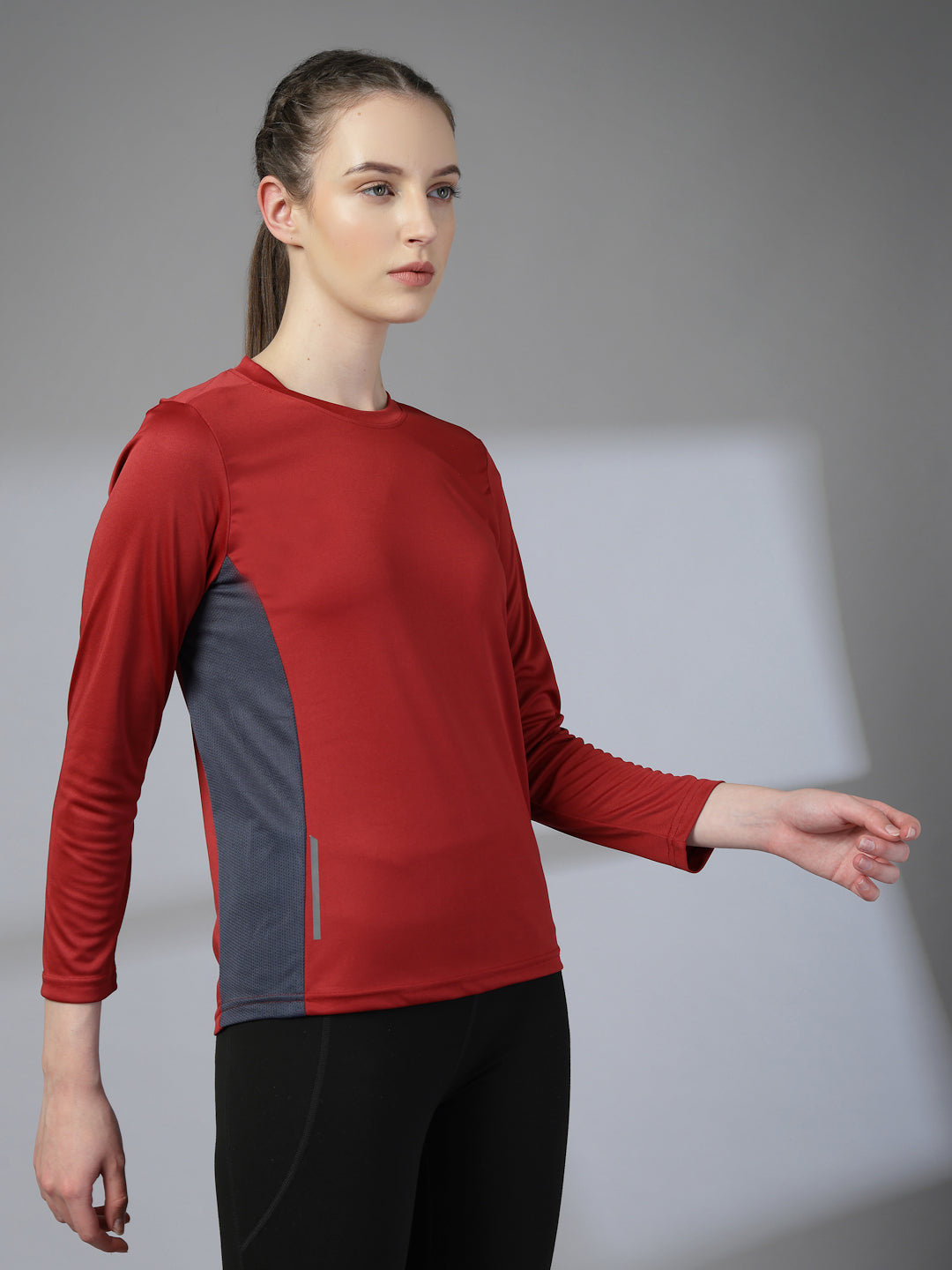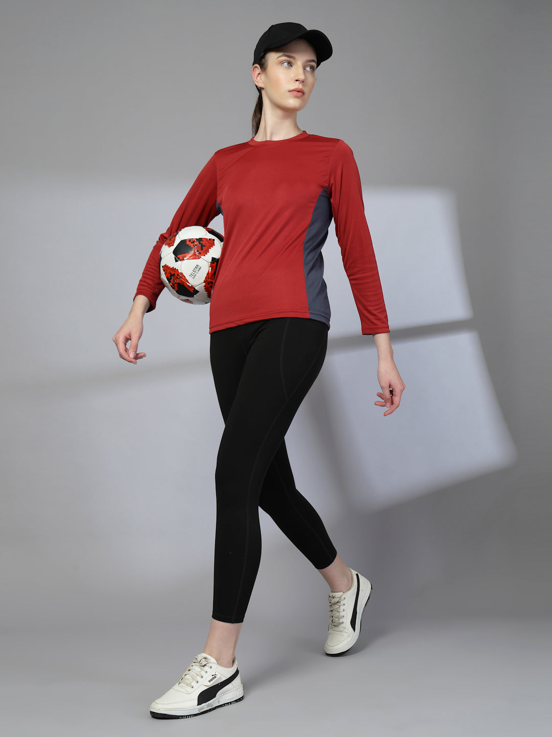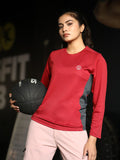 Women's Full Sleeves Gym Sports T-Shirt Maroon