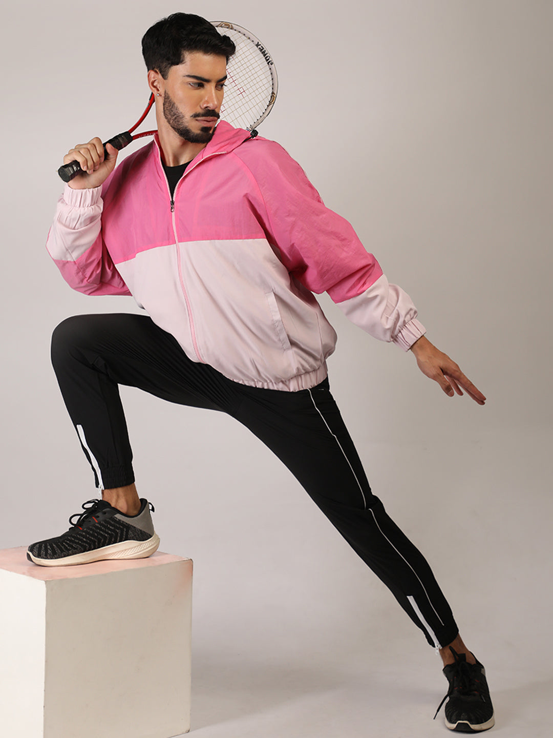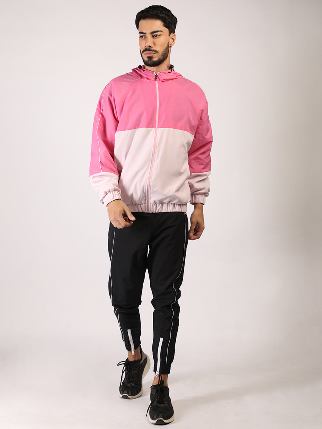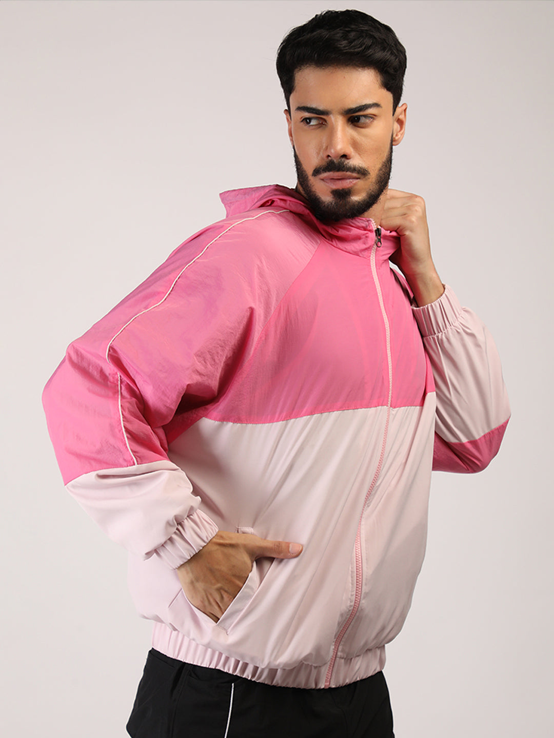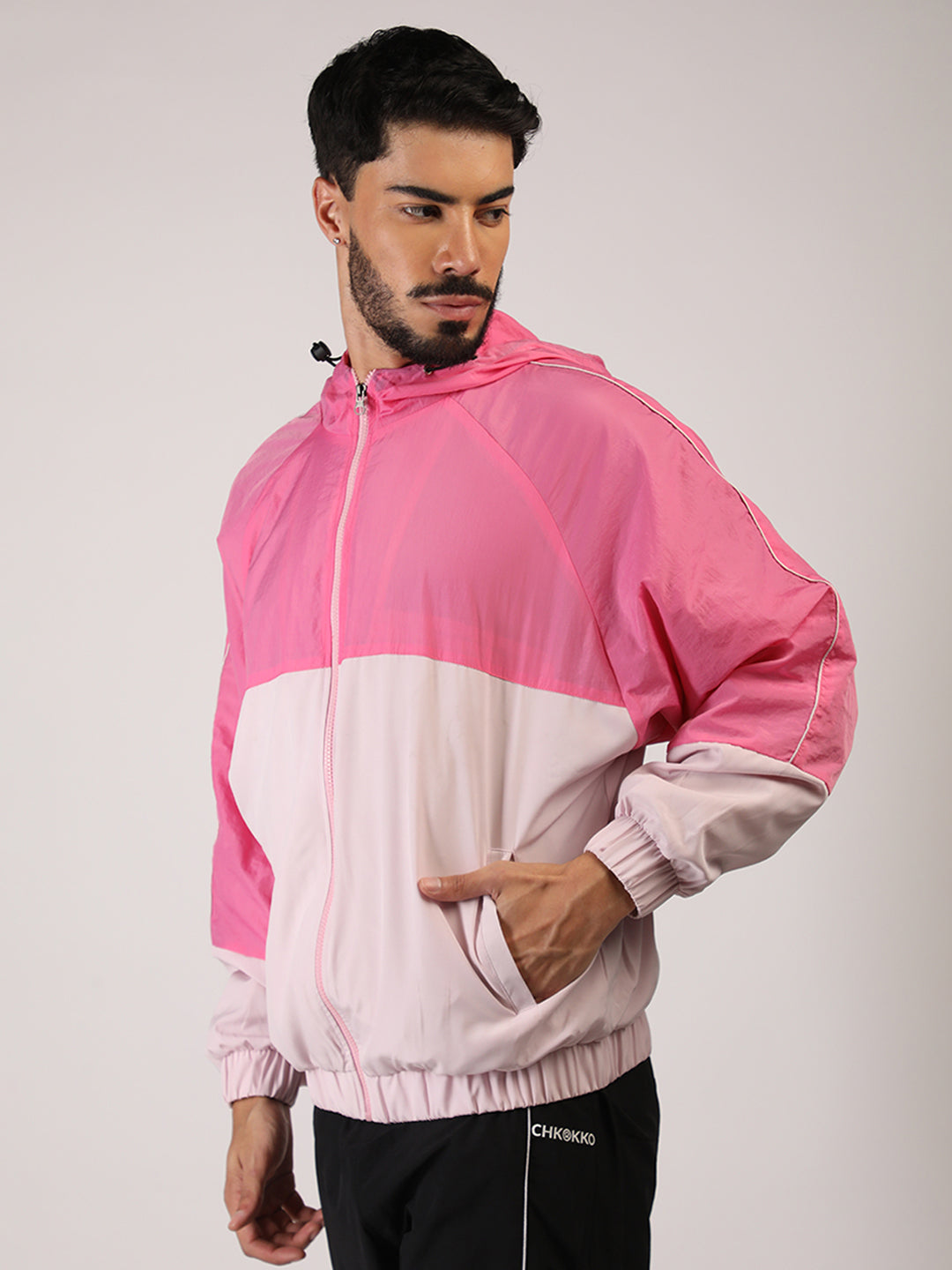 Men Hooded Windcheater Oversized Sports Jacket Candy Pink