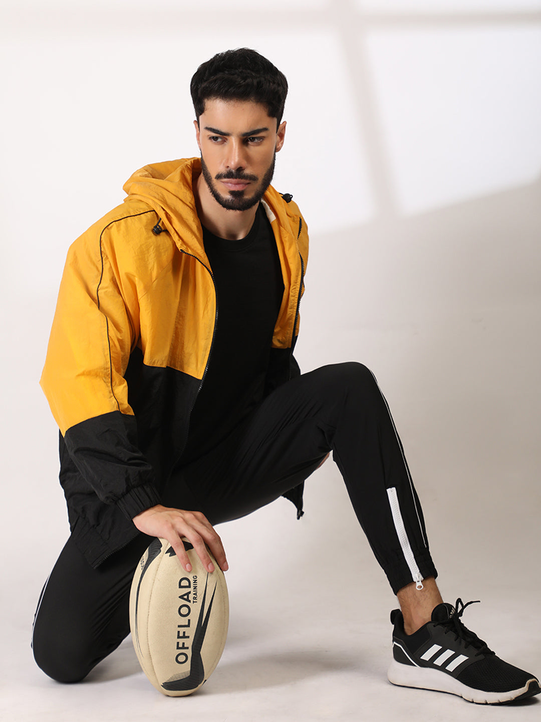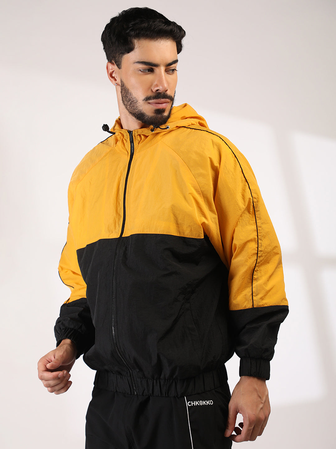 Men Hooded Windcheater Oversized Sports Jacket Yellow Black