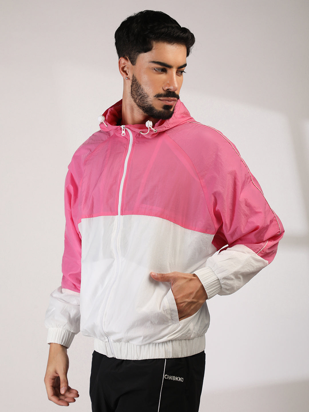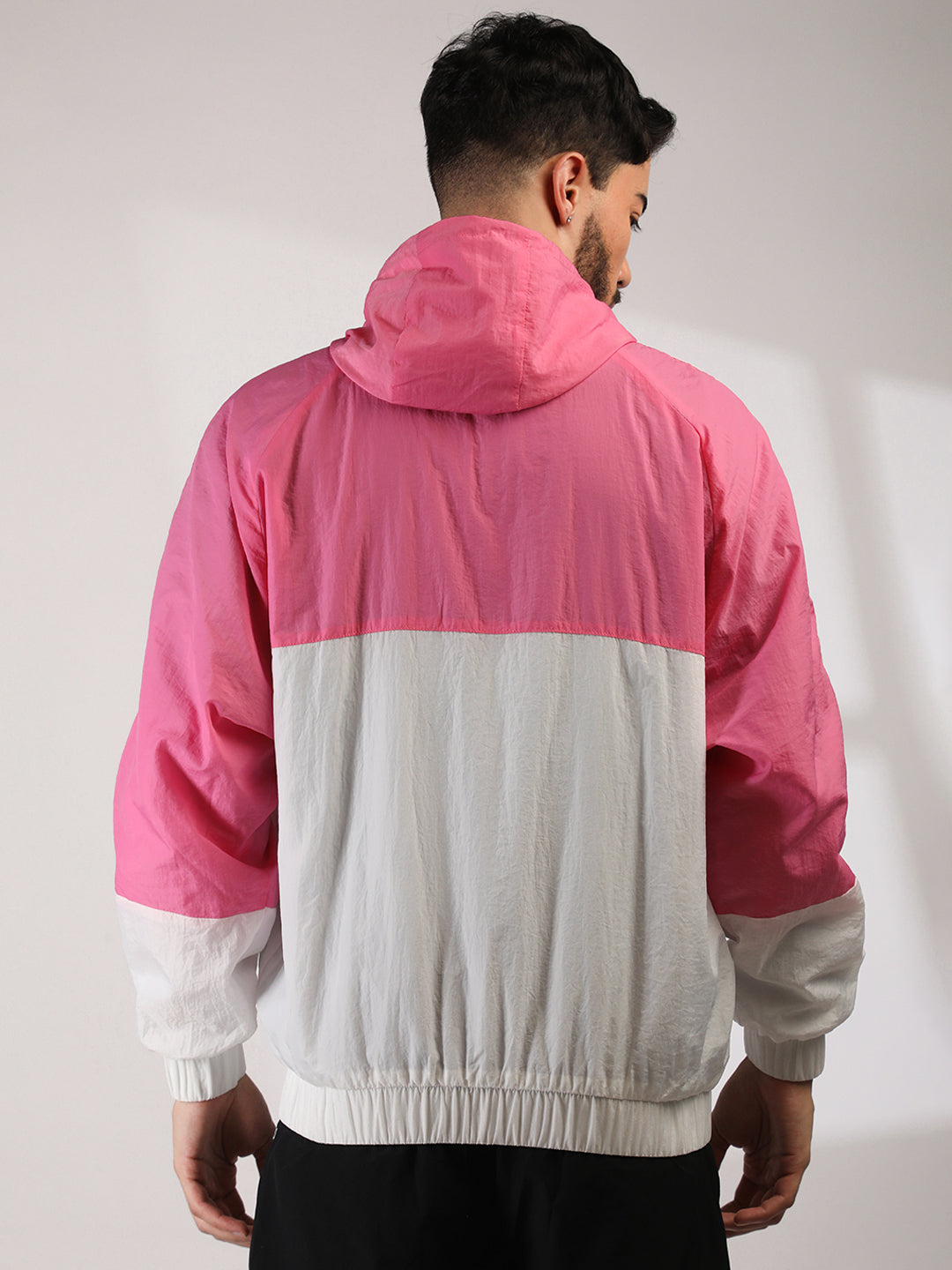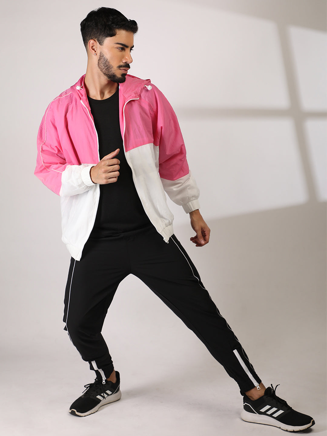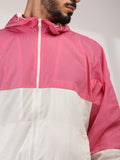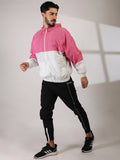 Men Hooded Windcheater Oversized Sports Jacket Pink White