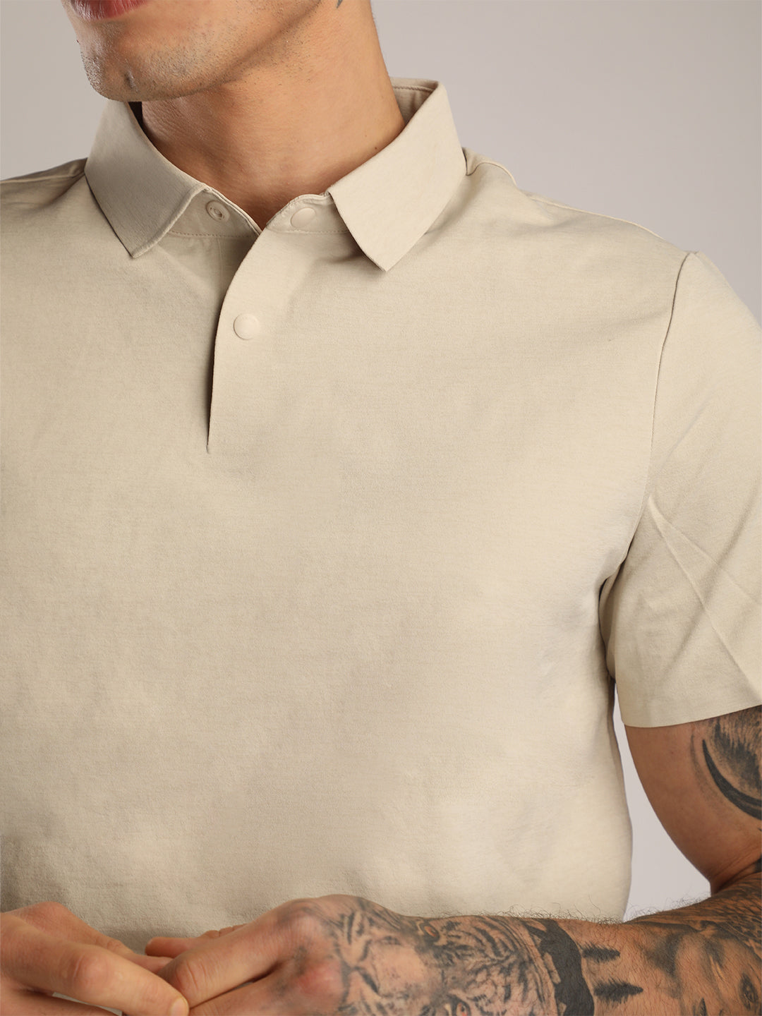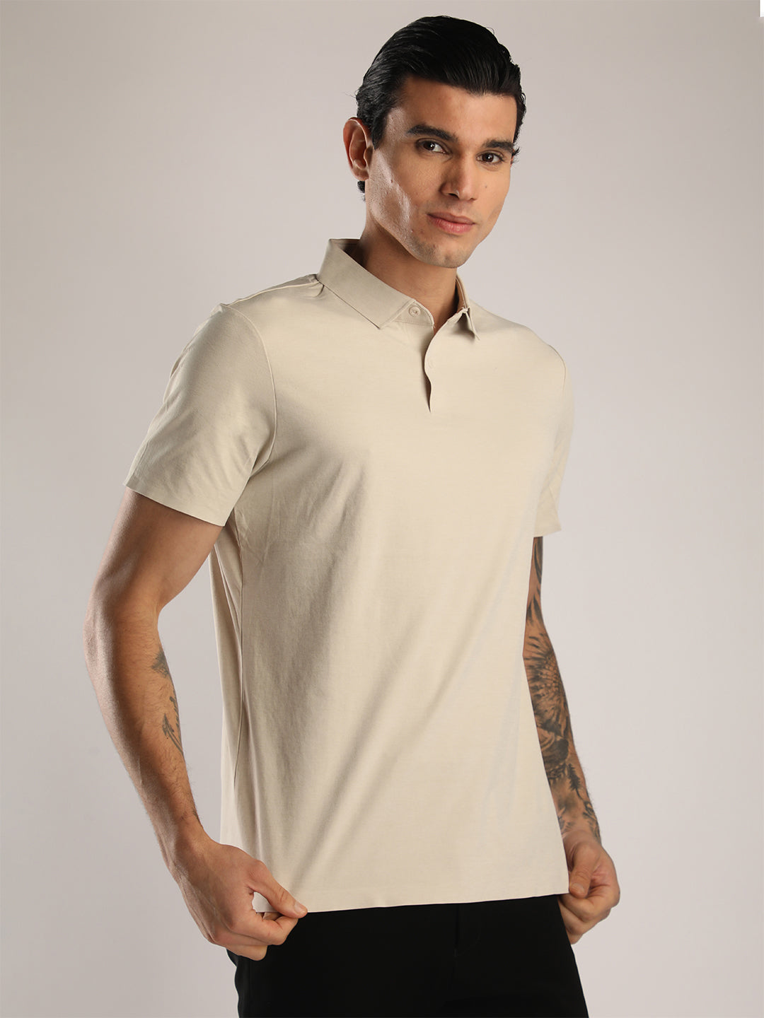 Men’s Beige Premium Polo Sports T-Shirt