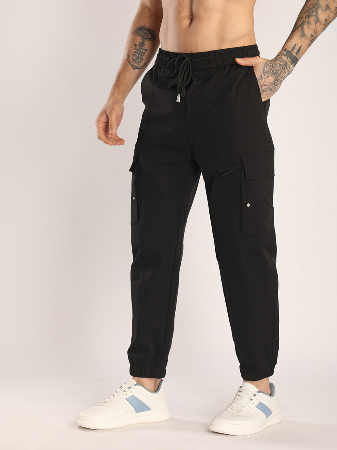 Description : Upgrade your activewear with these men’s cargo track pants, designed for comfort, performance, and everyday style. Crafted from lightweight, breathable fabric, these joggers are perfect for workouts, travel, or casual wear. Featuring an elasticated waistband with adjustable drawstring, they provide a secure and comfortable fit. The multiple cargo side pockets add a functional edge, allowing you to carry essentials with ease. Finished with elastic cuffs at the ankles, these track pants deliver a modern, tapered look that pairs effortlessly with sneakers or trainers.