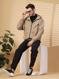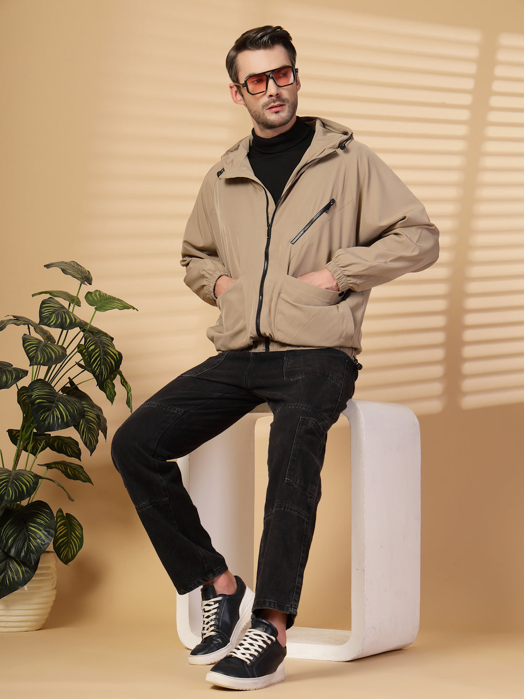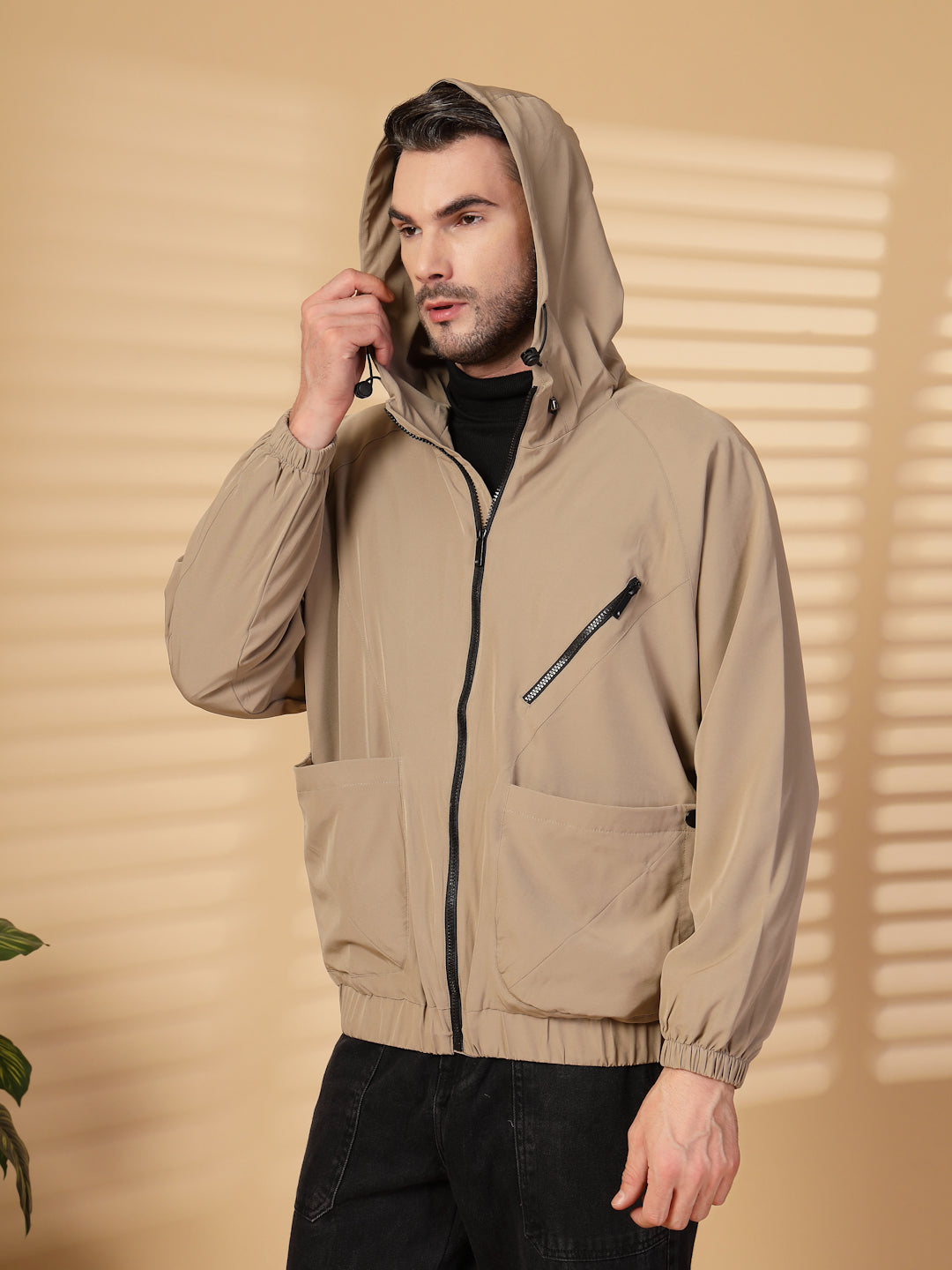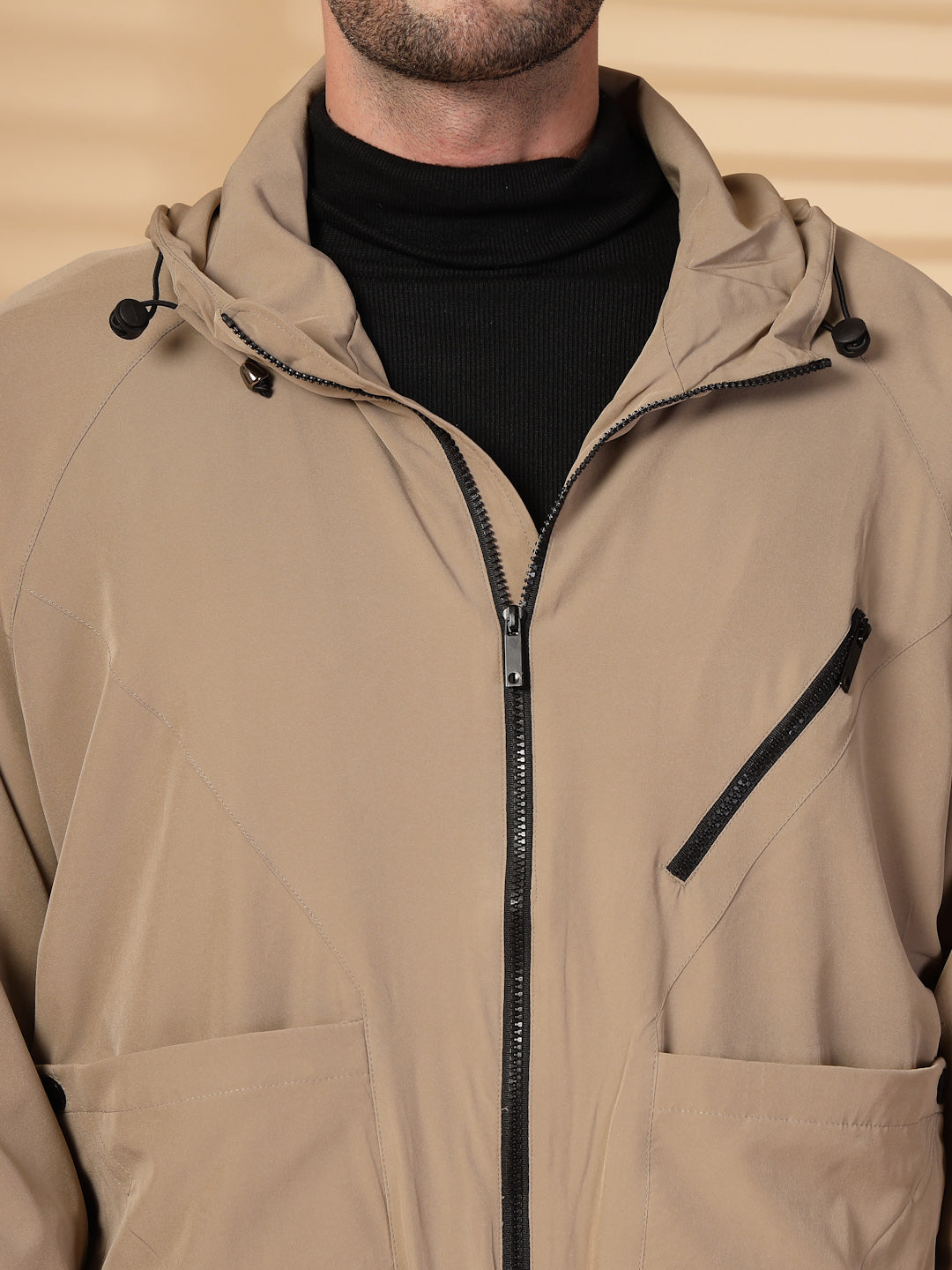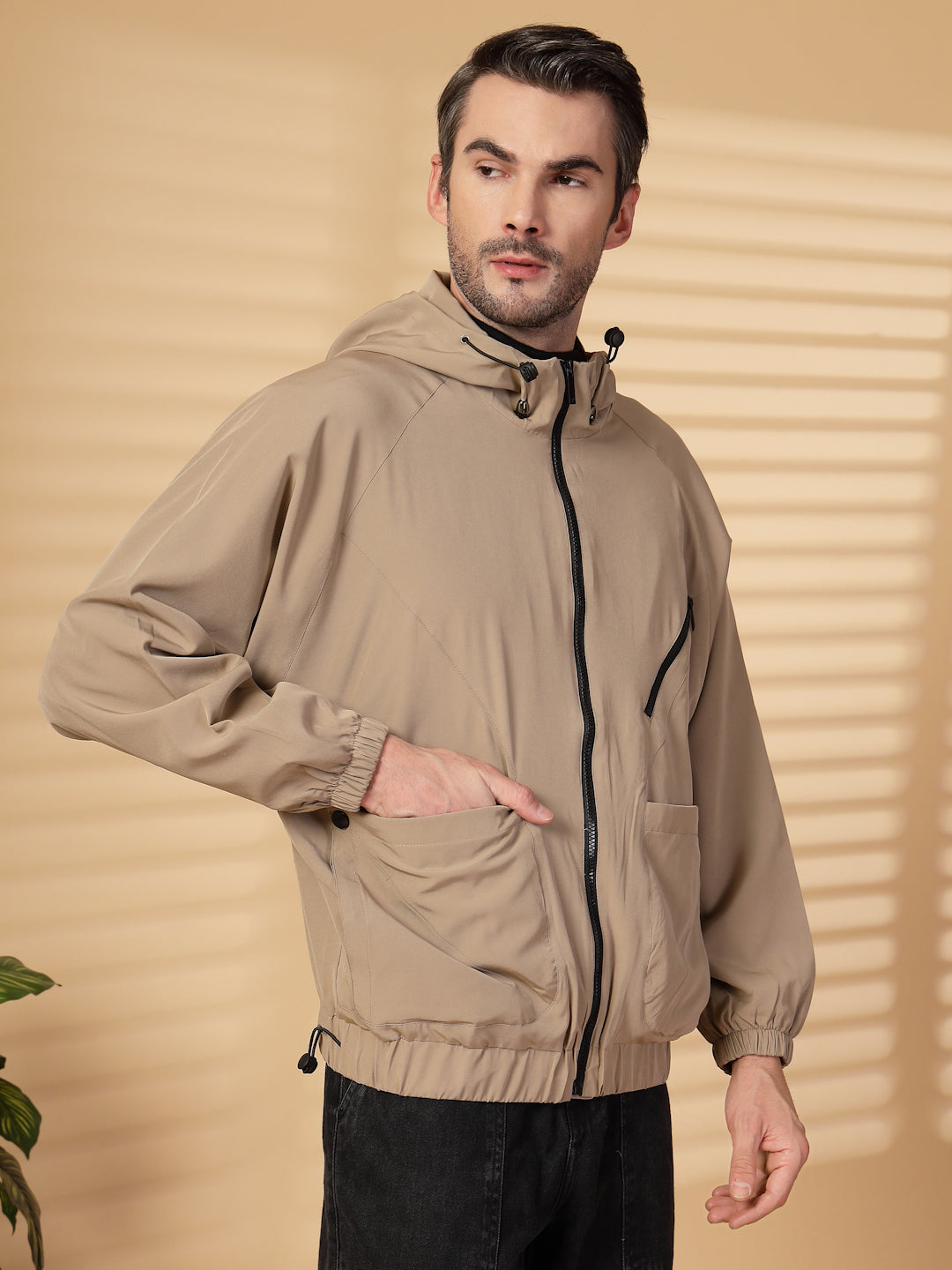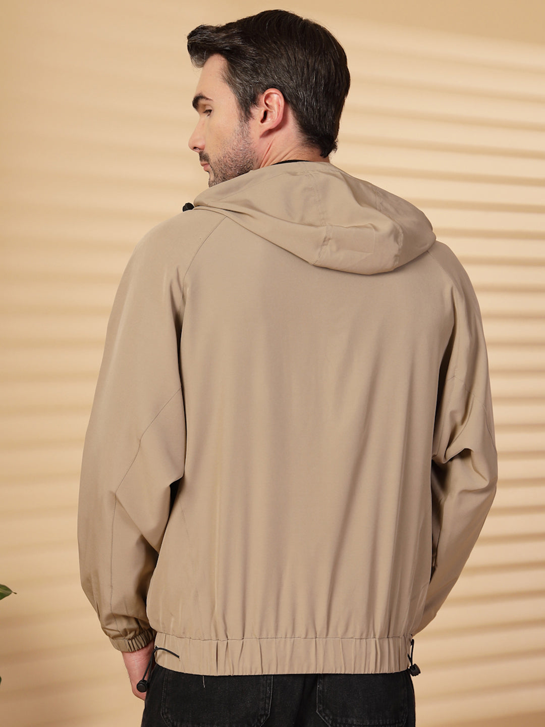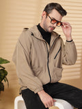 Men Winter Sports Oversized Windcheater Hooded Jacket Khaki