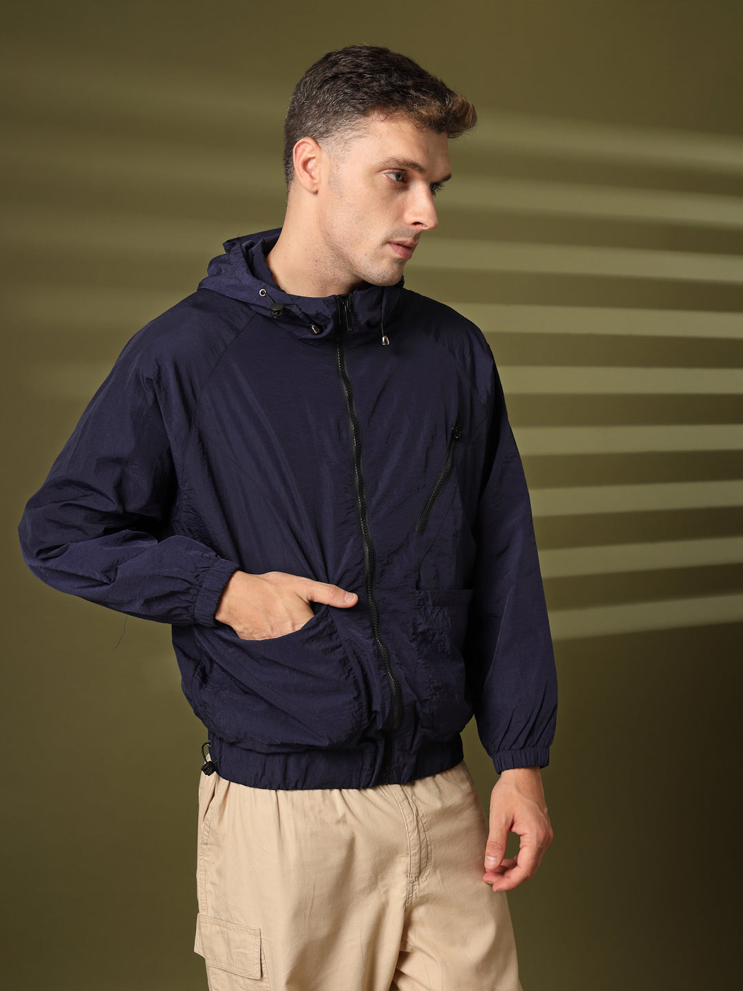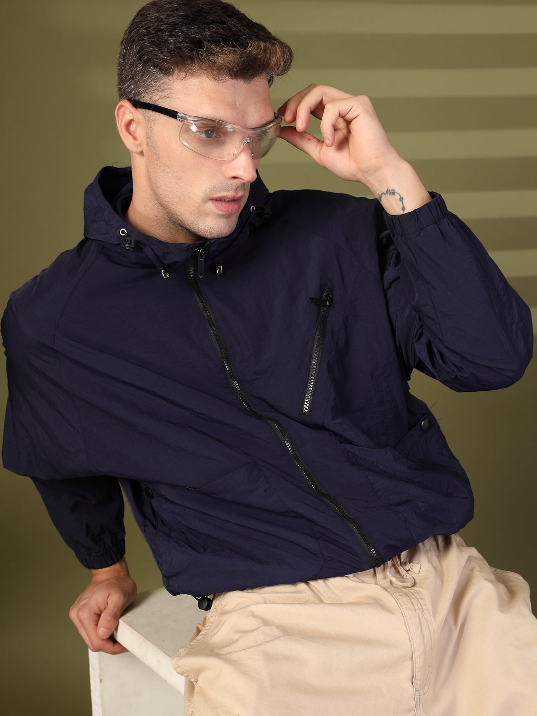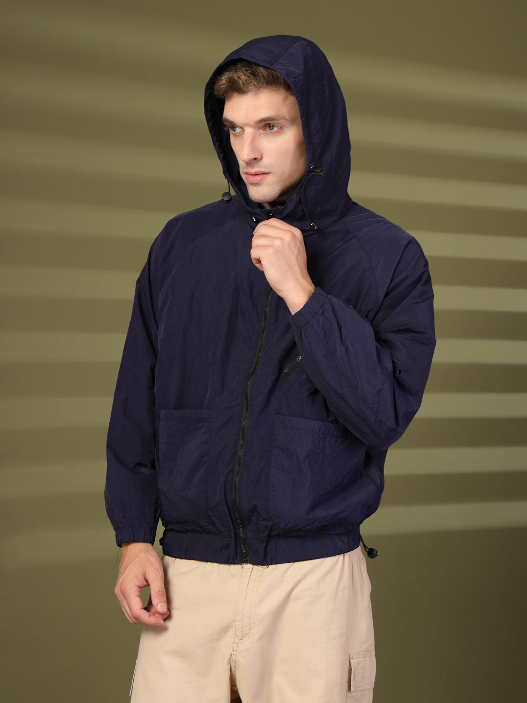 Men Winter Sports Oversized Windcheater Hooded Jacket Navy