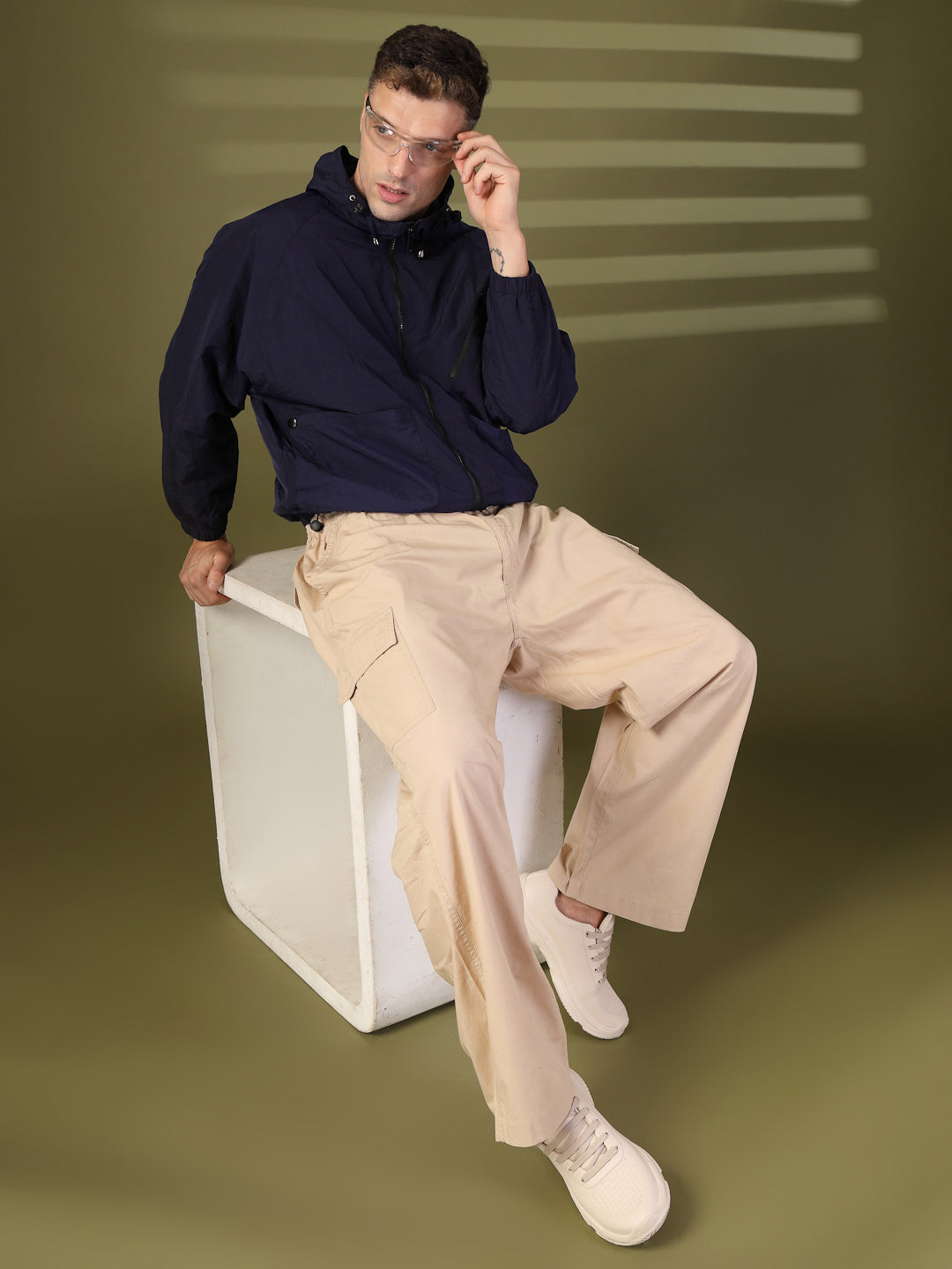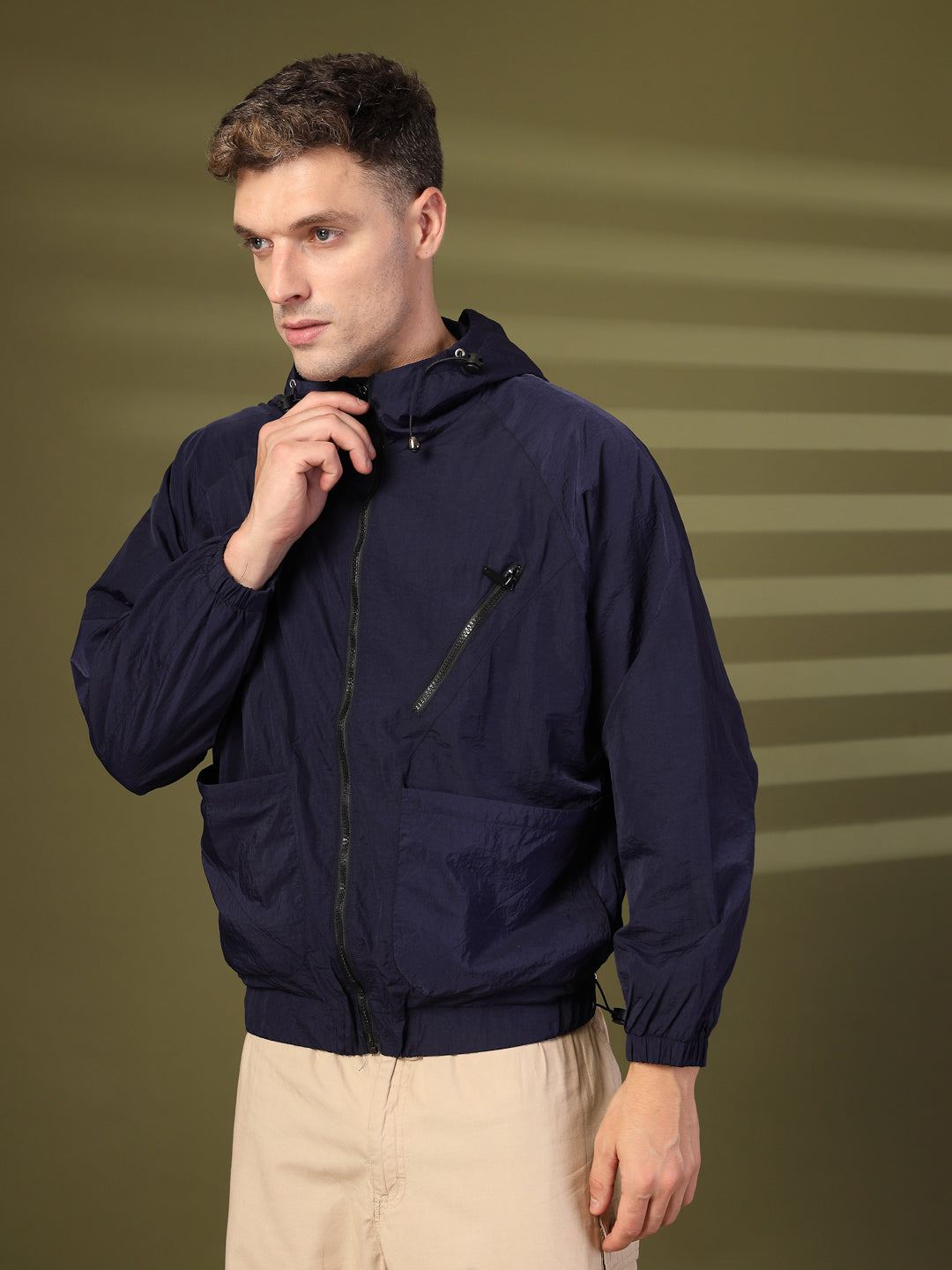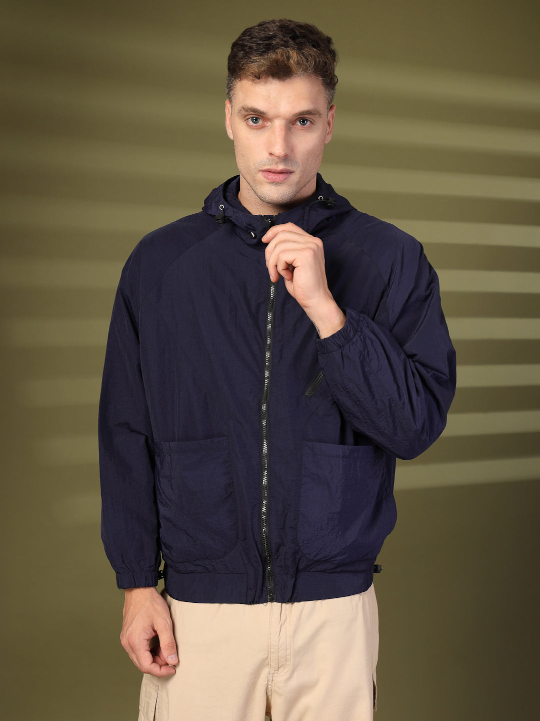 Men Winter Sports Oversized Windcheater Hooded Jacket Navy