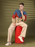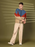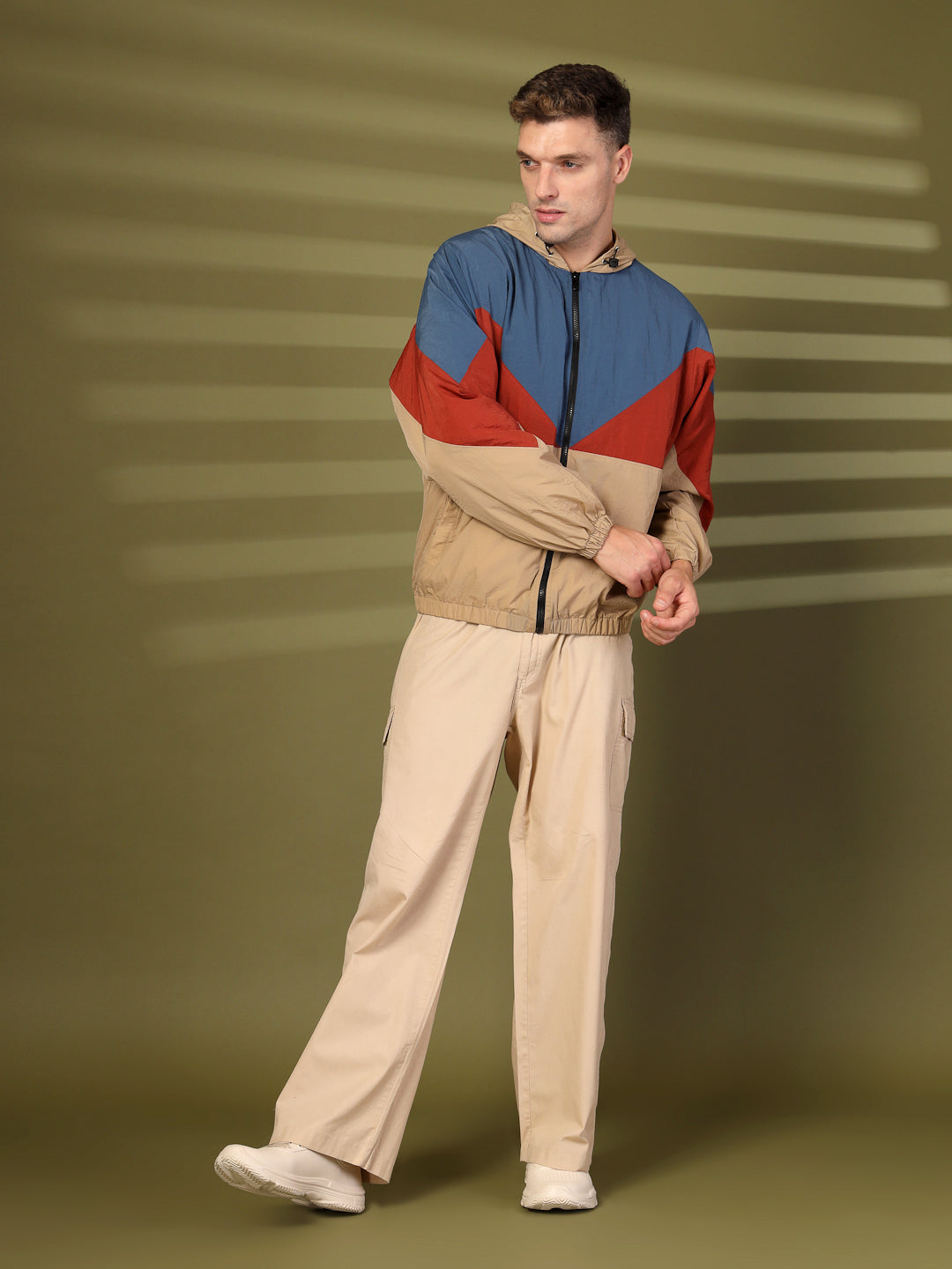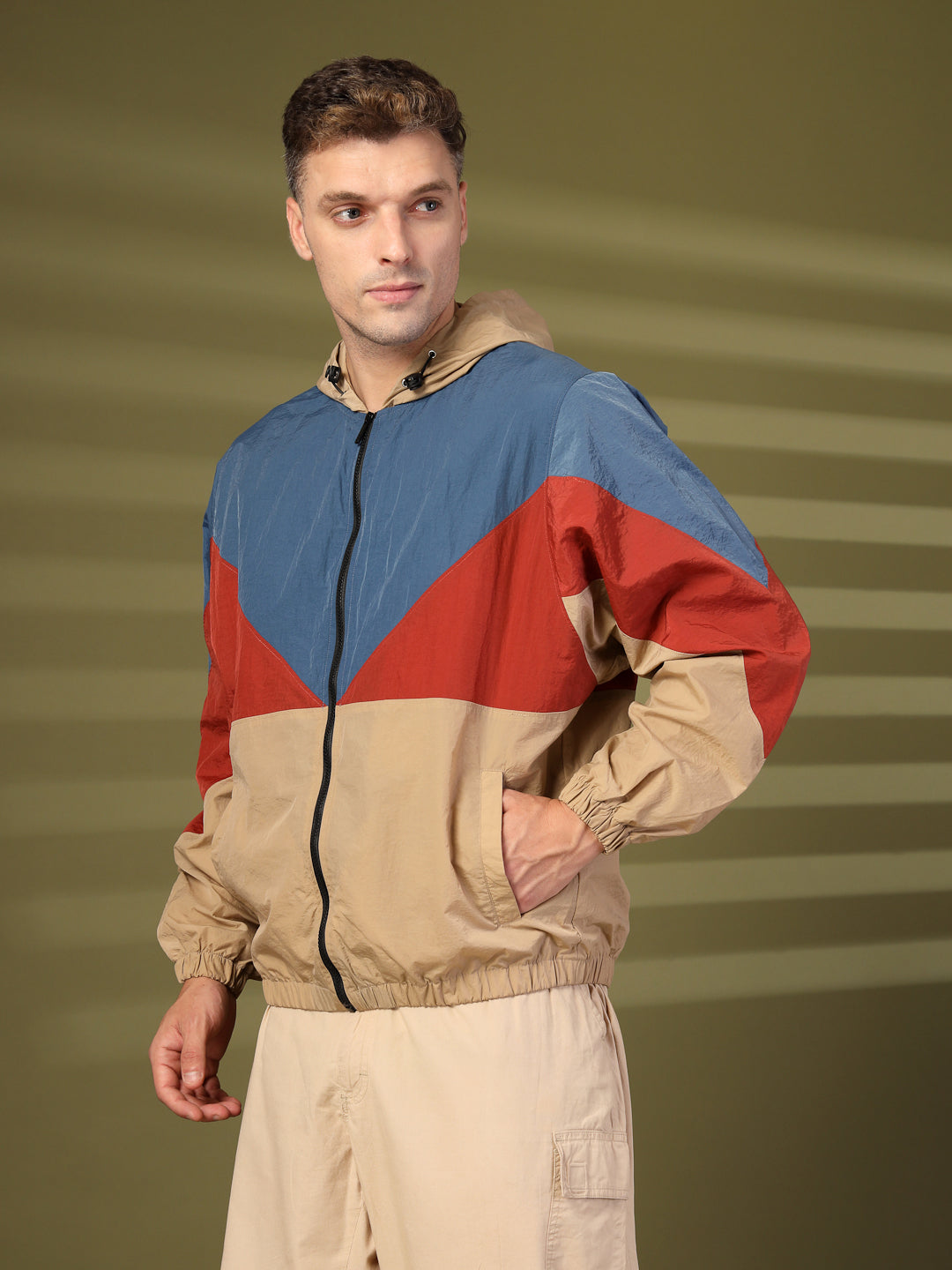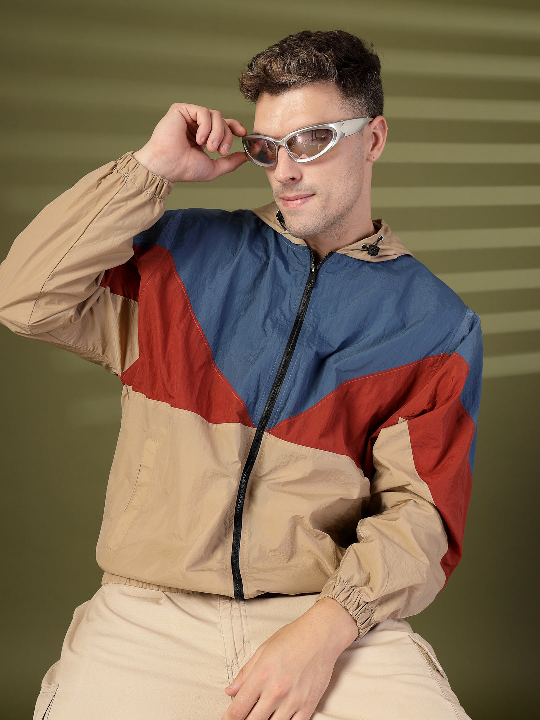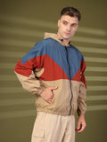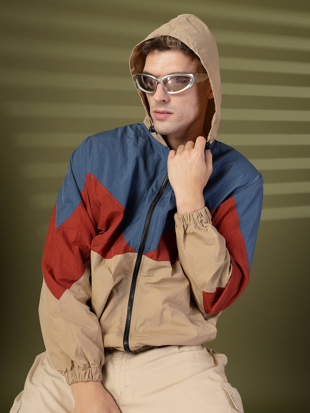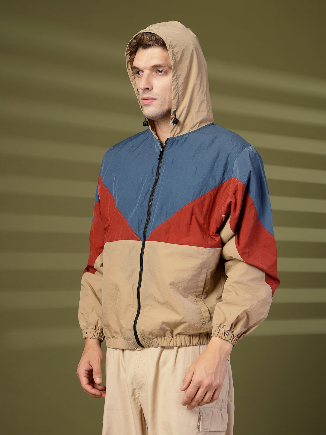 Men Colourblocked Hooded Windcheater Oversized Sports Jacket