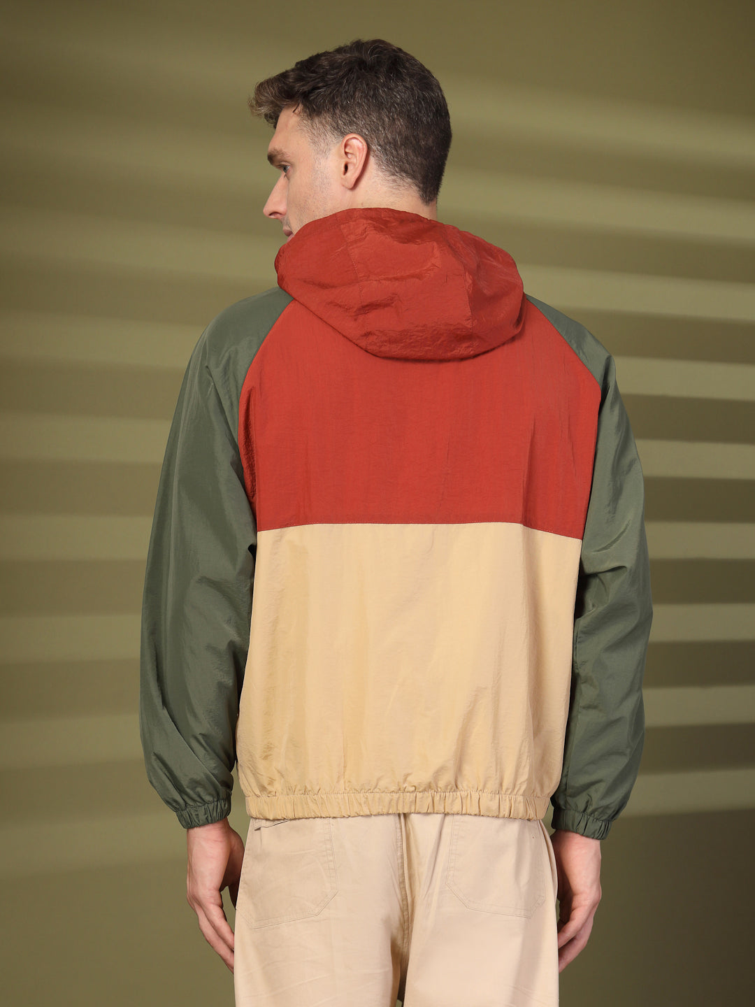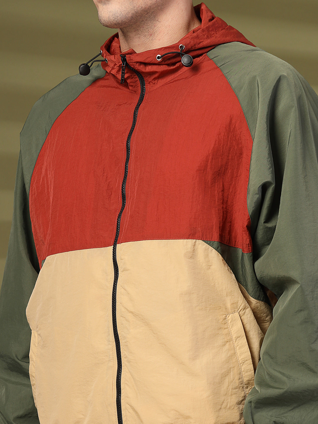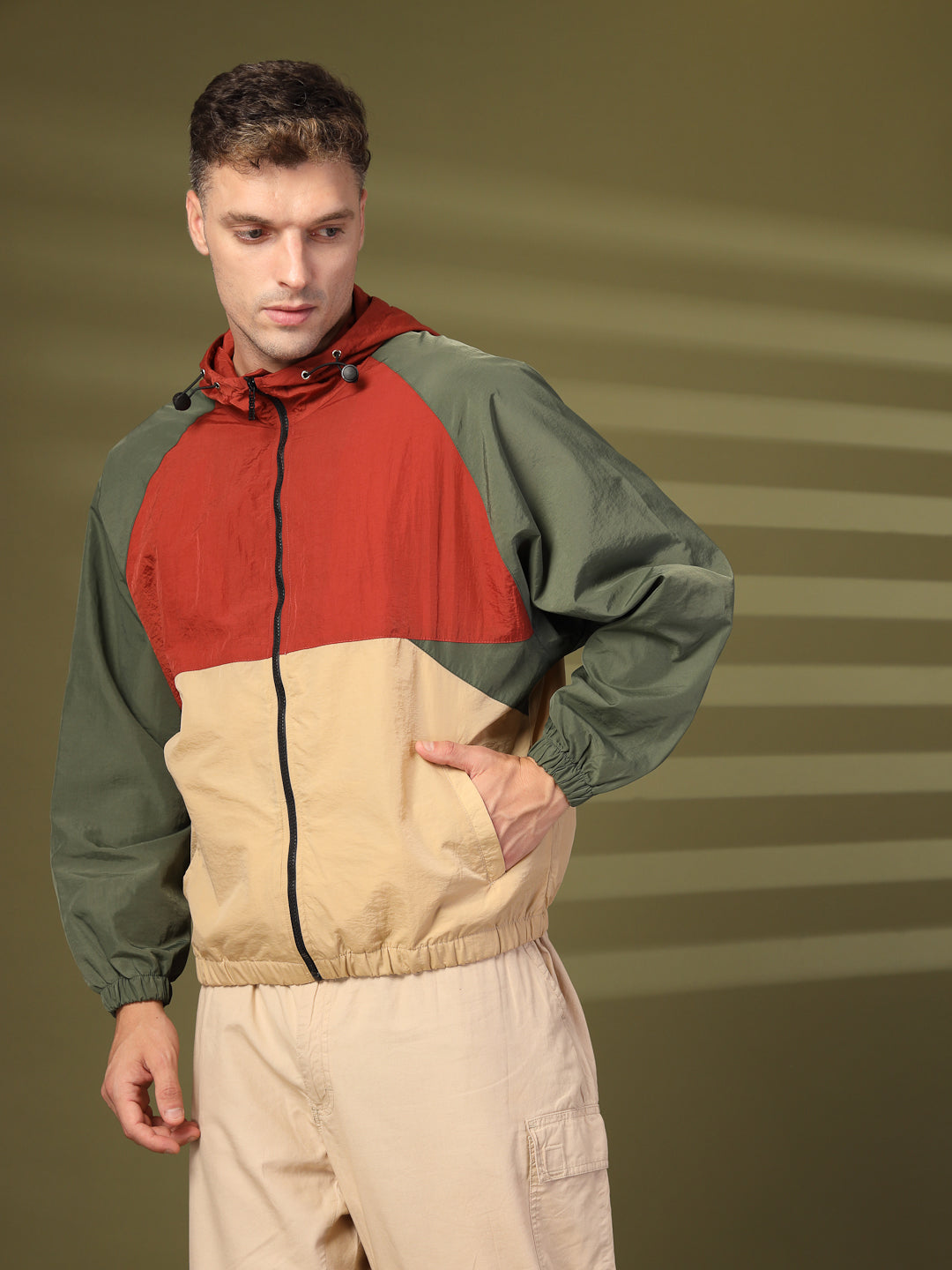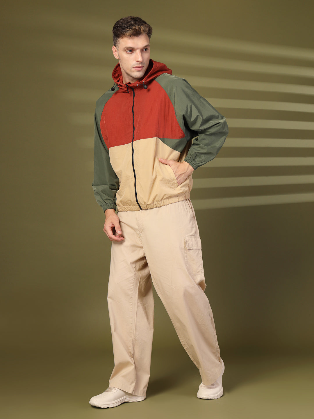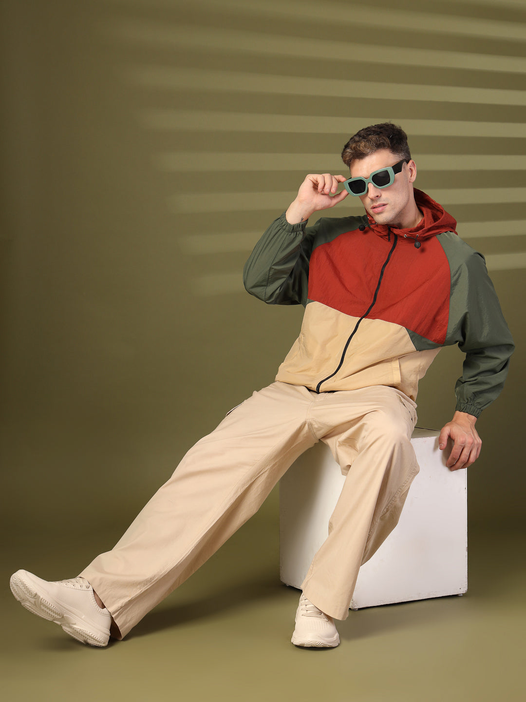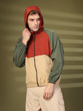 Men Rust Beige Olive Hooded Windcheater Oversized Sports Jacket