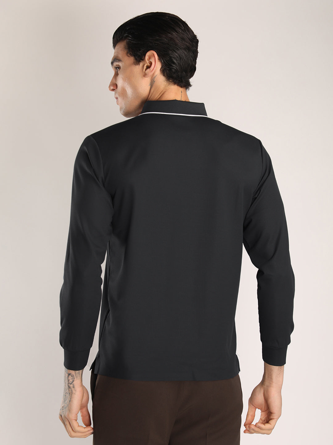 Men's Black Full Sleeve Polo Sports T-Shirt