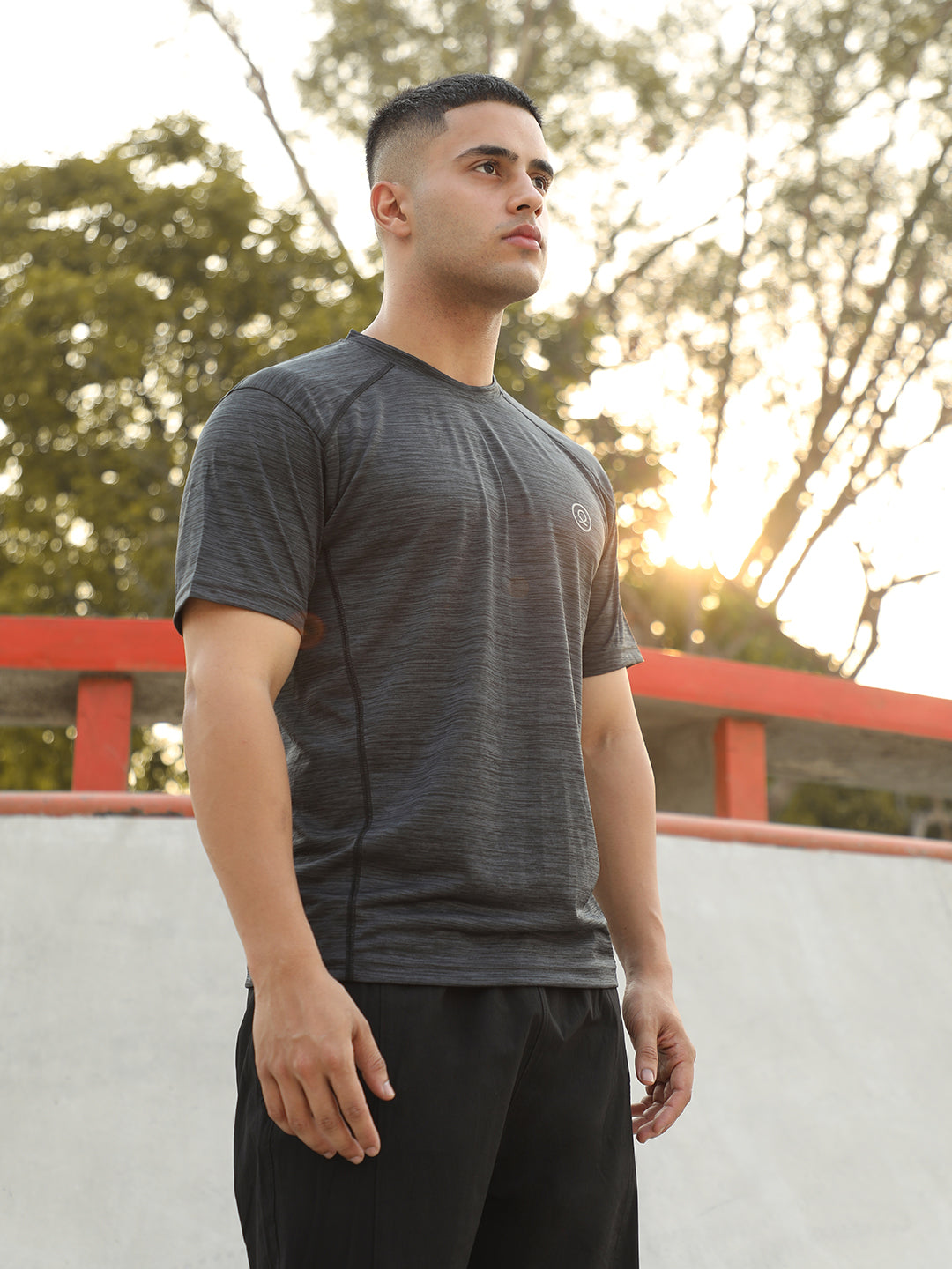 Men's Half Sleeves Gym Regular Fit T-Shirt Grey