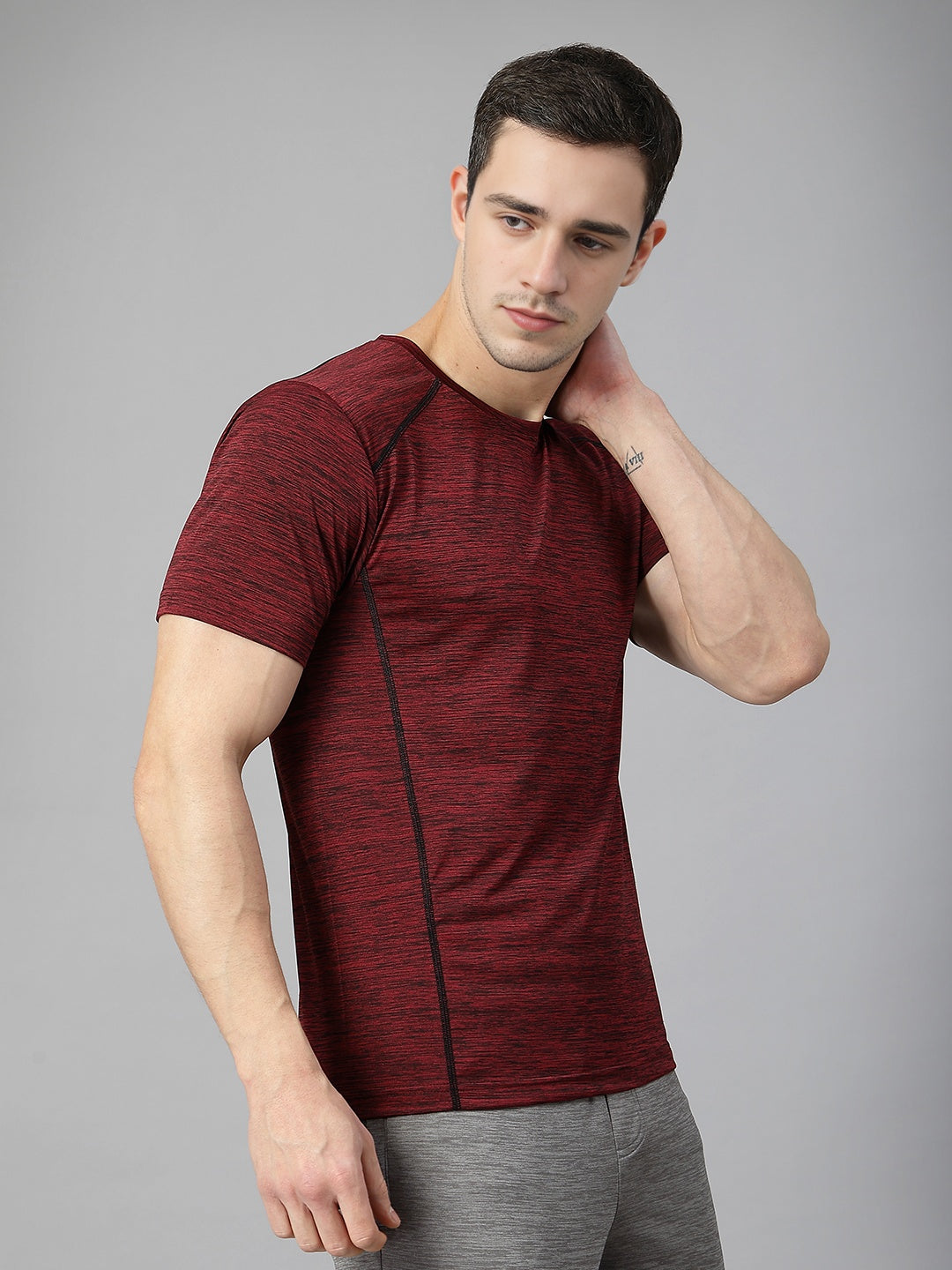 Men's Half Sleeves Dry Fit Gym Sports T-Shirt Wine