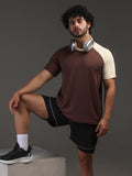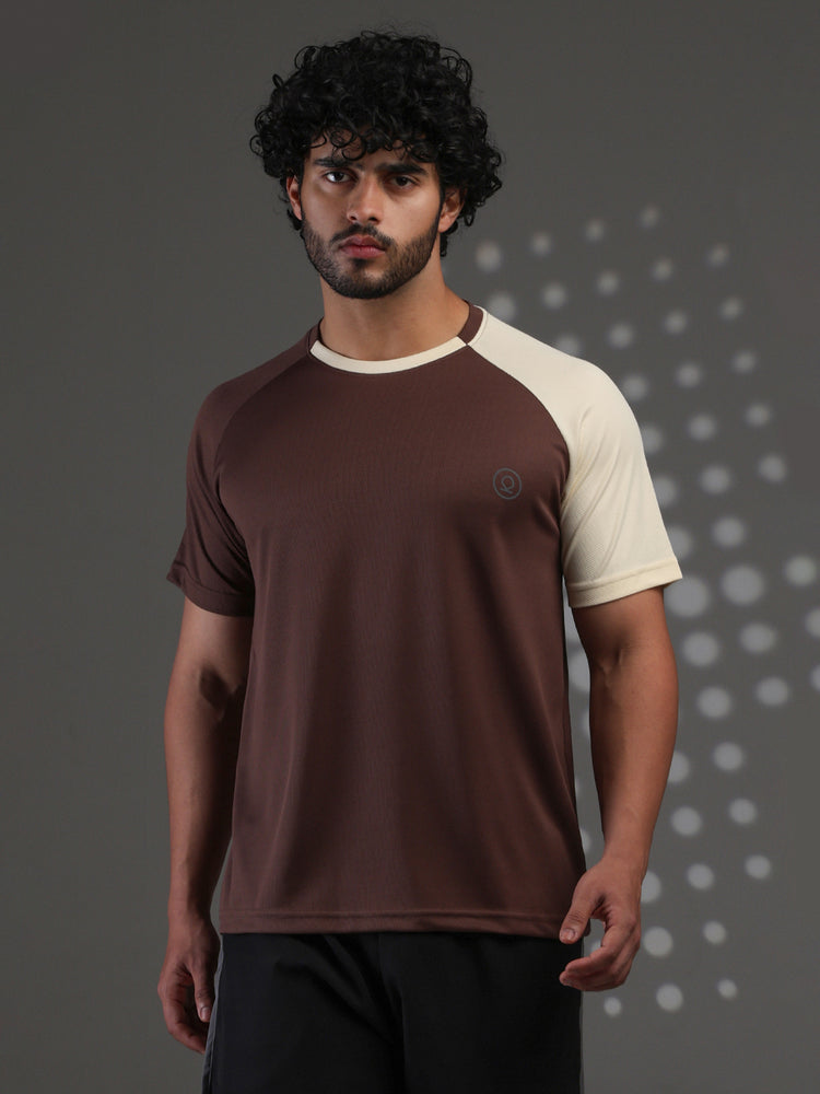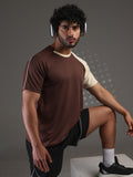 Men's Half Sleeves Sports Gym T-shirt Cream Coffee