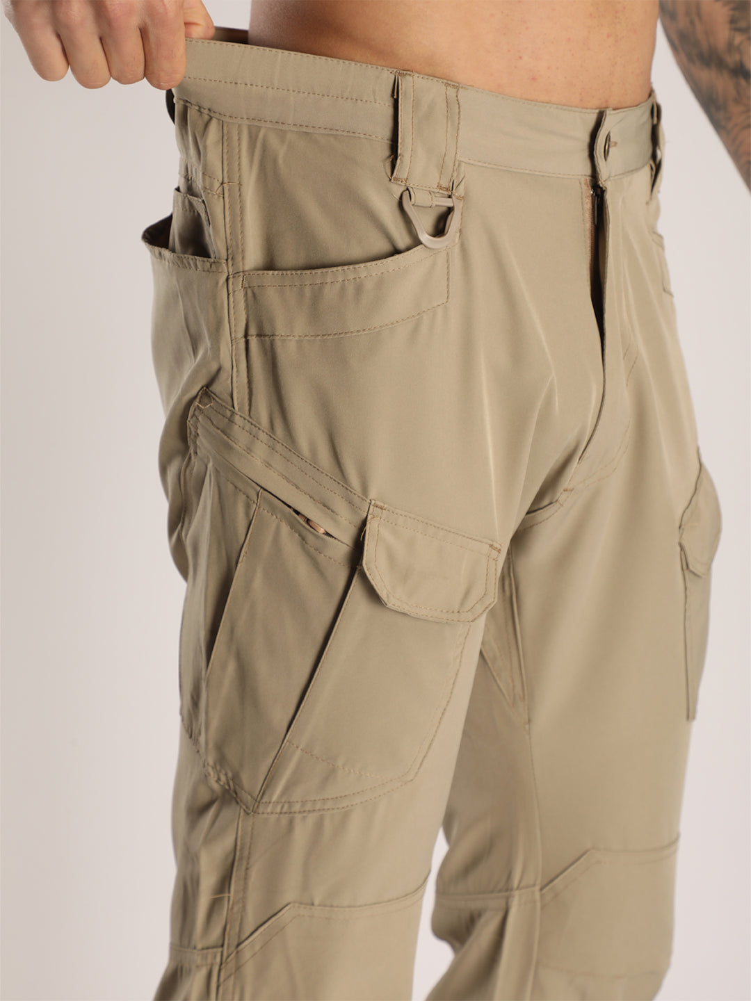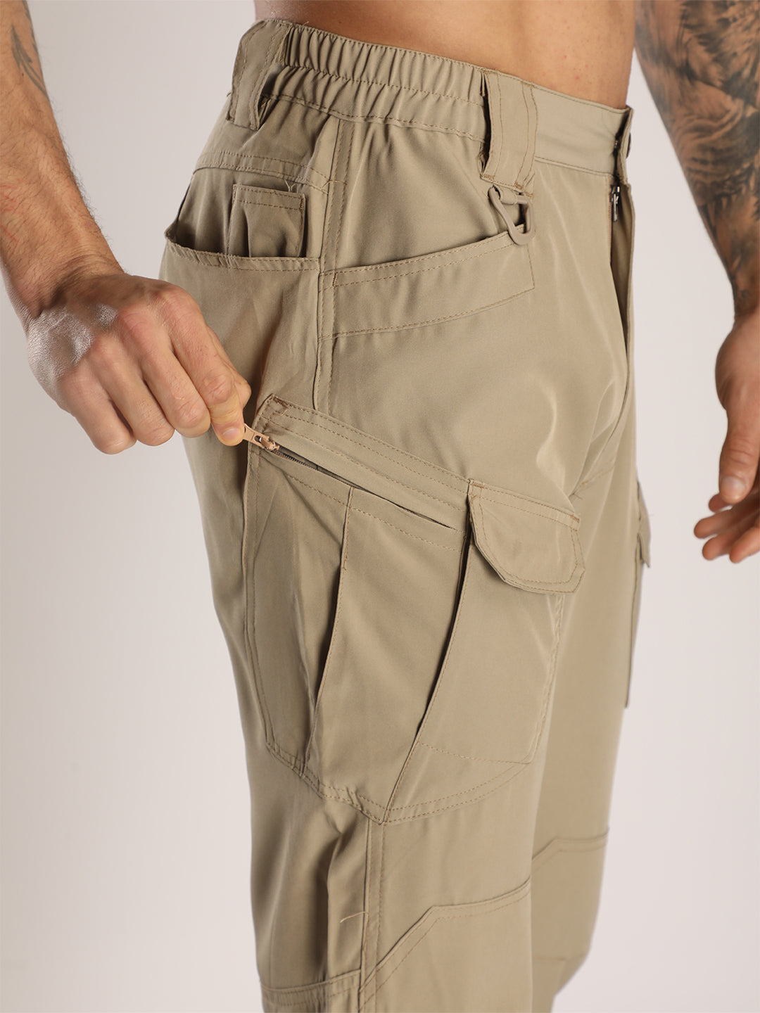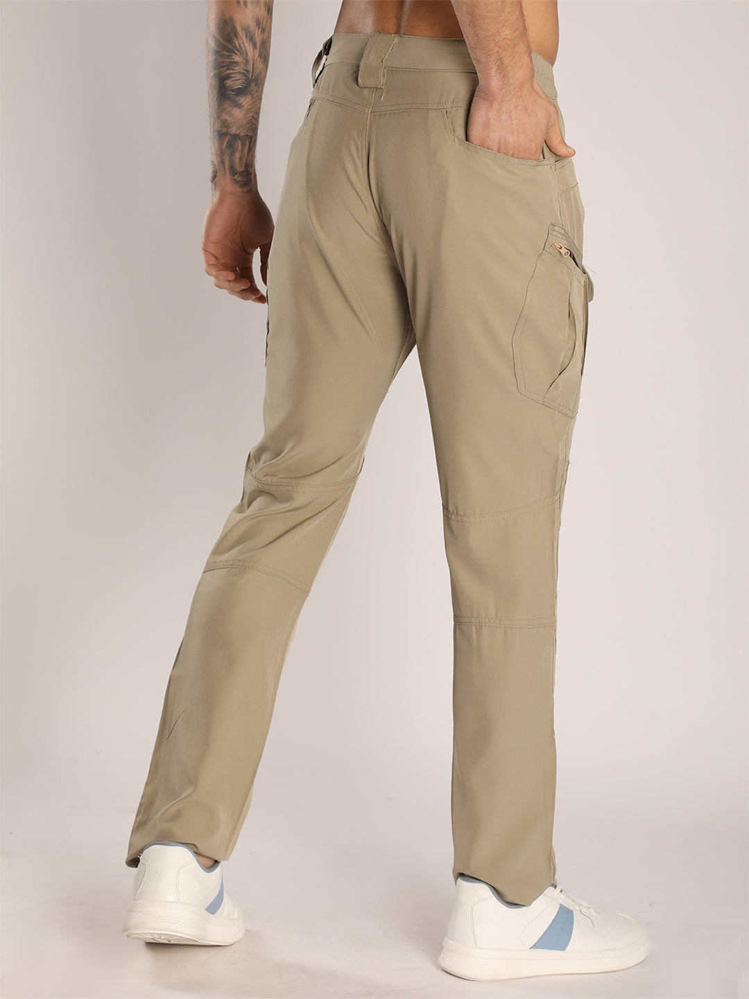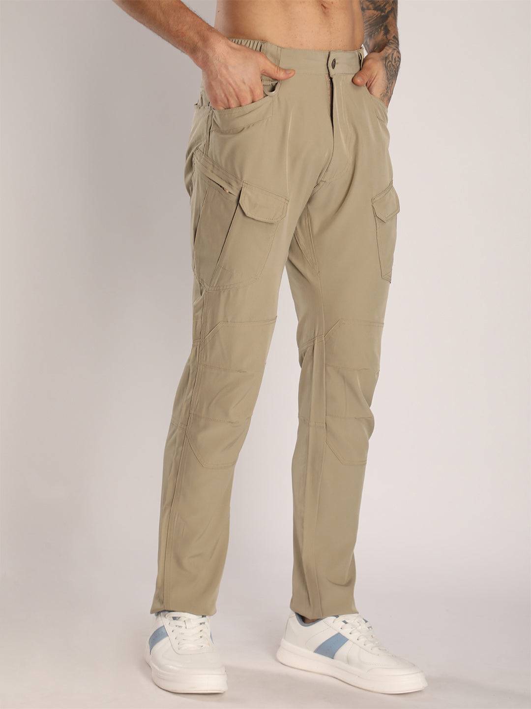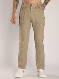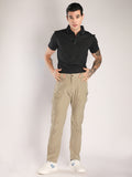 Men's Regular Fit Beige Sports Track Pants with Cargo Pockets