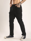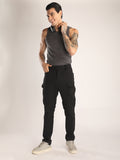 Men's Regular Fit Black Sports Track Pants with Cargo Pockets