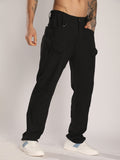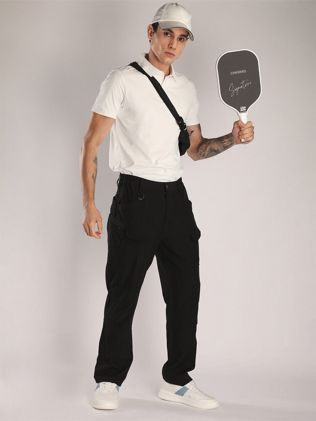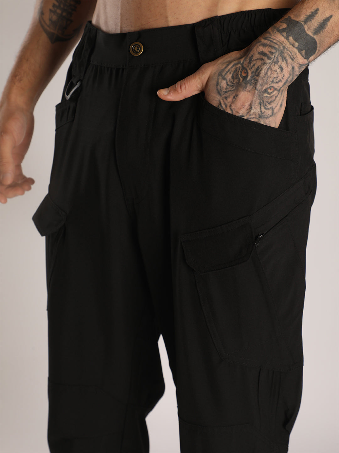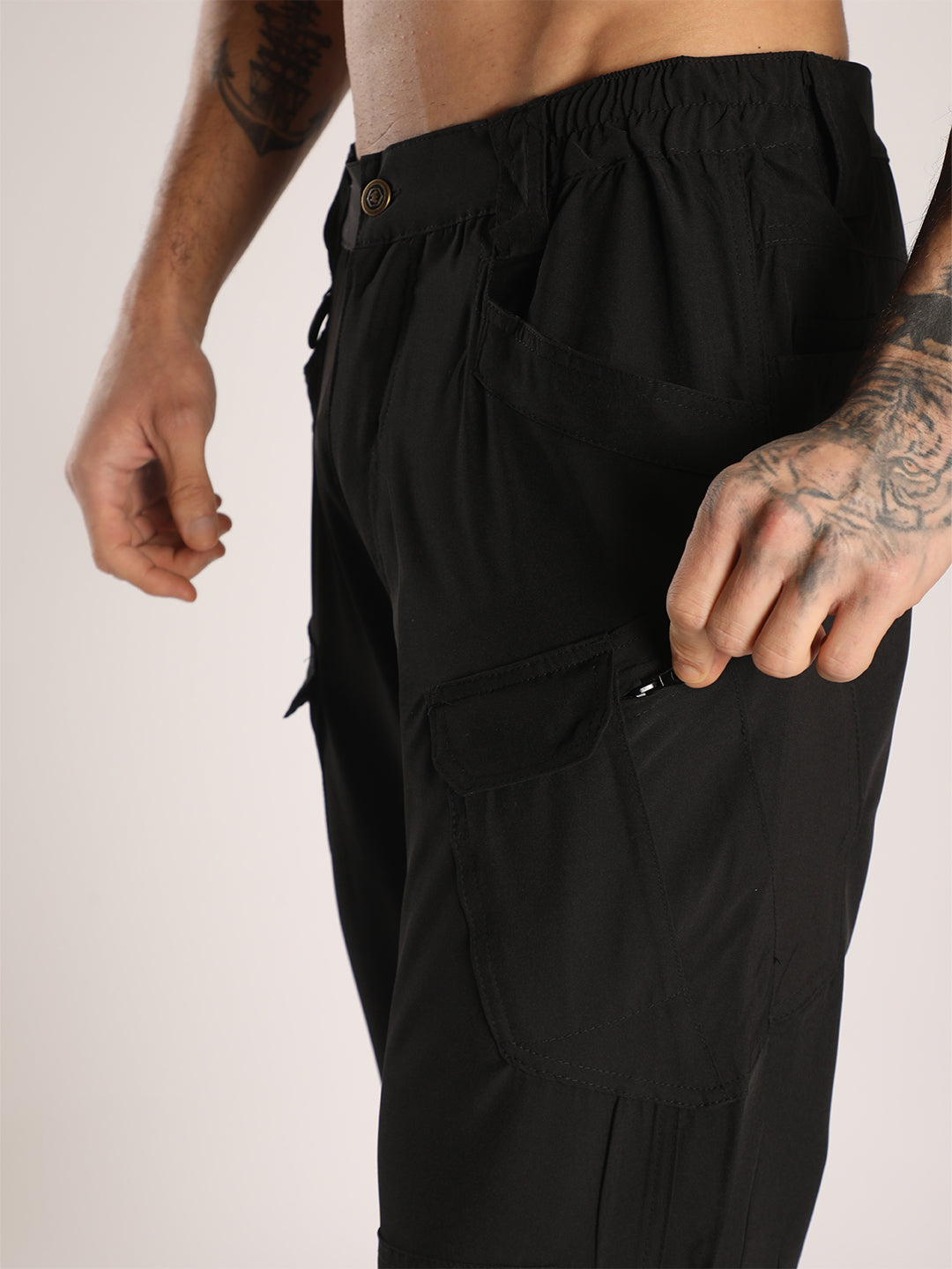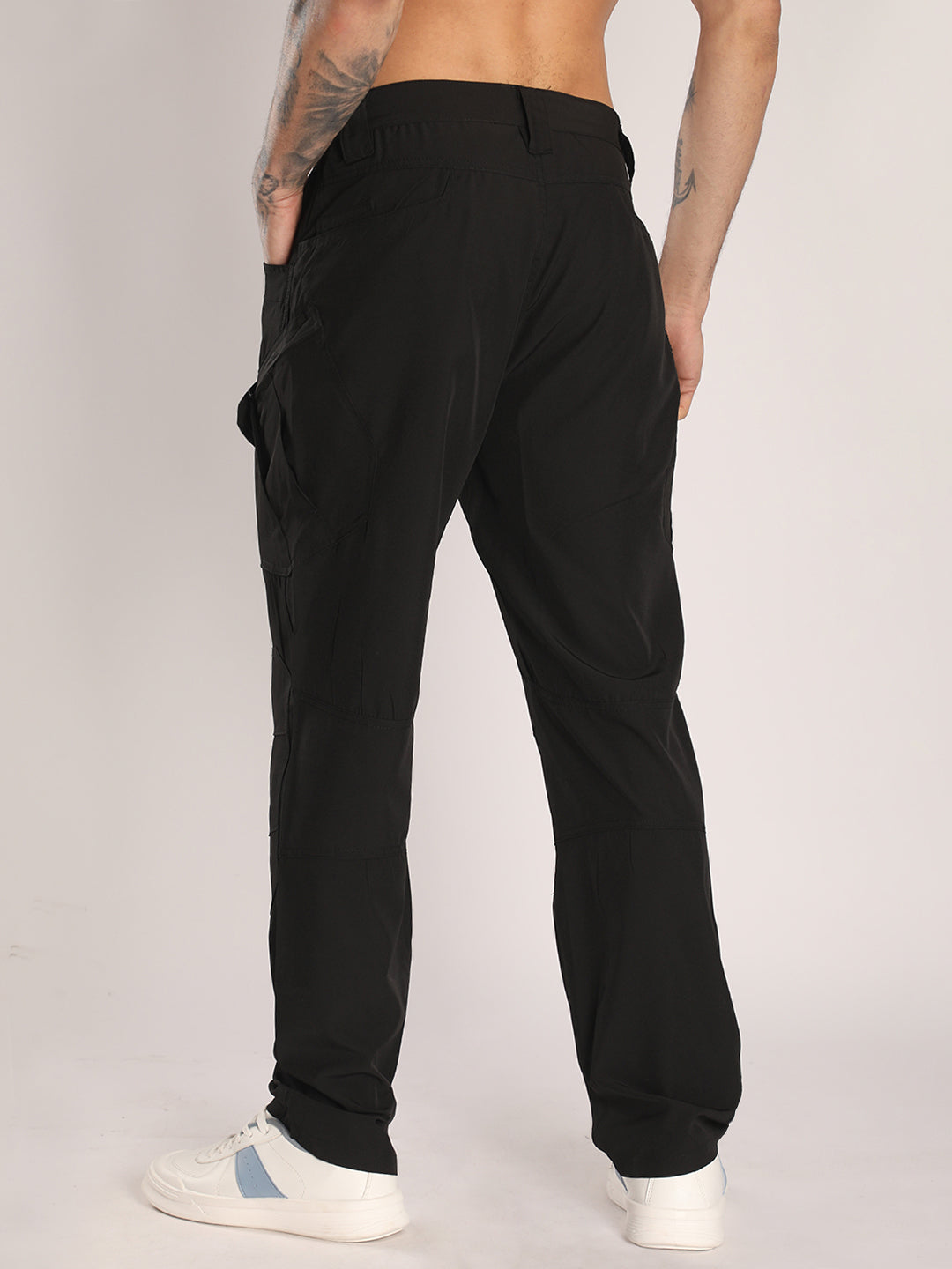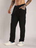 Men's Regular Fit Black Sports Track Pants with Cargo Pockets