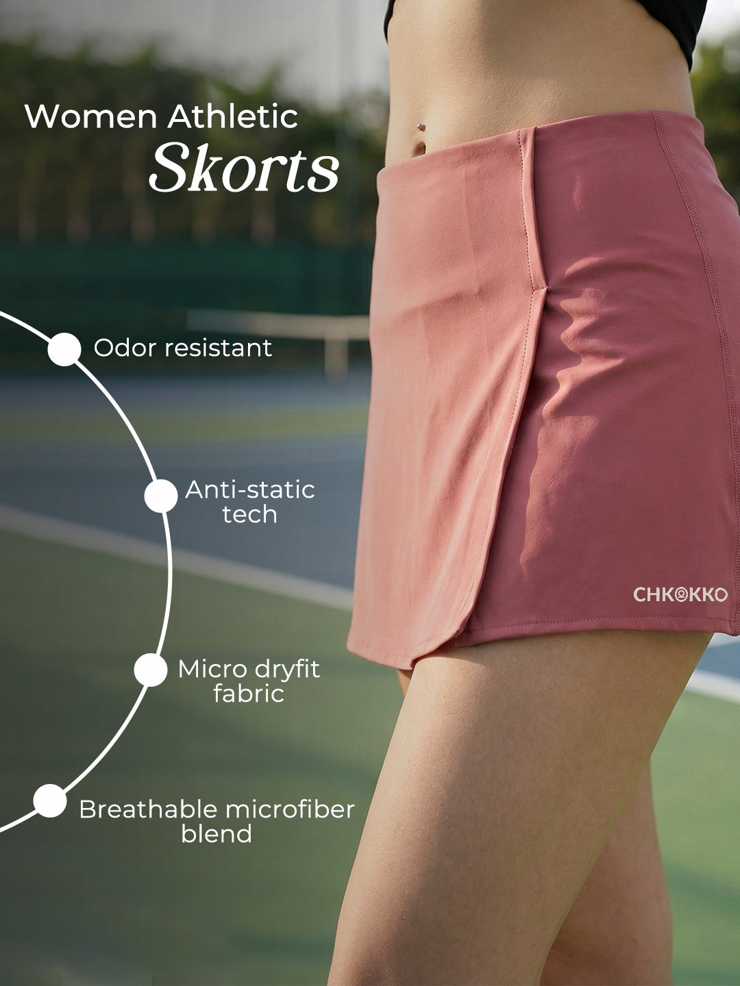 Part of the official Chkokko Pickleball Collection, Command attention on and off the court in these Court Elegance Skirt - a refined blend of sporty performance and timeless femininity. Designed for the modern pickleball athlete, this skort delivers style that speaks confidence and movement that feels effortless.