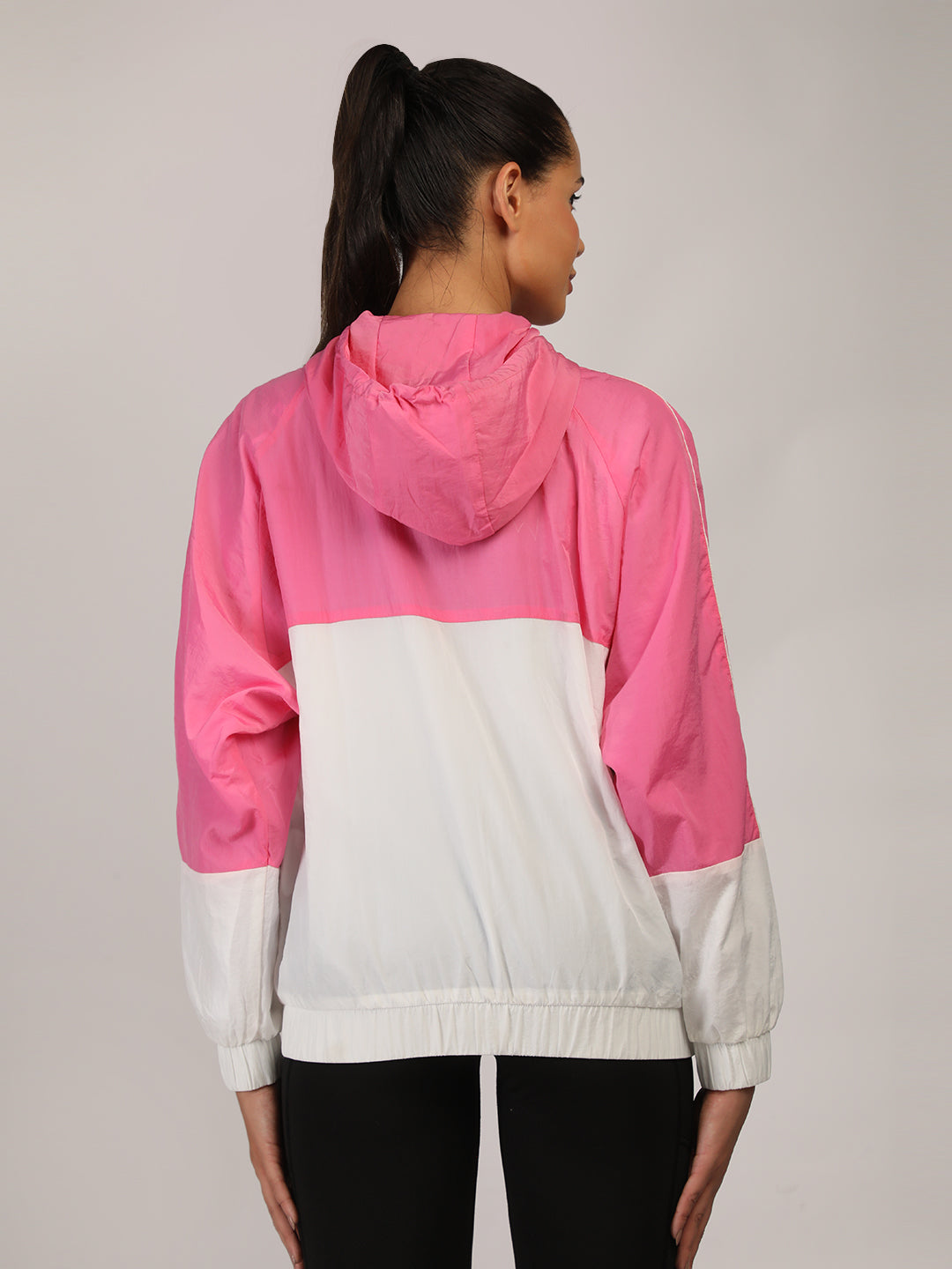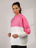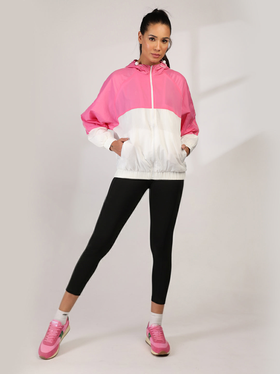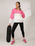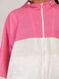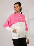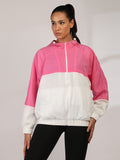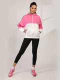 Women Colourblocked Hooded Windcheater Oversized Sports Jacket Candy Pink
