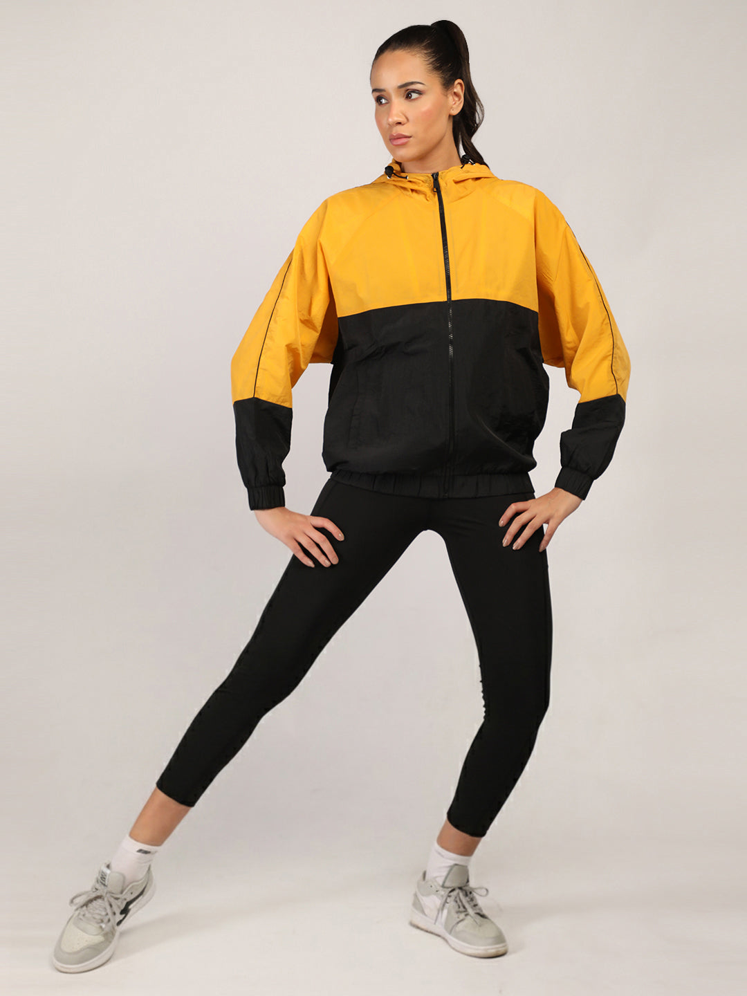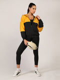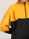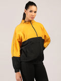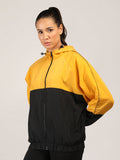 Women Colourblocked Hooded Windcheater Oversized Sports Jacket Yellow Black