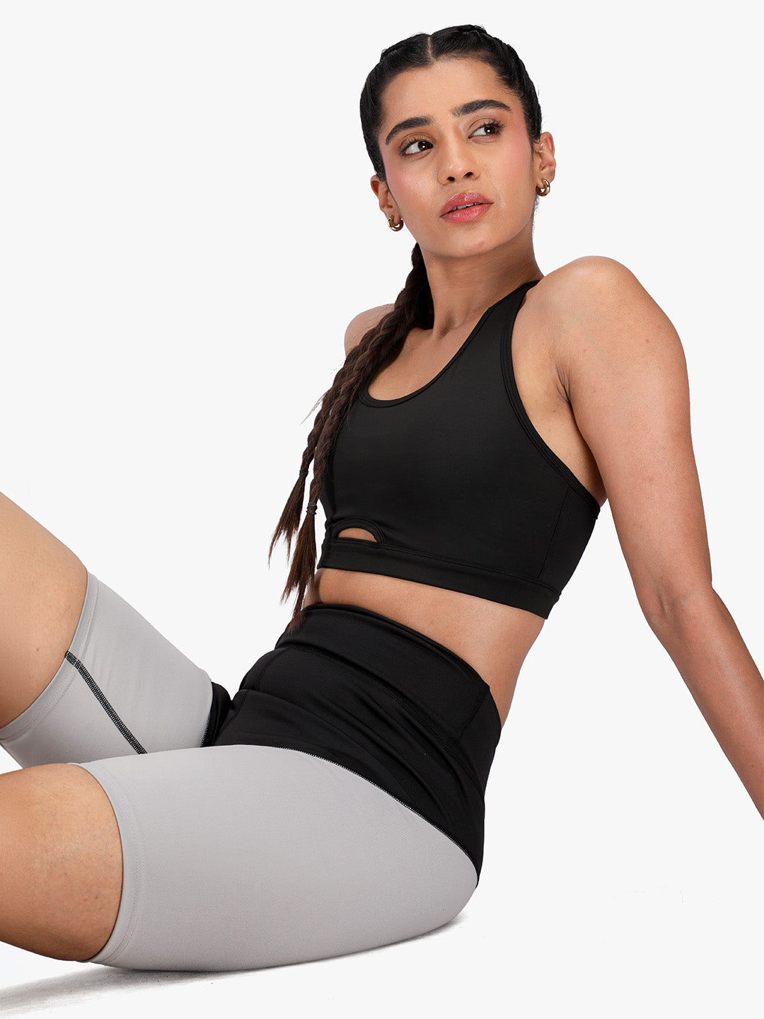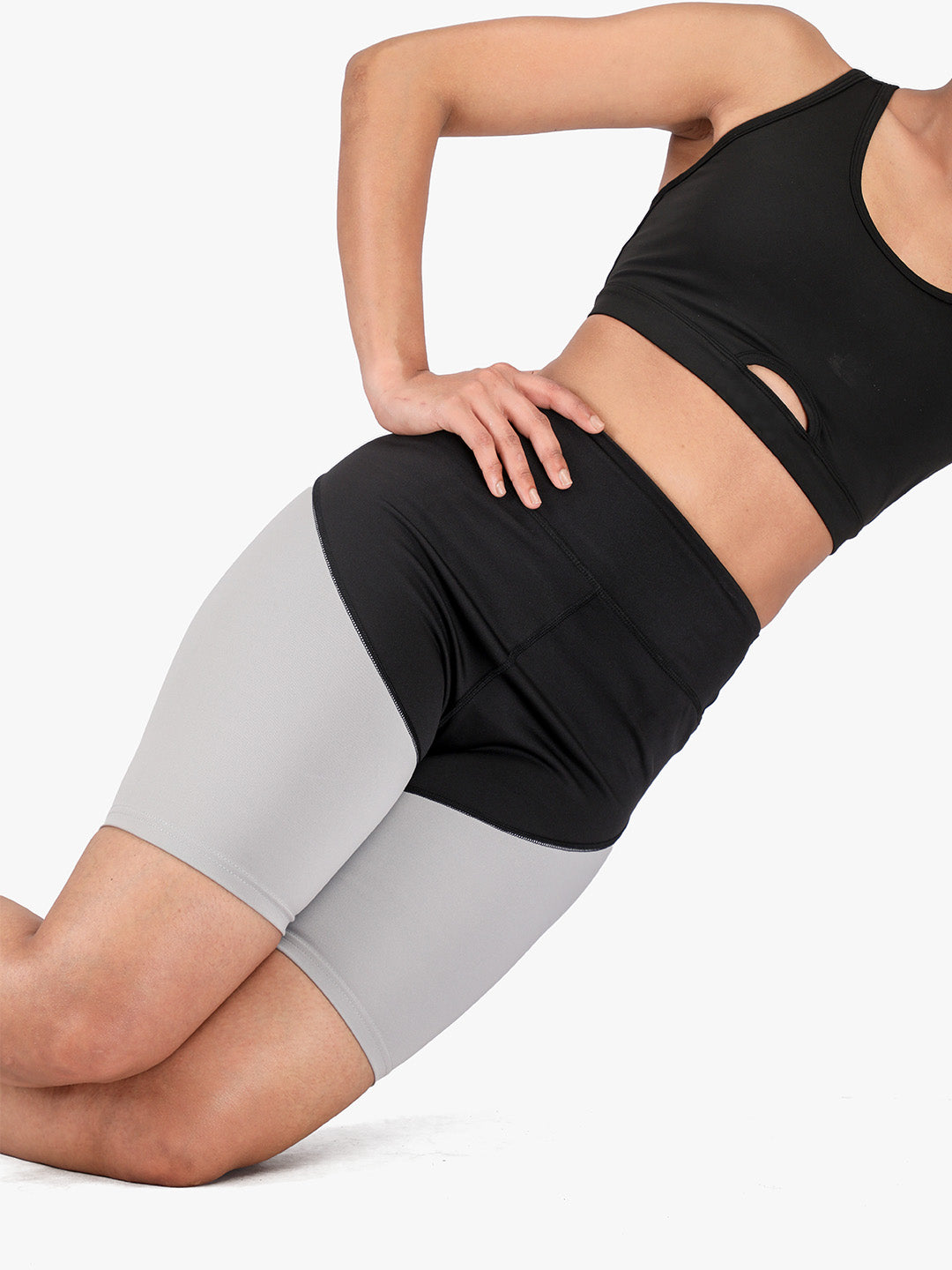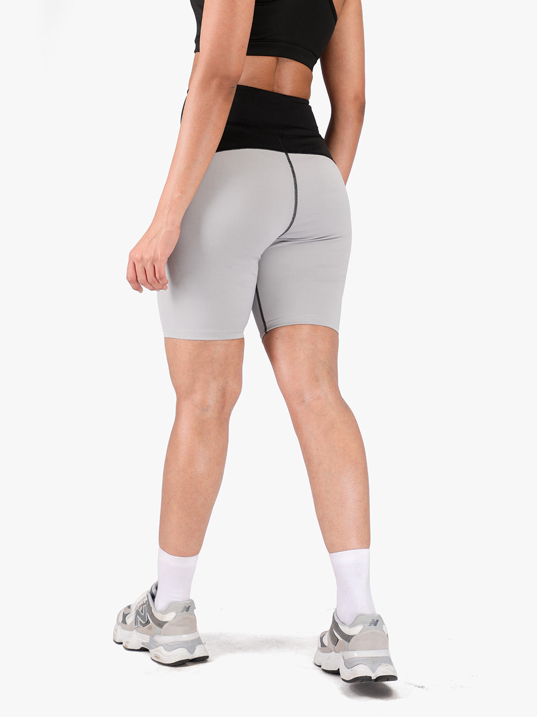 Women High-Waist Biker Shorts Grey Black