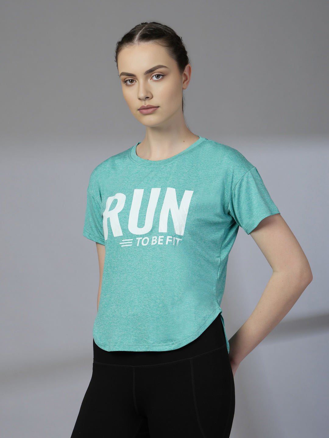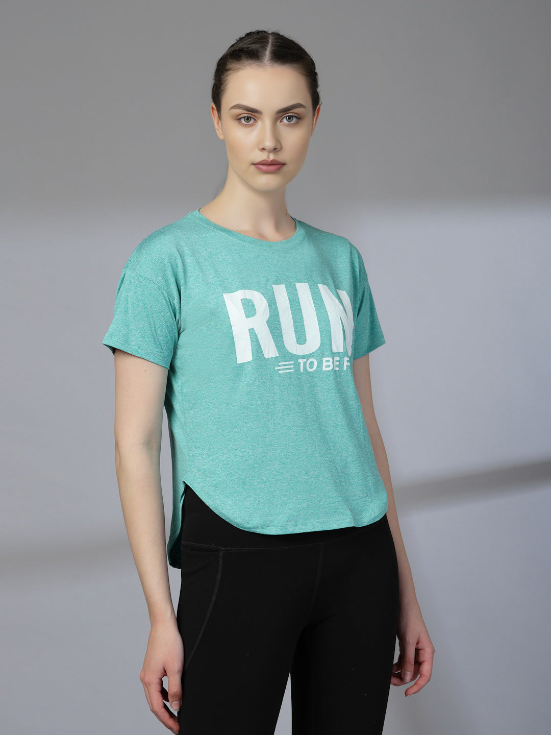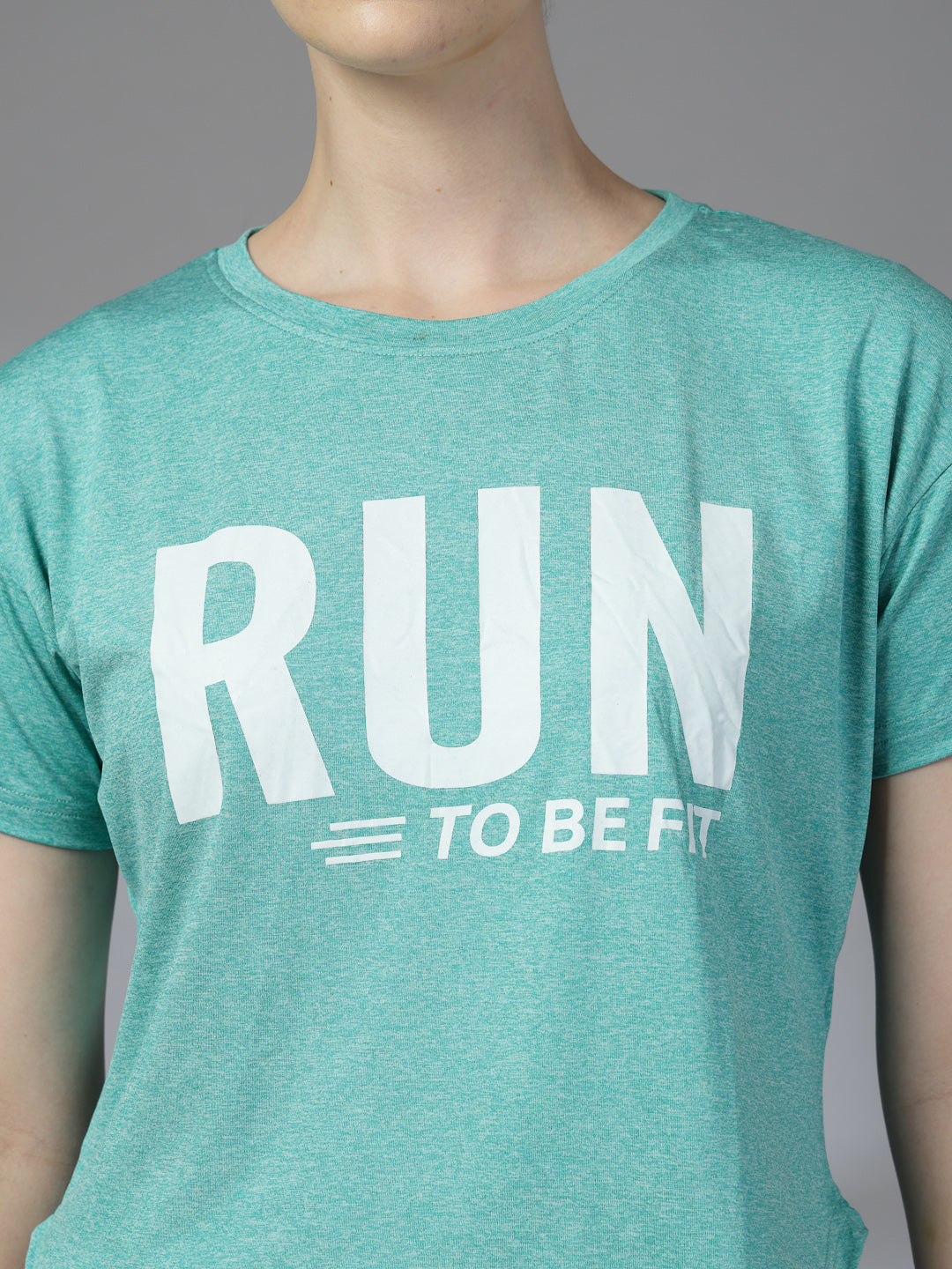 Women Round Neck Dry Fit Gym Sports T-Shirt Sea Green