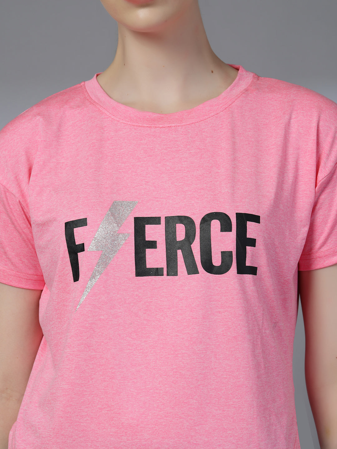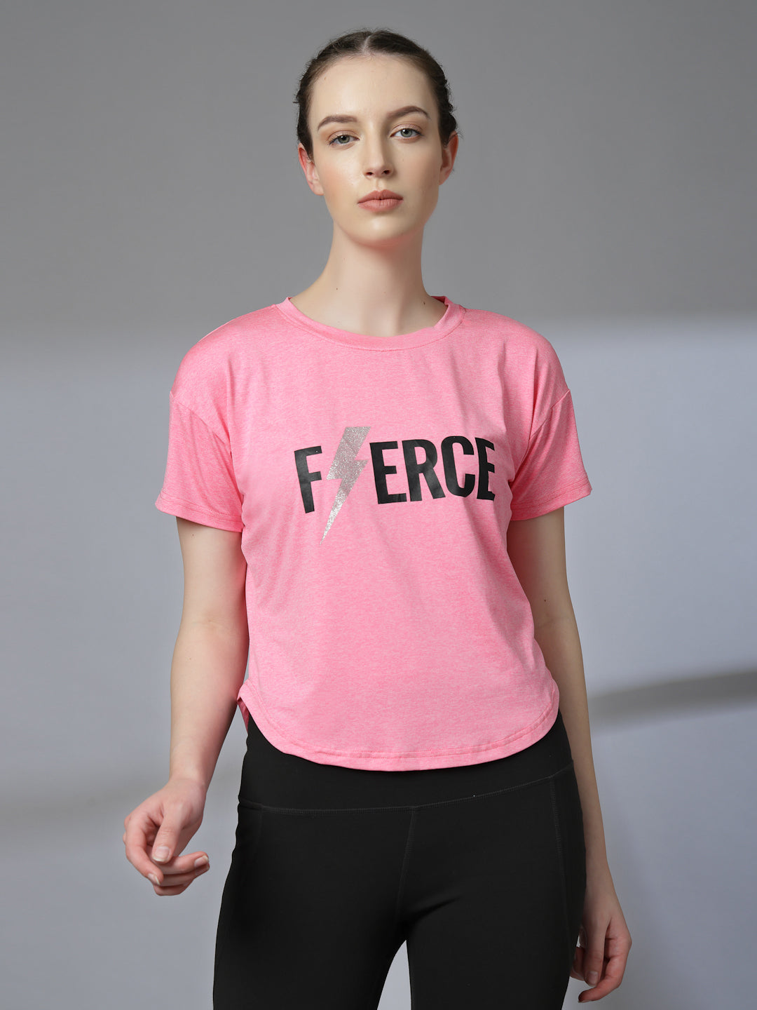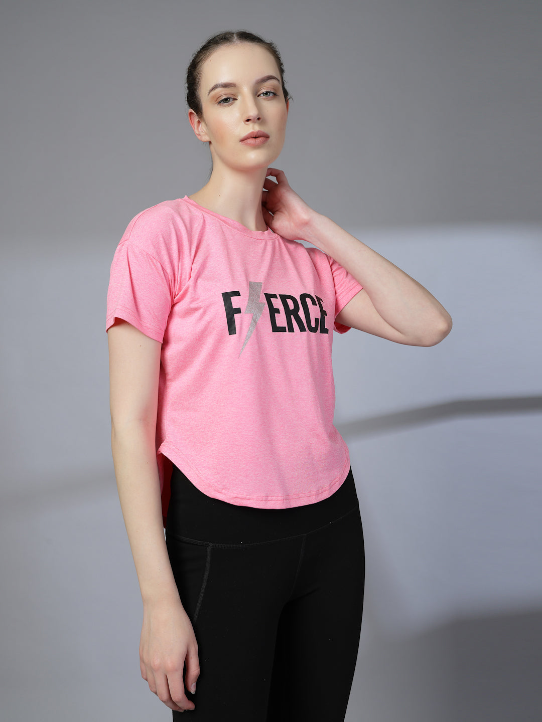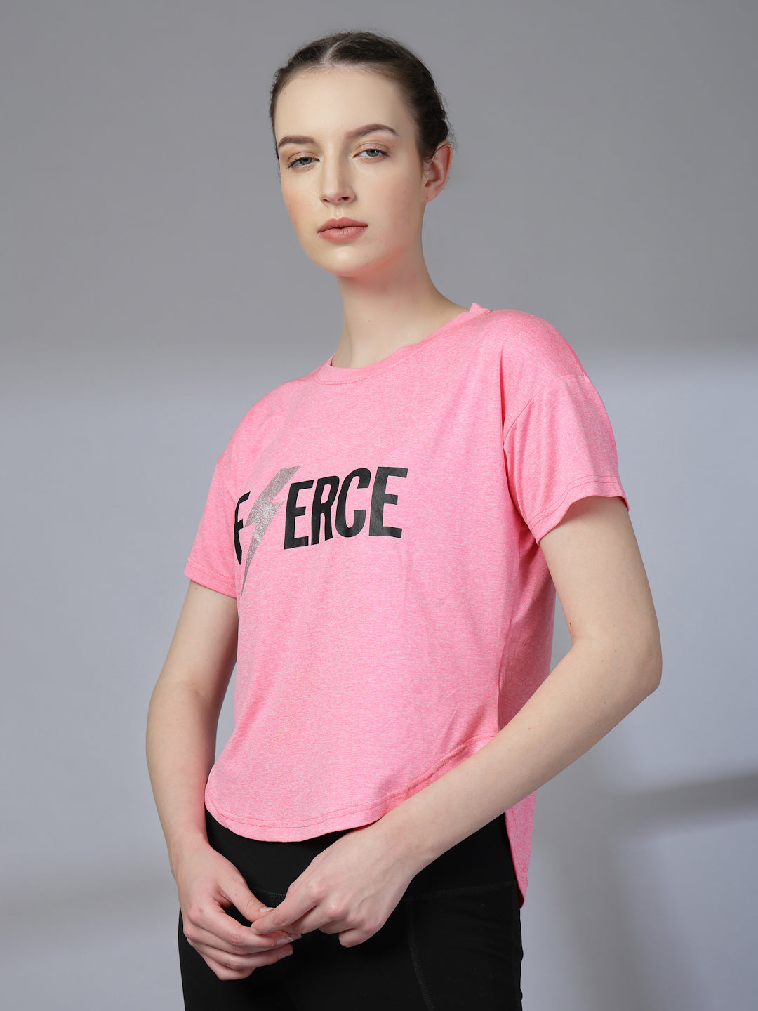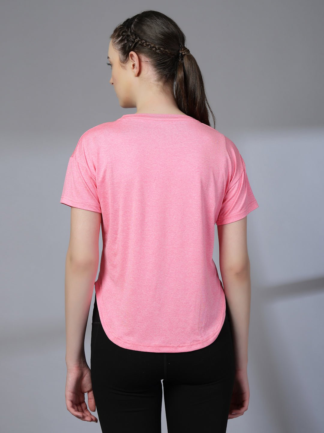 Women Round Neck Dry Fit Gym Sports T-Shirt Pink