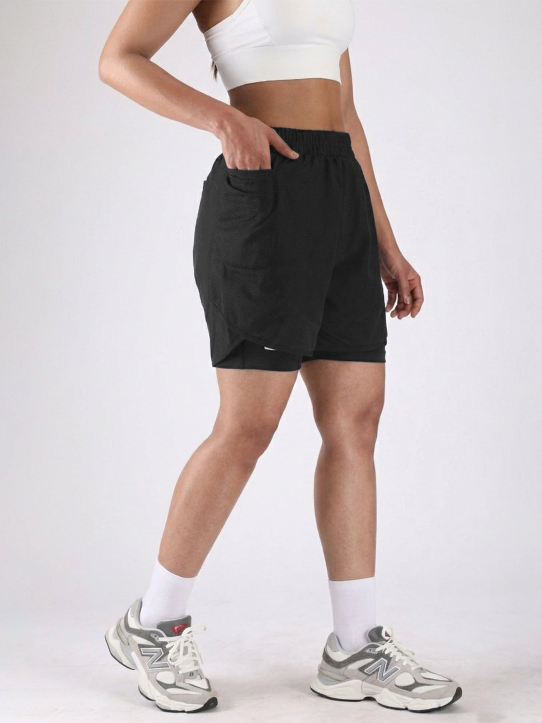 Upgrade your activewear collection with this stylish and functional Pack of 2 Women’s double layer running supports shorts, designed for maximum comfort and performance. Whether you're hitting the gym, going for a run, or relaxing at home, these shorts deliver the perfect blend of style and utility. Crafted from lightweight, breathable fabric, these shorts ensure excellent airflow and quick sweat absorption, keeping you cool and dry throughout the day. The elastic waistband provides a secure and flexible fit, while the side pockets offer convenience for carrying essentials.