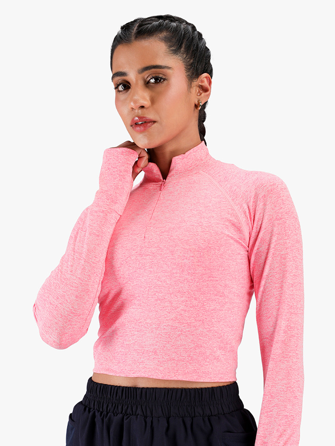 Upgrade your activewear wardrobe with the CHKOKKO Women’s Full Sleeve Crop Top, designed for style, comfort, and performance. Crafted from soft, stretchable fabric, this slim-fit crop top hugs your body perfectly while allowing full freedom of movement. The full sleeves and high neck design provide a sleek, sporty look, making it ideal for workouts as well as everyday athleisure styling. Whether you're hitting the gym, heading to yoga class, going for a run, or simply stepping out casually, this versatile crop top keeps you comfortable and confident all day long.