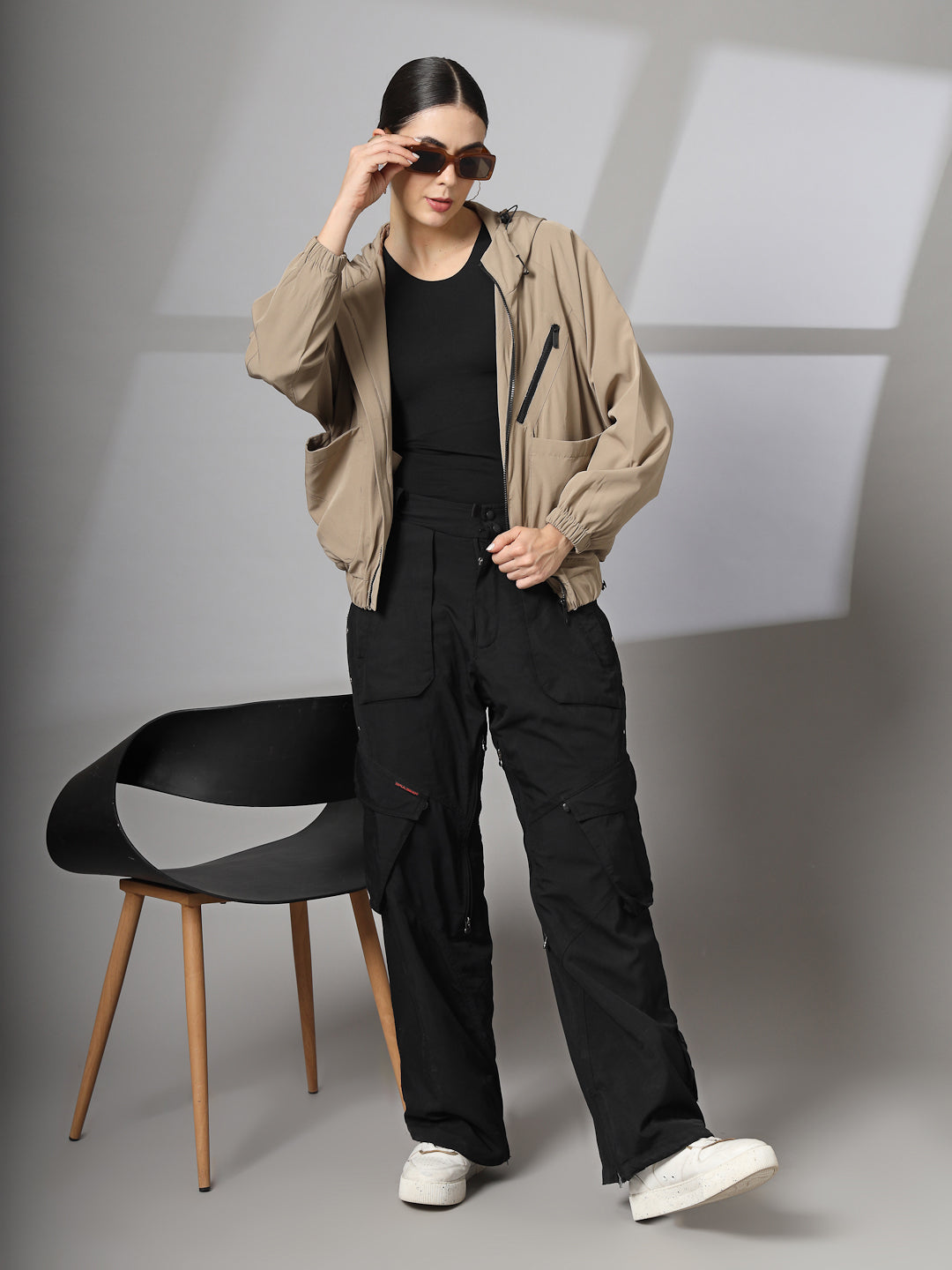 Women Winter Sports Oversized Windcheater Hooded Jacket