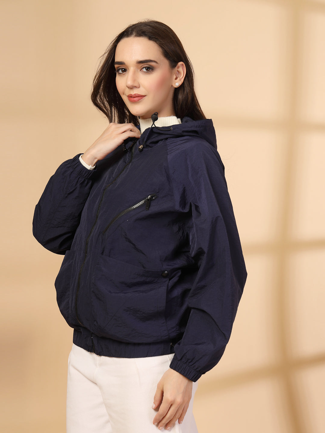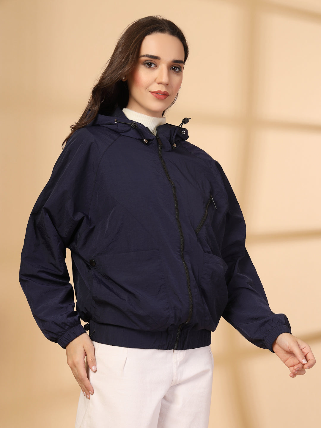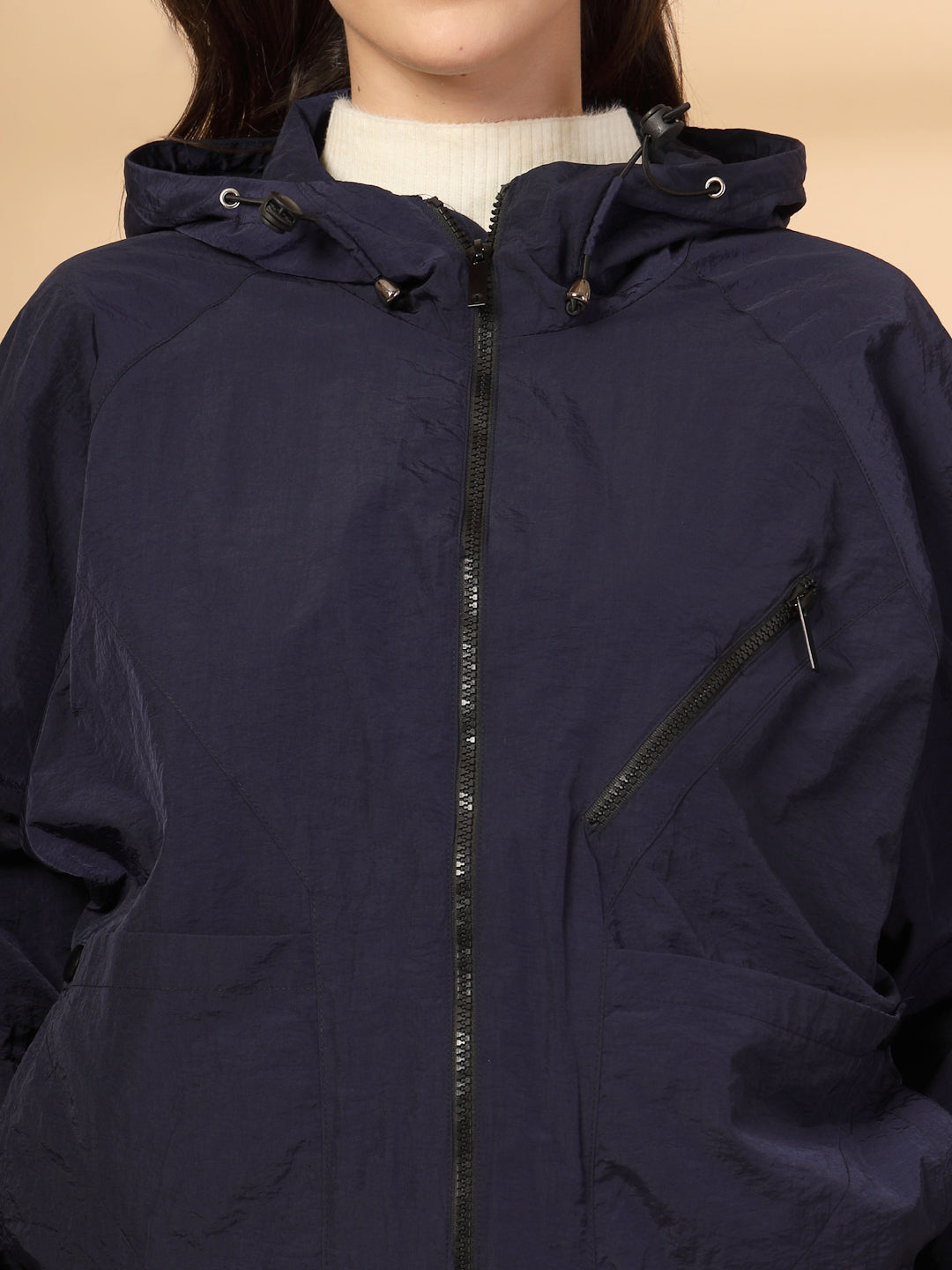 Women Winter Sports Oversized Windcheater Hooded Jacket
