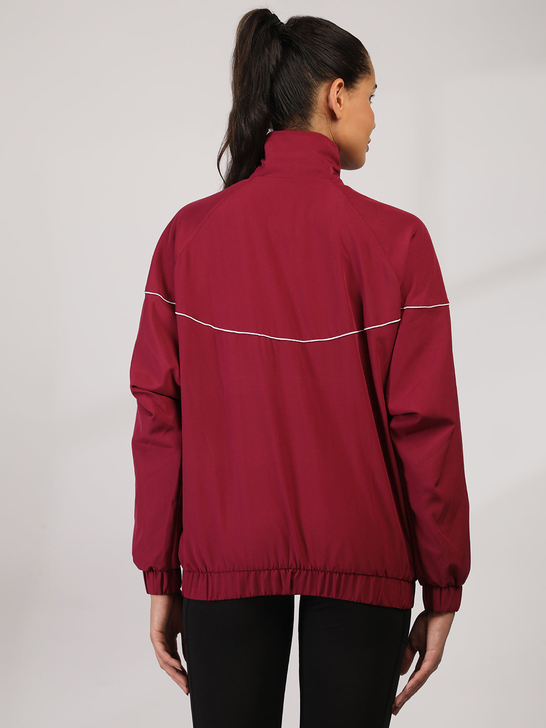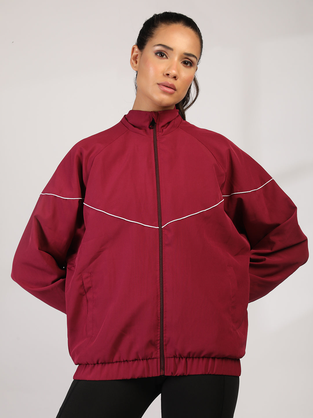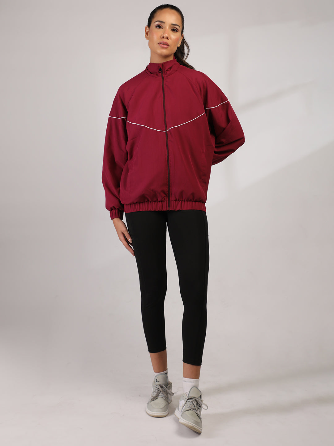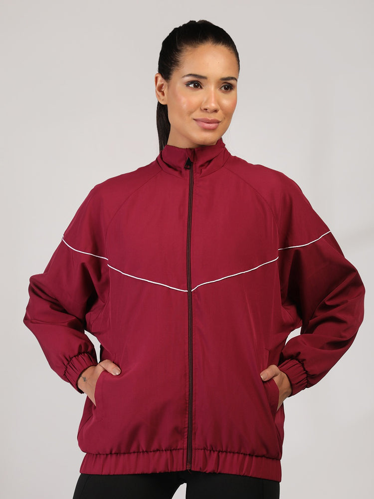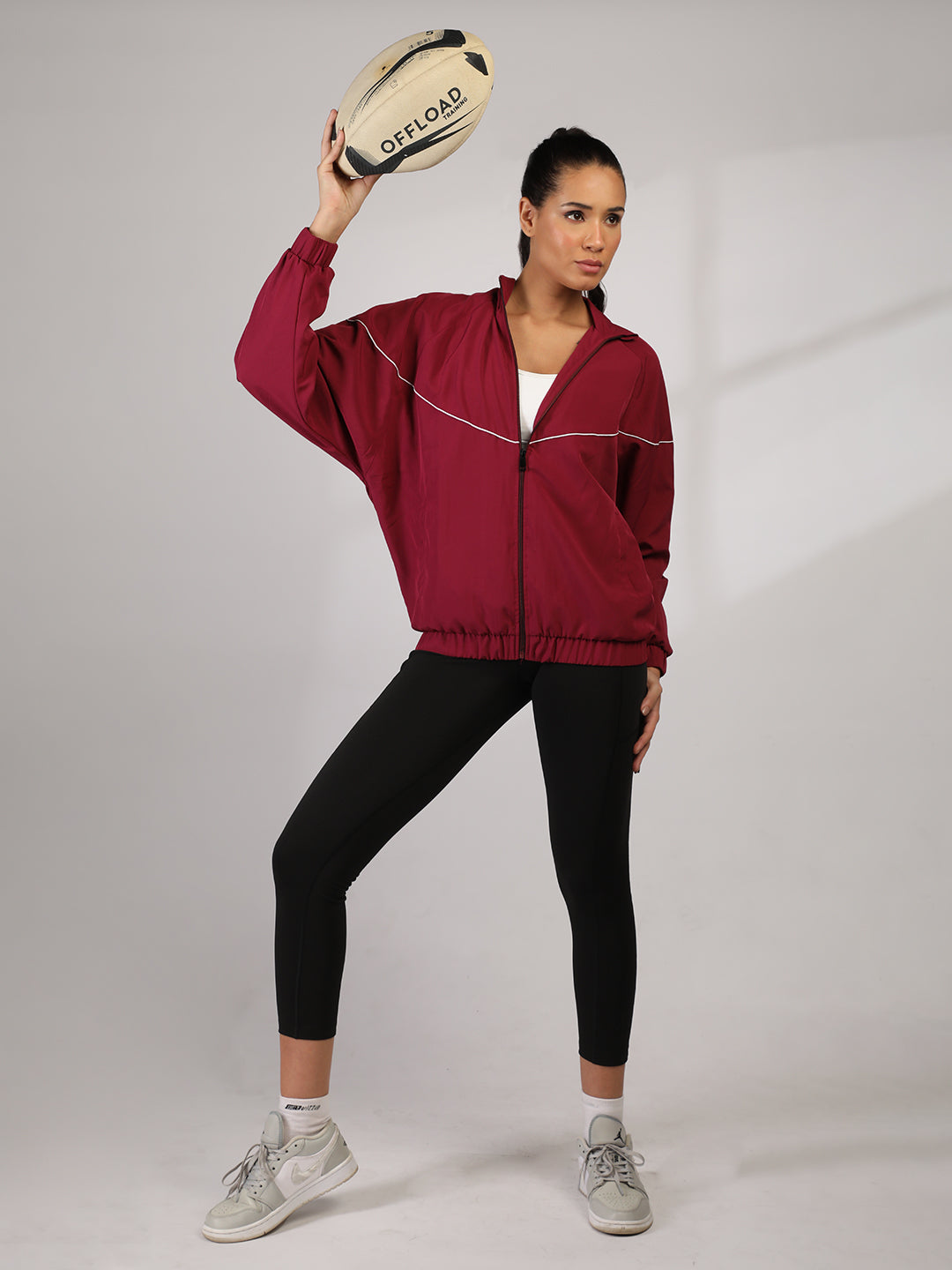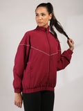 Women Winter Sports Oversized Windcheater Hooded Jacket Maroon