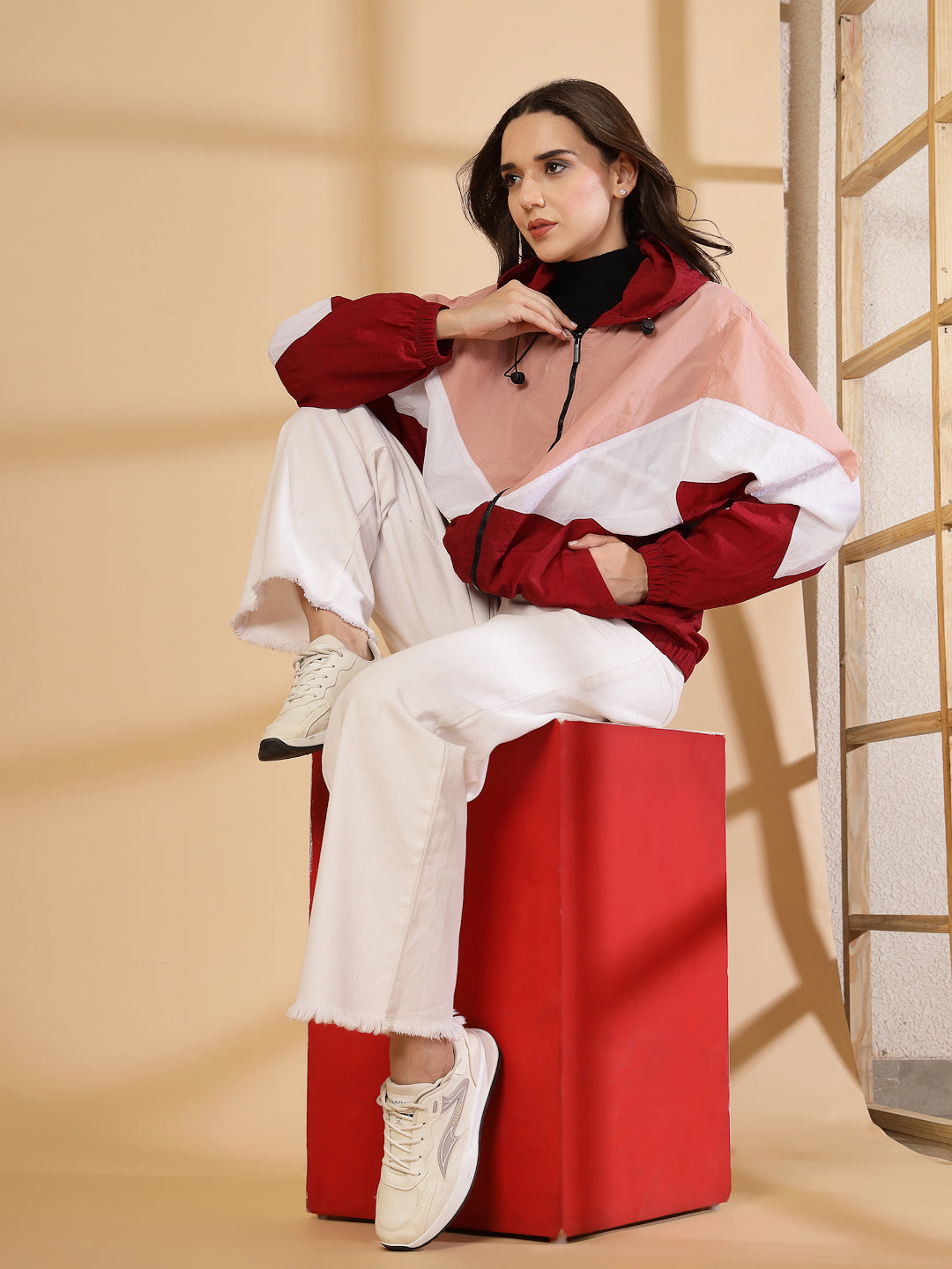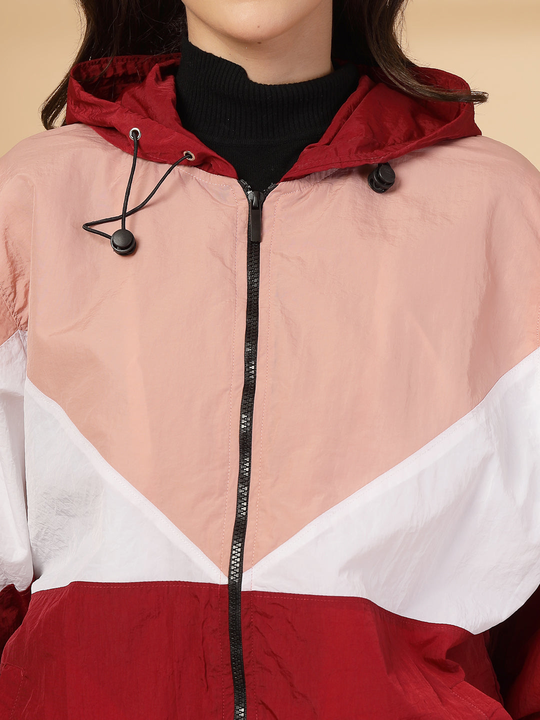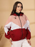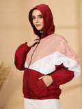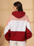 Women Colourblocked Hooded Windcheater Oversized Sports Jacket