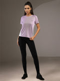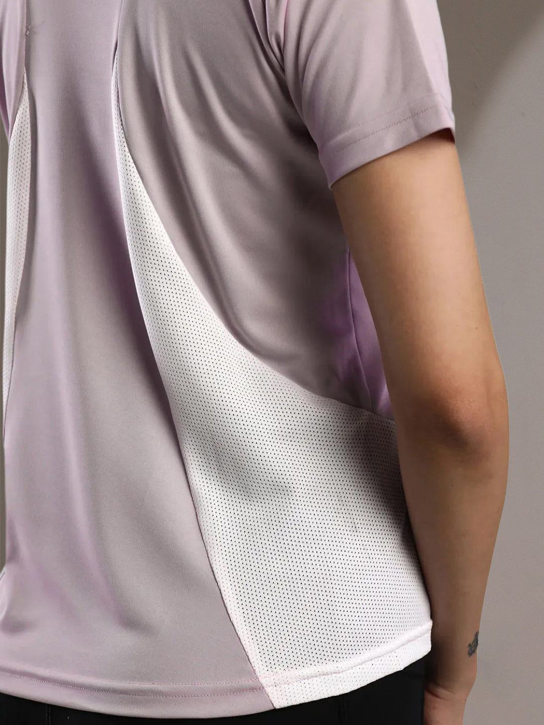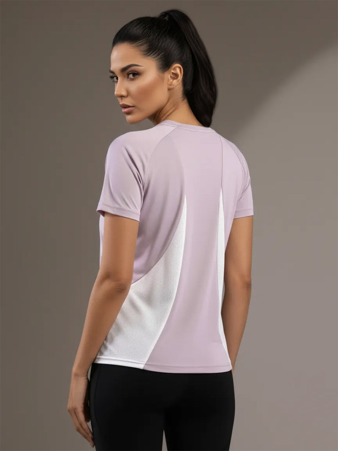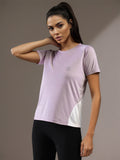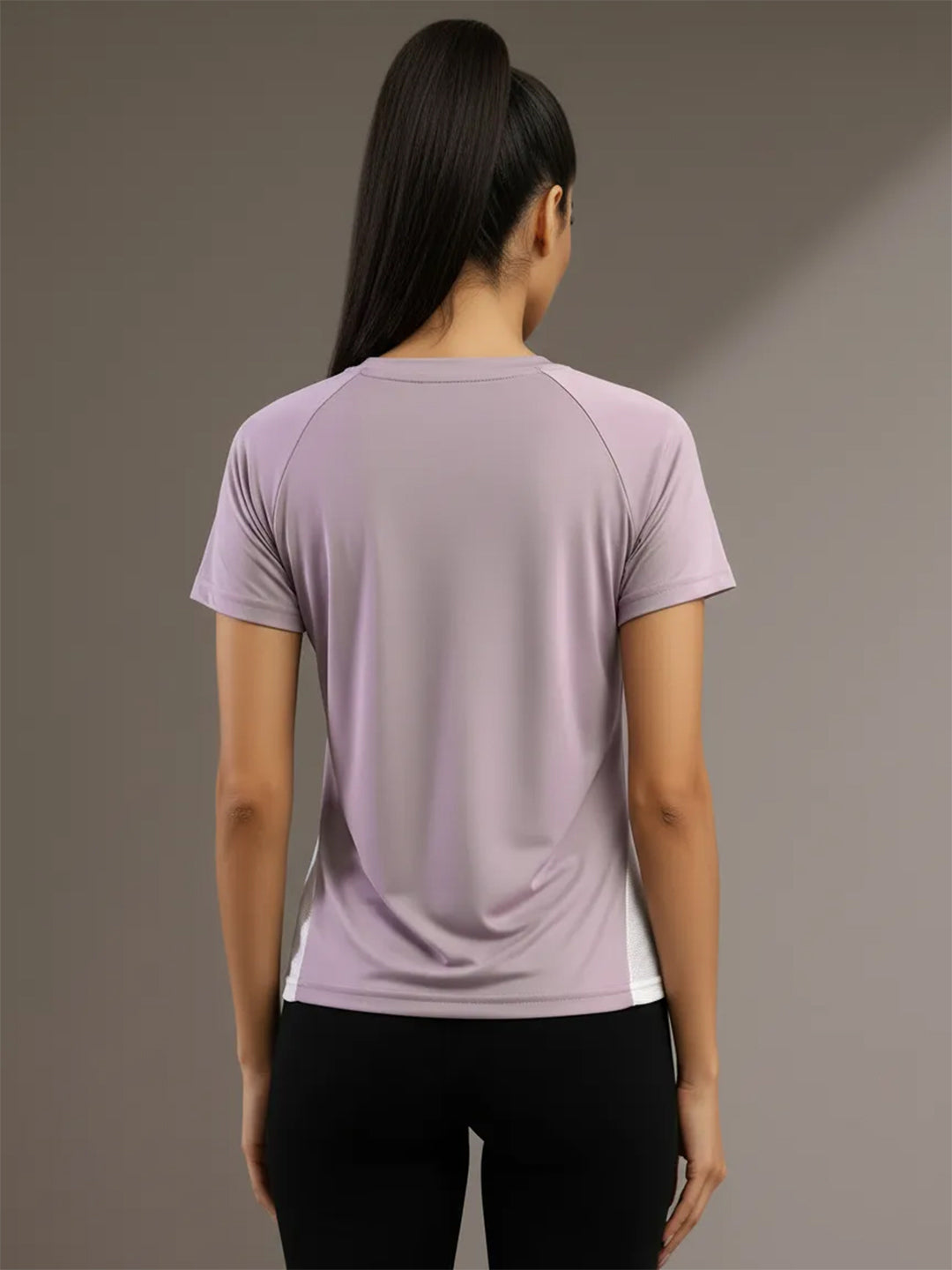 Women's Half Sleeves Dry Fit Gym T-shirt Lavender White